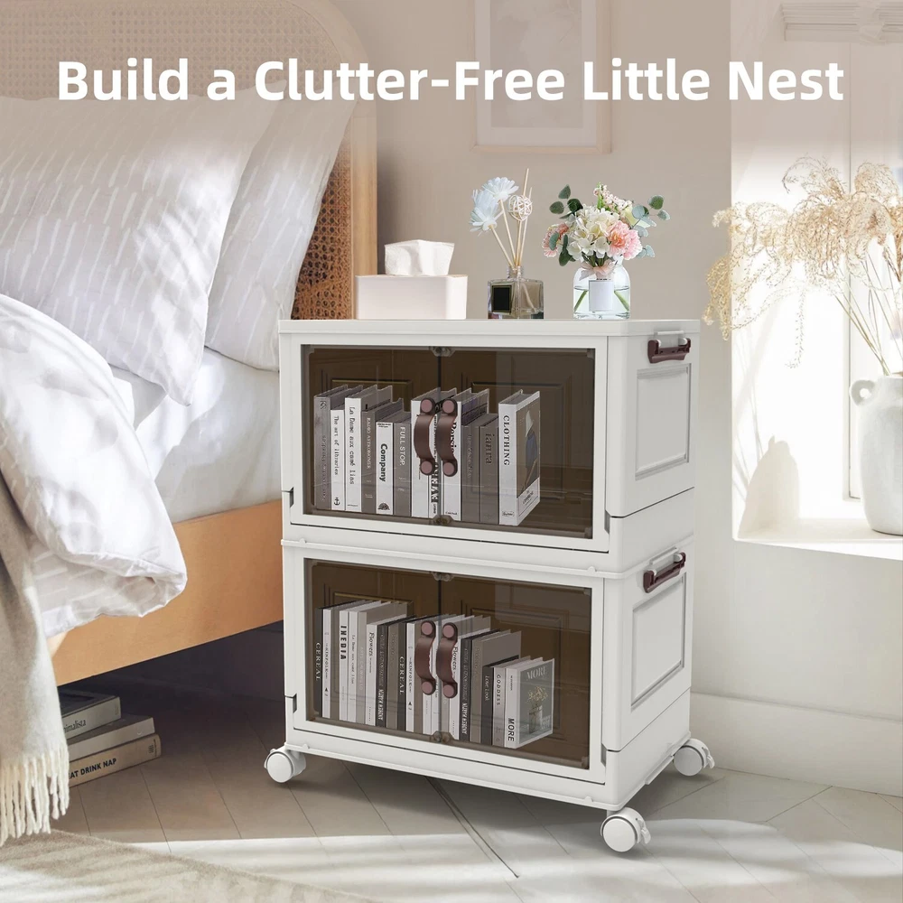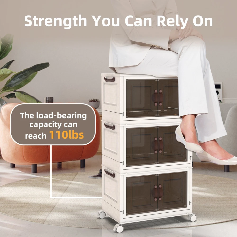 【CONVENIENT DUAL ACCESS】 These stackable storage bins with doors feature a top-opening lid and a front-access door, letting you effortlessly load a pile of clothes from the top and retrieve items one at a time from the front. This dual-access design is perfect for closet organizers and storage, streamlining organization and reducing the hassle of rummaging through belongings 【SPACE-SAVING DESIGN】 Foldable for ultimate convenience, these foldable storage bins collapse to a compact size of 19.68 * 11.81 * 2.75 inches. Opening and folding take just a few simple steps, allowing you to carry and store them with ease. As versatile folding storage solutions, they’re perfect for those on the move or for seasonal storage needs 【DURABILITY PREMIUM MATERIALS】 Crafted with upgraded TPR-infused materials, these foldable storage cabinets are tough, impact-resistant, and wear-resistant. Their sturdy construction ensures reliable performance as closet organizers and storage for long-term or daily organization 【MOBILITY AND STABILITY COMBINED】 Equipped with smooth-rolling, lockable wheels, these storage bins with wheels offer unmatched convenience for indoor movement. Whether you’re organizing a playroom or managing seasonal decorations, these bins combine the flexibility of mobility with the security of stable placement 【VERSATILE STACKABLE CONFIGURATION】 Designed as stackable storage bins with lids, these bins can be securely placed one on top of another without limits, making them suitable for various spaces. Use them as stackable storage drawers for clothes in closets, offices, or garages to create your own modular storage system that adapts to your needs On Jan 27, 2025 at 00:12:46 PST, seller added the following information: