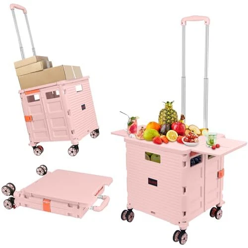 Return Policy Fast Delivery Trusted seller Foldable Utility Cart Collapsible Portable Tool Cart with Wheels Tote Basket,176LBS Load Capacity,Magnetic Lid Telescopic Cover with 360° Wheels Telescoping Handle for Grocery Laundry Luggage,Pink Product Description 【Smart Extended Lid】 The newly upgraded magnetic suction cover design,The cart comes with a lid to keep contents secure,it can be used safely in rainy days without getting wet.When you are tired,you can sit on the lid and have a rest.The lid can be extended as a table,suitable for outdoor field,family gatherings. 【High Quality Material】This collapsible rolling crate is made out of premier, sturdy, durable and environment friendly polypropylene, equipped with anti-rust aluminum alloy handle (stronger and lighter) and wear-resistant and pressure-resistant TPE rubber wheels to ensure smooth rolling when applicable. Besides, the material of the folding utility cart makes it easy to roll on any road and ensures longevity. 【Heavy Duty and Durable】 The drawbar is made of reinforced aluminum alloy material, light and durable. The box is made of thick impact-resistant engineering PP material, which is wear-resistant and scratch-resistant. The box has large space and strong bearing capacity, holding up to 80KG(176LBS) capacity. 【Extra Strong Loading & User’s Best Friend】This rolling storage cart can withstand the heavier loads better than other grocery cart, it offers 1.9 cubic feet of storage space and bears 50 kg/110lbs, the lid supports up to 265 lbs and you can sit on the lid and rest when you are tried. 【Multifunctional Use】This folding rolling bar box is more environmentally friendly than plastic bags, and can be used as a folding cart, rolling tool box, teacher rolling cart, wheeled laundry basket, wheeled rolling document cart. Essential in office organization and Product covered under one or more claims of Licensed U.S. Patent Nos. 11,565,735 and 11,338,835 Shipping Returns Payment Shipping Shipping is FREE to all addresses other than APO/PO boxes in the lower 48 states. All our stock ships from US-based warehouses. Shipped via USPS or UPS (depending on location and package weight) Unless stated otherwise, all orders will ship within 24-72 hours of your payment being processed. Check our feedback to see the great reviews of FAST shipping we offer. Returns Seller does not accept returns Payment We currently accept payment via eBay managed payments only. Once payment is cleared, we will dispatch your shipment within 1-3 business days. Please refer to the "Shipping" tab for more information regarding shipping speed to your destination.