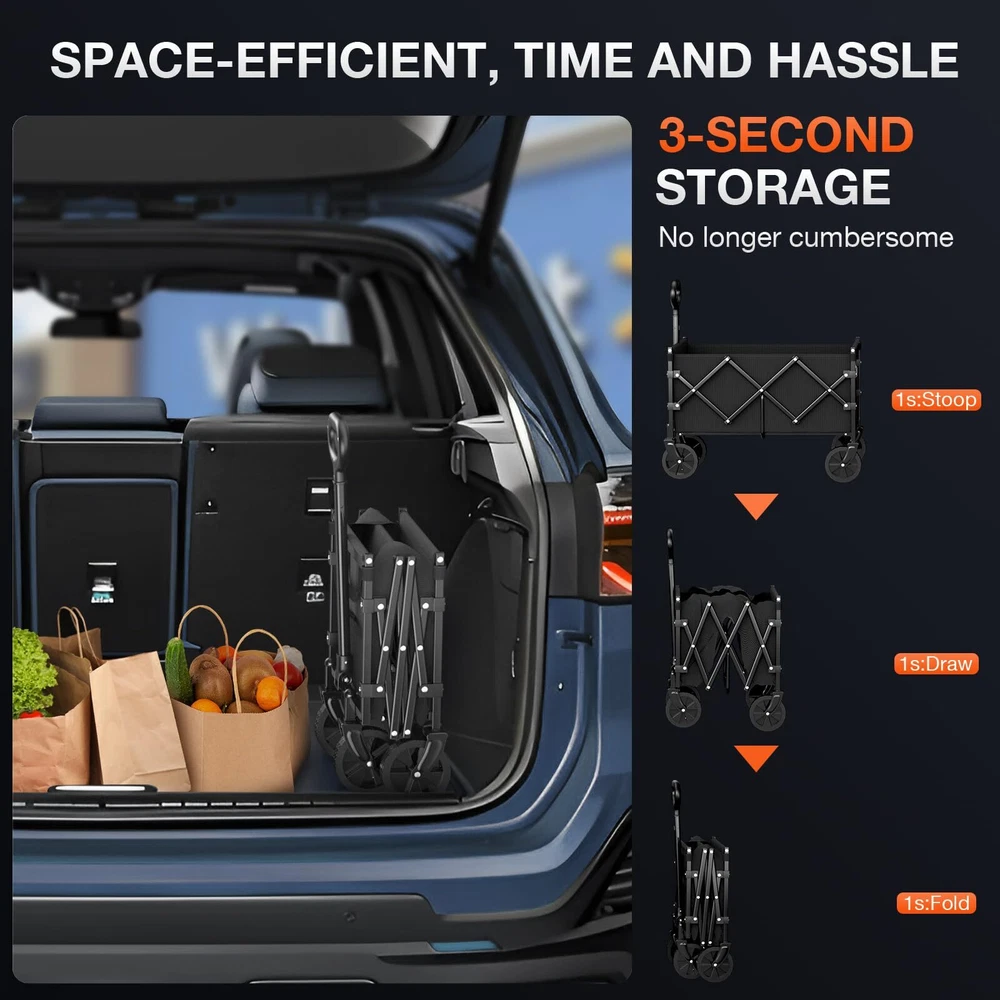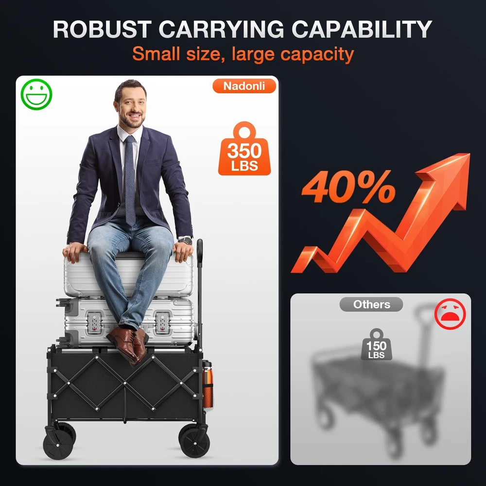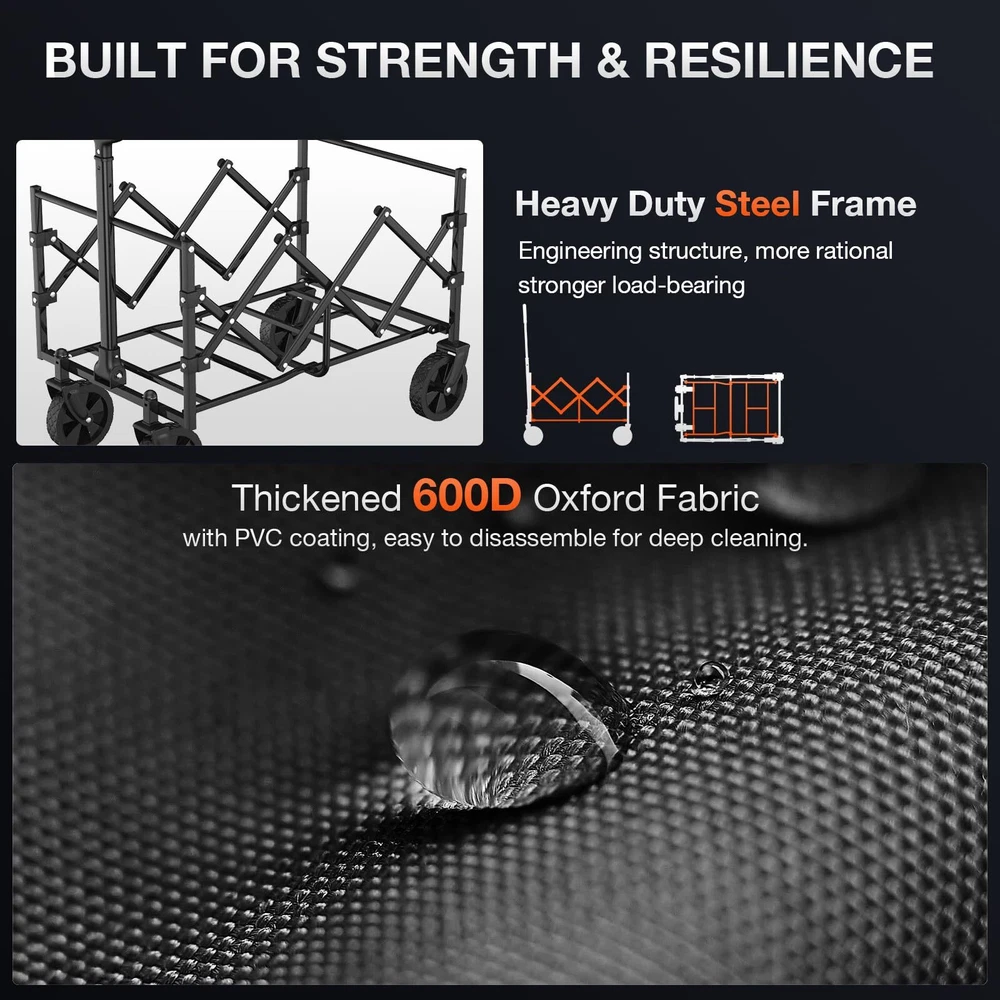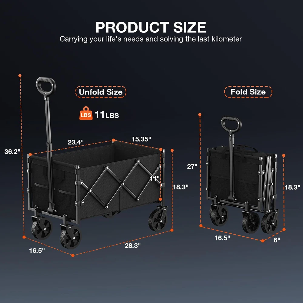 Foldable Wagon with Wheels, Portable Heavy Duty Collapsible Beach Cart - Large Capacity Utility Wagon for Shopping, Sports, Camping,Garden,Grocery 【Newest Design - Foldable Wagon】: basics folding wagon unfolded size: 36.2" x 28.3" x 16.5", folded size: 27" x 16.5" x 6" ,with 2 Mesh Cup holders, enough to support daily use, Easy to assemble in a minute, please refer to the installation video 【High-quality Materials】: The wagons cart is made of high-quality alloy steel,static weight load up to 350 pounds,dynamic weight load up to 220 pounds, with removable 600D oxford canvas is waterproof, easy to clean and durable 【Easy to Fold & Carry】:Folding wagon with an internal pull rope,easily set up or fold down the wagon in seconds, and the collapsible wagon is only 12.8 pounds, people of all ages can carry and use it easily 【Wide Use-Utility Wagon】: This folding wagon is equipped with four all-terrain wheels, including two 360° rotating front wheels,Moves Easily over different terrains. Perfect for shopping gardening picnicking camping or sports equipment handling 【12 Month Warranty & 24H-Online Service 】: Every purchase comes with a 100% satisfaction guarantee.Any problem with our wagon cart, please fell free to contact with us,we are glad to service for you within 24h. Note: this product is not designed to transport children