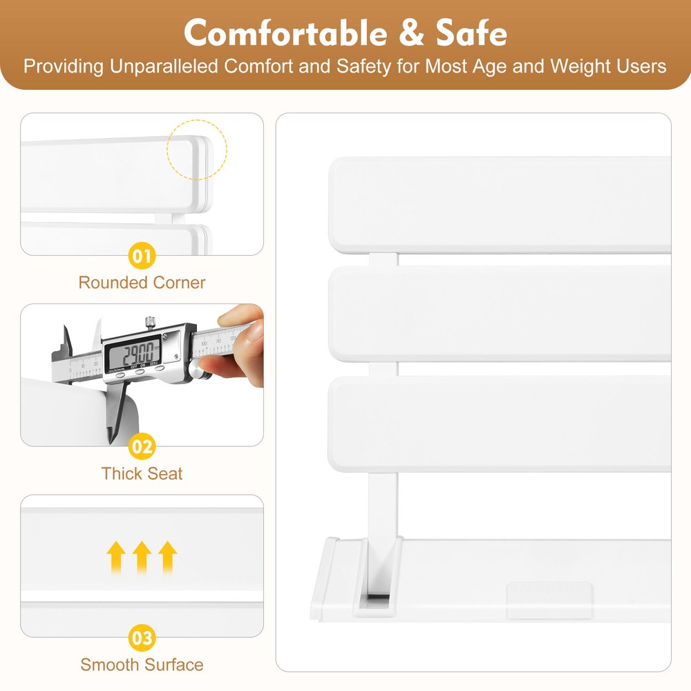 Foldable Wall Mount Shower Seat Bench for Elderly Pregnant and Disabled Safety Support