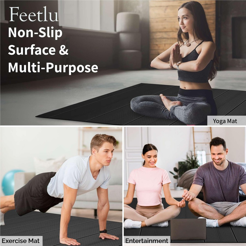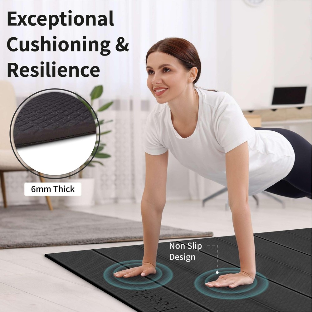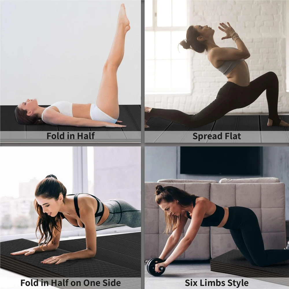 Folding Yoga mat is designed easy to carry and easy to storage for multi-purpose Yoga Pilates, Exercise Workout. Most notably, the gripping property of the mat allows its surface to be non-slip throughout all practices. The Incomparable comfort elevate cushioning and protection for your joints and knees to the next level from minor to major floor exercise fitness sessions and is higher recommended by yoga user. [Non-Toxic & ITS Certified] Certified by ITS and made with non-toxic POE, 's odorless yoga mat ensures a cleaner, safer workout at home or in the studio. [Large & Thick] 's spacious 72" x 24" mat with 1/3" cushioning offers joint protection and comfort, ideal for yoga poses, therapy sessions, HIIT training, and easy travel. [Easy to Fold & Store] 's foldable yoga mat features a smart accordion design that folds quickly, lays flat without curling, and holds firm without any need for a strap. [Non-Slip Surface & Multi-Purpose] A secure, anti-slip design with double texture provides traction during every move. Lightweight for easy transport to the gym, Pilates studio, or meditation class. [100% Customer Satisfaction] Designed with a high-quality, non-absorbent surface that resists sweat and wipes clean easily, our yoga mats offer a worry-free experience. Reach out anytime for a quick solution.