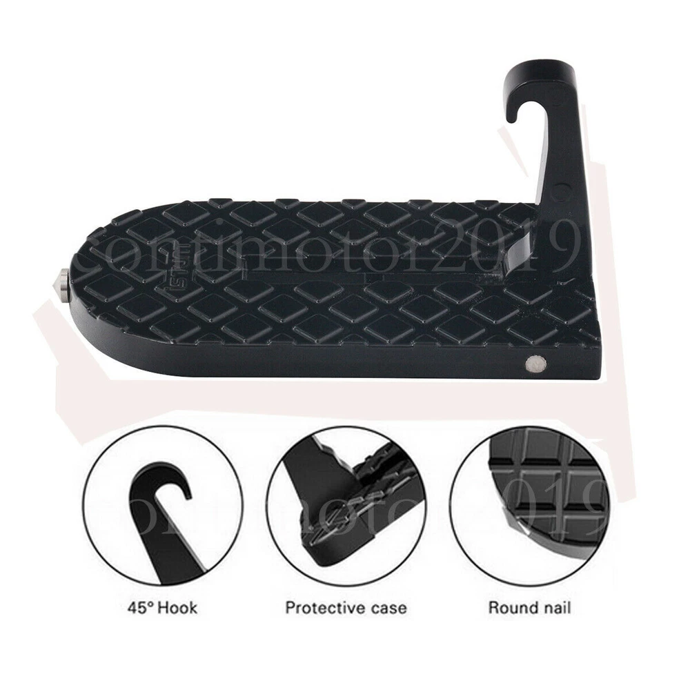 1.UPDATED CAR DOORSTEP: Injecting strong iron material into the durable nylon casing design prevent your car from paint scratching; Foldable and easy to store; 2.ANTI- SKIDDING DESIGN: Non-slip surface provides solid and secure support for you standing on doorstep; Size: 6.10 x 2.56 x 2.95 inches; 3.EASY TO USE : You can easily reach the top of the car without any struggle as to make full use of in-car space; The maximum load capacity is 500 pounds; 4.Safety HAMMER DESIGN : It is a powerful survival tool with safety hammer in case of emergency; Well executed and safety window breakage function to boot; 5.Life-time g uarantee: 100% money back guarantee; if you are unsatisfied with our product, we provide free return service within 30 days; Specification: Color: Black Size: 6.10 x 2.56 x 2.95 inches Packing: 1 pack Advantage: --Upgraded Folding Design - Small but sturdy, easy to install. Car foot pegs folding design, easy to carry and place, and does not take up space in the car. --Use as a safety hammer - This Car door step hook can be folded up to serve as a escape tool, it provides you with a powerful tool for survival in case of emergency. --Easy to use - You can put all your bulky items on car rooftop or rack without any struggle with the help of the doorstep and enjoy a wonderful journey with the spacious space. --Anti-scratch D esign - This upgraded version for folding vehicle hooked doorstep. Nylon coating surface make sure no scratch when touching the car. --Widely Applicable - Vehicle car door step have enough size, fit for all sizes of feet, compatible with all kinds of SUV, RV, Jeep, Truck, van or Off-road car. --Strong and Safe - Our car doorstep can support up to 500 Pounds for access to car roof rack, Completely no problem for handling bulky items. Payment Delivery details Payment 1.We accept PayPal only. 2.All major credit cards are accepted through secure payment processor PayPal. 3.Payment must be received within 7 business days of auction closing. 4.We ship to your eBay or Paypal address. Please make sure your eBay and Paypal address is correct before you pay. Delivery details 1.We ship to your eBay or Paypal address. Please make sure your eBay and Paypal address is correct before you pay. 2.Items will be shipped within 1-3 business day when we received payment. 3.Delivery time depends on destination and other factors; 4.International buyers please note: a.Import duties, taxes and charges are not included in the item price or shipping charges. These charges are buyer’s responsibility. We will try our best to reduce the risk of the custom duties. b.Please check with your country's customs office to determine what these additional costs will be prior to buying.