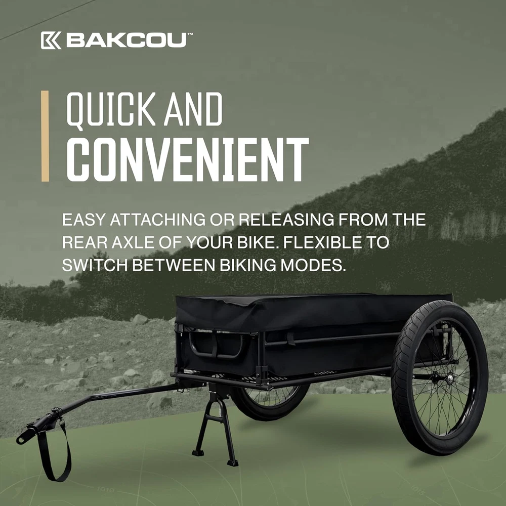 Store New Arrivals Add to Favorite View Feedback Contact | Folding Cargo Ebike Trailer with 20" X 3" Fat Tires, Canvas Liner & Hitch - Easily Attach to Ebike, with Axle Extenders & Kickstand - 150-200 Lbs Capacity, Ideal for Hauling Gear Description Part Number TRAILER CARGO-FLDNG-FBA Style Cargo Trailer Seating Capacity 1 Color Black Item Weight 42 Pounds Material Aluminum Maximum Weight Recommendation 200 Pounds Sport Type Outdoor Lifestyle Suggested Users mens Package Weight 26.31 Kilograms Model Name TRAILER CARGO-FLDNG Maximum Height Recommendation 10 Inches Product Dimensions 40.5"L x 16.5"W x 10"H Item Package Dimensions L x W x H 43.5 x 22.5 x 11 inches Quick and Convenient: The Bakcou Folding Cargo eBike Trailer is designed for hassle-free use, easily attaching or releasing from the rear axle of your bike. Flexible to switch between biking modes. Weather-Resistant: Equipped with a removable canvas liner and top, this bike trailer ensures your gear stays securely in place while shielding it from the elements. Keep your cargo dry and protected. Versatile Hitch Compatibility: The included hitch allows seamless attachment to your BAKCOU eBike, ensuring a secure and stable connection. Experience the convenience of a reliable hitch system. Easy Customization: The Folding Cargo eBike Trailer comes with axle extenders, providing easy customization of the wheelbase. Effortlessly attach or remove the extenders to adapt the trailer. Durable Construction: With 20” x 3” fat tires recommended for 20 PSI tire inflation, the Bakcou trailer boasts a cargo area of 16.5” W x 40.5” L x 10” H. With a length of 70”, 10" clearance, and a weight of 42 lbs, it offers a 150 to 200 lbs capacity. Product Description ABOUT US We offer the best prices around on high quality products. Our E-store includes media such as books, movies, music and games while offering electronics, toys, sporting apparel, clothing, tools, general home, garden items and more. SHIPPING We are always working hard to ensure your package arrives as soon as possible. Please understand that some factors like weather, high postal traffic, and the performance of shipping companies are outside of our control. We offer free shipping to the lower 48 states and ship within 2 business days of payment, usually sooner. We do not accept P.O. Boxes. Please provide a physical address. For shipping outside of the continental USA, we only use eBay's Global Shipping Program.The item is shipped to KY and then sent to the rest of the world. International customers are responsible for all duties and taxes. Continue to check out in order to calculate costs for shipping the item to your country. Messages regarding eBay's Global Shipping Program MUST be directed at eBay EXCLUSIVELY. RETURNS We offer a 30-Day Return Policy on items which you are not completely satisfied with. You have the option for a full-refund or an exchange of the item. No returns are available on items shipped outside of the USA. PAYMENT We accept PayPal. CONTACT US This page content is yet to come Please ad us to your favorite seller and visit again later Thank You CUSTOMER SATISFACTION We try our very best to make sure every customer is completely satisfied. If there's a problem, message us! We're happy to help. WE ACCEPT Copyright © 2021 AutoDS. | All Rights Reserved