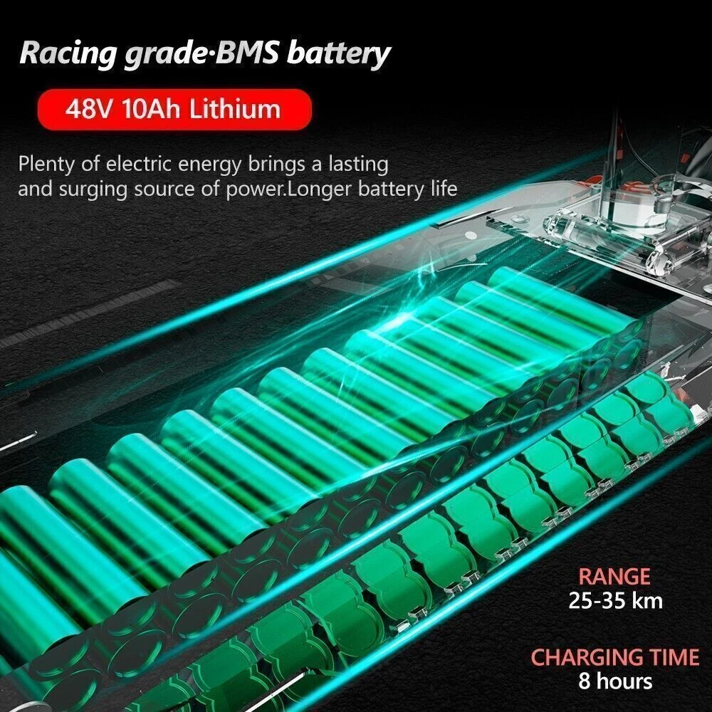 IENYRID M4 600W foldable electric scooter designed to let you travel in style and serves as fun and environmentally friendly way to explore the scenery! This electric scooter equips an upgraded 600W hight speed powerful motor, owning a 28 MPH max speed and a range of 31 miles, max load up to 330 lbs. Detachable seat design, freely switch 2 riding modes, so cool and so convenient. The excellent braking system makes the brakes respond more quickly and improves the safety when riding. The front and rear shock absorbers provides maximum rider comfort. With 1-second foot-actuated folding, the electric scooter can be quickly collapsed. After folding, the IENYRID electric scooter can be carried one-hand, making it a perfect commute companion. Cruise at a constant speed makes you more relaxed as well. The adult electric scooter is equipped with wider foot anti-slip pedal for larger feet support, high lumen head lamp for safe night riding, and clear LED display for relaxing riding. and clear LED display for relaxing riding. Let's live an active lifestyle and want to refine your traveling; or you are a novice of electric scooter, iENYRID M4 electric scooter for adults is your right one! Advantages of Product: Equips an upgraded powerful motor,owning a 28 MPH max speed and a range of 31 miles, max load up to 330 lbs. Dual front and rear disc brakes, quick respond braking also safer for emergency braking. Come with a soft seat and dual shock absorption system for your comfort driving. With 1-second foot-actuated folding, easy to carry and storage. Cruising at a constant speed makes you more relaxed, 3-speed modes of your choice. Clear LCD display shows the battery, headlight, cruise indicator, gear indicator, and total mileage for all your need. Multi-functional buttons achieve to change the speed, lights, and cruising modes easily. Conquers hills with ease. Detachable seat design freely 3 riding modes. Specification: Body: Aluminium alloy Motor: 600W Brushless Motor Battery: 48V 10AH Lithium Battery Adapter: Incoming 100-240 V, Outgoing 54.6 V 2A Brakes: Mechanical disc brake Tires: 10" Off-road Tires Lights: Front LED headlight, turn signals and taillight Max. loading: 330 lbs Max. Speed: 25 - 28 mph Maximum Range: 18-31 miles without recharging Charging time: 6 - 8 hours Gradeability: 10-25 degrees Product weight: 52.69 lb Package contents: 1 x IENYRID M4 Electric scooter. 1 x Portable Folding Handle 1 x Seat 1 x Tool set. 1 x Main charger. 1 x User manual About this item IENYRID M4 800W 🛴【Powerful Motor】IE-M4 electric scooter is equipped with 800W brushless motors which can reach a max speeds of around 25-28mph, this e-scooter can make your journey from home to the office, school or just around the neighbourhood 10 times less stressful. Experience the joy, fun and freedom of having an easy, safe and sound travel. 🛴【Smooth Ride】IE-M4 electric scooter features 10inch On-road and offroad pneumatic tires, disc brakes, comfy handlebars,easy to set up, use and understand, it can help you save time and money by providing you a unique and practical means of wheeled transport,enjoy wonderful rides conveniently. 🛴【Long Battery Life】Travelling long distances you want reachs up to 25-31 miles,and enjoy fast chargers,IE-M4 electric scooter for adults is a great public transport, this e-scooters is great for commuting to and from work each day, while allowing you to access recreational areas such as the beach on a weekend. 🛴【Safety】Foldable IE-M4 electric scooter with seat have unergone the UL2272 test processes,built in battery management system which make it a safe prosonal transport. what's more, bright headlights, simple headset adjustment, simple to learn and use ,the comfortable ride easily tackled every route. 🛴【Compact Size】IE-M4 electric scooter is foldable and easy to store anywhere.In just a matter of seconds, you can fold it into more compact sizes. Furthermore, the stylish and elegant designs make it ideal companions in your daily commute.it is easy to carry up stairs, stow under a desk or hide away in a closet. 🛴【Stable and Durable】 IE-M4 scooter excels in acceleration and cornering and is extremely smooth. Built with sturdy and durable materials, with 10-inch tires and an overall frame, it ensures you enjoy a stable and comfortable riding experience during your commute.