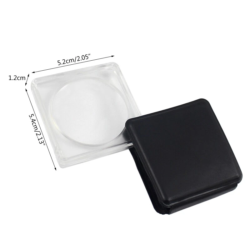 Folding Pocket Glass Portable Compact Magnifier for Reading Features: Compact folding fits in your pocket or purse. Great for travel, camping, and survival kits. Just pull out the magnifier to use, and put it back when not in use. Kids glasses are easy to hold for hobby/outdoor exploration, also powerful enough for seniors' reading small prints/instructions/maps. The portable glass is for reading newspapers/photos/books/instructions/ingredient list/maps/documents, It's really a useful and economical present for your kids, parents or Specifications: ABS+Glass Size: approx 5.4x5.2x1.2cm/2x2x0.5in Magnification: 5X Package Includes: 1x Glass note: Please allow 1-3cm error due to manual measurement. pls make sure you do not mind before you bid. Due to the difference between different monitors, the picture may not reflect the actual color of the item.