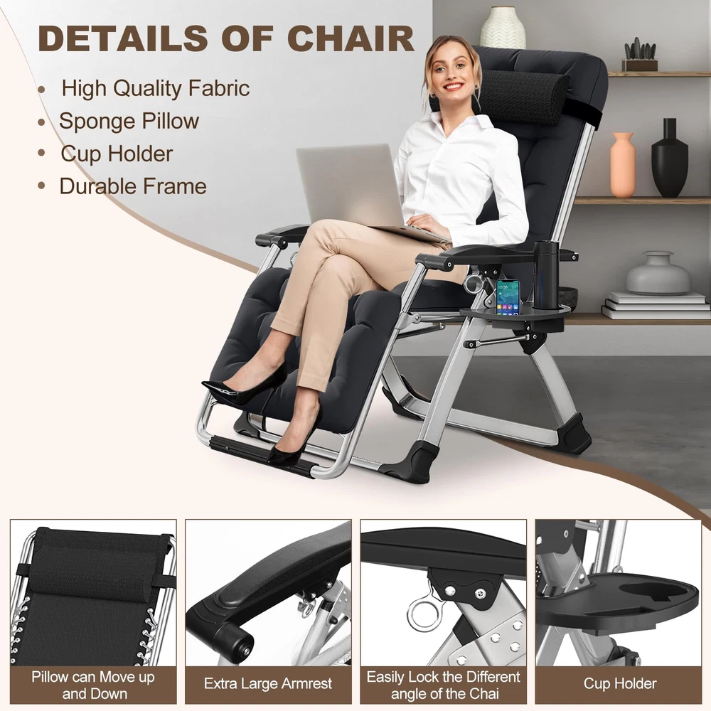 【COZY AND COMFY】 Whether you're reading your favorite novel, watching a TV show, or even doing homework, this cozy chair is all you need to make everything more relaxed and comfortable. Holds Up To 440 Pounds. 【ADJUSTABLE DESIGH】This recliner chair for living room can be adjusted from 90 to 170-degree angle effortlessly for your preference. This amazing feature helps you choose the best angle, allowing you to feel comfortable and relaxed. Simply push the clip to unlock the position, and pull the clip back to secure it at your desired position. 【REMOVABLE SOFT CUSHION】The soft cushion adds extra comfort, but can also be removed in summer to improve breathability. Additionally, folding chair is very easy to use and can be easily folded, for easier storage and carry; 【MAKES GREAT GIFT】If you’re looking for that perfect gift for your loved one, you just found it. Ideal for dorms, apartments, office, outdoor use and more. It is a gift that will be reused and appreciated. 【WIDELY USE】This living room chair can be used not only at home, but also in the office or outdoors. Suitable for living room, terraces, lawns, gardens, yards, balconies, poolsides and beaches. This folding chair can be folded and unfolded in a few seconds, making it very convenient for transportation and storage.