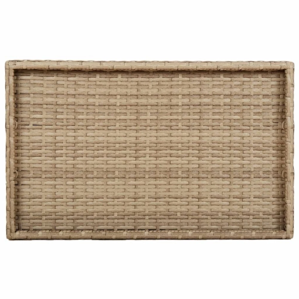 Size: Medium This Folding Tray Table comes in a nice beige that fits in everywhere, be it patios or living rooms. It's a fab option for serving meals, snacks, or drinks, and it's lightweight and easy to carry, making it super versatile for home or outdoor gatherings. Durable Materials: Made from UV resistant poly rattan and strong powder-coated steel, the table stands up to all kinds of weather, so it lasts longer. Adjustable Features: The foldable design makes it easy to set up and put away, which is a big win when in use. Convenient Storage: When it's not in use, the table folds flat, so it's easy to tuck away and saves space. Elegant Finish: The textured surface adds a touch of style, giving your decor a lift wherever it is. Multi-functional Use: Great for social gatherings, moving drinks around, or just as a decorative touch in your home. Color: Beige Shape: Rectangular Material: Synthetic Poly Rattan Finish: Textured Indoor/Outdoor: Indoor / Outdoor Cover Included: No Room: Garden and terrace Dimensions: 15.7 in x 25.6 in x 29.5 in (W x L x H) Surface Height: 2.4 in Leg Height: 29.5 in Weight: 8.55 lbs Delivery Contains: 1 Tray Table Assembly Required: Yes Recommended Number of People for Assembly: 1