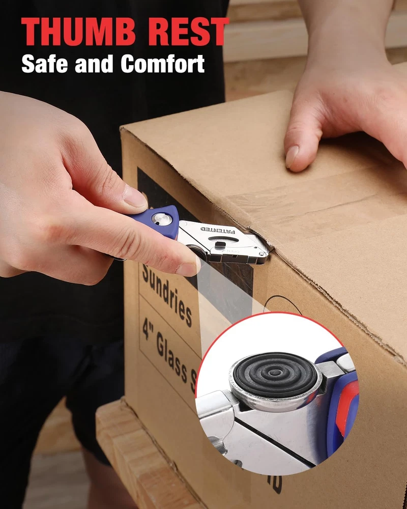 Safe to use. This knife cutter features a quality steel handle and an anti-slip ABS grip, providing more security. The ergonomic curve of the handle fits your hands. No need to worry about the blade slipping from your hand while working. Also, our razor knife is built with a back lock that safely keeps the blades in place, allowing one-hand easy opening and close Quick-change mechanism. Your brand-new work knife comes with an easy blade release mechanism that allows you to safely change the blades and helps prevent injury. Just push the head cover of the blade and drop down the cover of the blade. Our utility knife is compatible with most standard-sized utility knife blades for extra convenience Portable & lightweight design. Our box cutter knife is lightweight and compact, making it easy to take anywhere. It comes with a belt clip, so you can quickly clip it on and off. Carry it with you on your belt, pocket, or bag so you’ll always have it when needed. You can store up to 5 extra blades in the handle Use for various applications. WORKPRO utility knife is built to last. It can be used for various jobs that you may need to get done. It cuts through paper, carpet, plastic, cartons, cloth, bags, leather, PVC, drywall, and more. Get more work done with our sturdy cutter knife Long-lasting utility blades. WORKPRO folding utility knife is made from quality steel which makes it sturdy and long-lasting Product Description WORKPRO Utility Knife & Blades Add to Cart Add to Cart Add to Cart Add to Cart Add to Cart Add to Cart Add to Cart Customer Reviews 4.6 out of 5 stars 10,403 4.7 out of 5 stars 1,820 4.7 out of 5 stars 3,551 4.7 out of 5 stars 1,465 4.7 out of 5 stars 3,551 4.7 out of 5 stars 17,605 4.8 out of 5 stars 1,232 Price $9.99 $ 9 . 99 $15.99 $ 15 . 99 $14.99 $ 14 . 99 $15.99 $ 15 . 99 $14.99 $ 14 . 99 $9.99 $ 9 . 99 $14.99 $ 14 . 99 Foldable ✔ ✔ ✔ ✔ ✔ ✘ ✘ Retractable ✘ ✘ ✘ ✘ ✘ ✘ ✘ Quick Blade Change ✔ ✔ ✔ ✔ ✔ ✔ ✔ Blades Storage ✔ ✔ ✘ ✘ ✘ ✔ ✔ Extra Blades 5 15 10 — — 100 100 1 5 Extra Blades in Handle 2 Thumb Rest 3 Sharpe Blade 4 Belt Clip Blade Storage in the Handle Push the button to open the storage compartment Back-Lock Release Push here to close the utility knife Belt Clip Design Stainless steel belt clip for easy access Long-lasting Use Heavy duty construction for contractor use