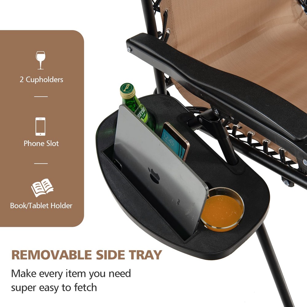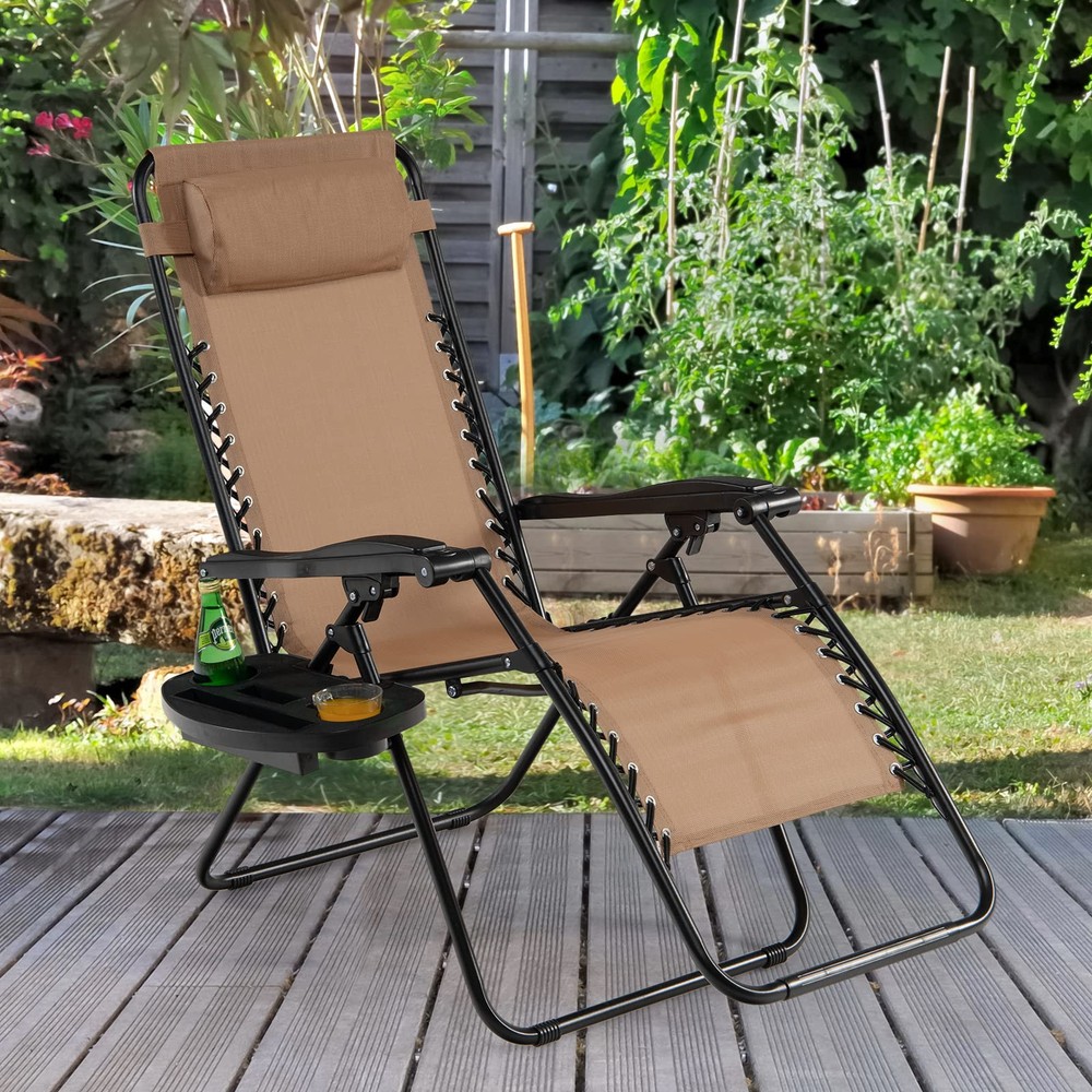Description: With contemporary and concise design, the chair is perfect to be a great addition for your outdoor space. Our zero gravity lounge chair brings you a pleasant enjoyment! The quick folding design is convenient for transportation and storage that you can take them anywhere you want. The chair is equipped with cup holder tray which can place drinks, magazines, mobile phones or computers for easy Reach. The use of the stable frame and breathable fabric makes the outdoor resting more enjoyable. Moreover, chairs do not need to be assembled, which brings great convenience to you. Features: Breathable fabric reduces heat transfer and provides a cool feeling of use Sturdy steel frame with non-slip foot pads for stability Folding design is easy for transportation and storage Adjustment knob helps you find perfect angle to rest The pillow that comes with the chair also brings you comfortable enjoyment Cup holder tray can provide with large space for placing something at your fingertips Footrest and armrest are equipped for added support Easy to clean and maintain No need for assemble Specifications: Color: Blue/ Black/ Beige/ Green/ Light Blue/ Gray/ Wine/ Brown Material: Steel + Fabric +Plastic Overall Dimension: 35” (L) X 25”(W) X 43”(H) Net Weight of Each Chair: 16 lbs Weight Capacity of Each Chair: 310 lbs Package Includes: 1 X Zero Gravity Lounge Chair 🏖️【Durable Material for Long-term Use】Our zero gravity chair are constructed of -coated steel frame and weather resistant fabric that reduce heat transfer and provide a cool feeling of use even in hot summer days. Non-slip foot pads at the bottom make chair sturdier and strengthen the stability of chair. 🏖️【Folding Design】Because of the lightweight design, the zero gravity chair can be easily moved to where you need it, no matter indoors or outdoors. It fits easily in the trunk of a car. It will also be convenient to fold up chairs in the process of storage. Not only that, folding design greatly also saves your living space. 🏖️【Adjustable Recliner System】Just twist the adjustment knob to adjust the angle of the chair to help you recline from upright to the zero gravity position. And the chair comes with widened armrests and footrest can let your body relax completely. Ergonomically designed chairs provide comfort when you lie down. 🏖️【Multiple Functions】The zero gravity chair can be placed on the beach as beach chairs, in the courtyard for sunbathing, or indoors for resting. The chair is equipped with cup holder tray which can place drinks, magazines, mobile phones or computers. In addition, the pillow which is removable can also provide you with added enjoyment. 🏖️【No Assembly & Easy Maintain】Unlike other complicated furniture, our outdoor folding recliner chair doesn’t need to be assembled at all, which is saving a lot of trouble or energy. What’s more, the cleaning and maintenance can be easy and fast because of the premium materials.