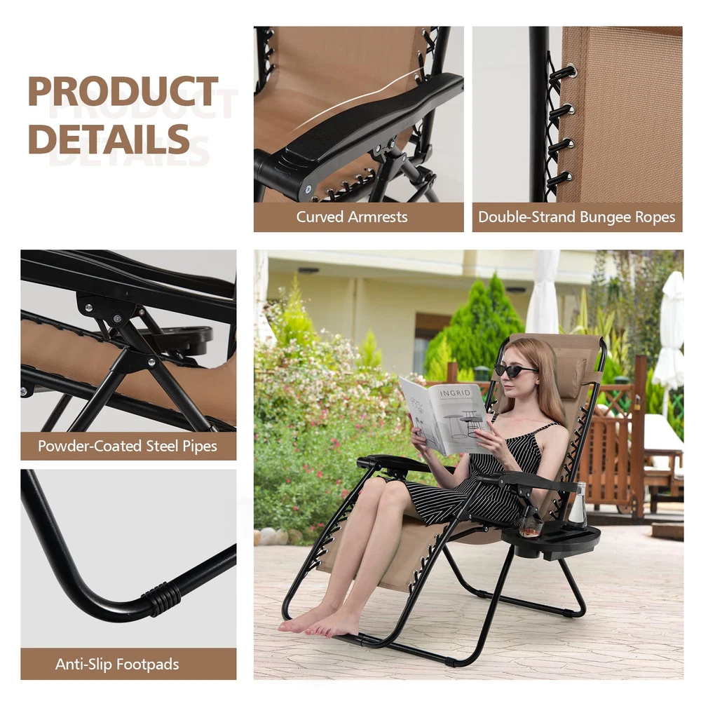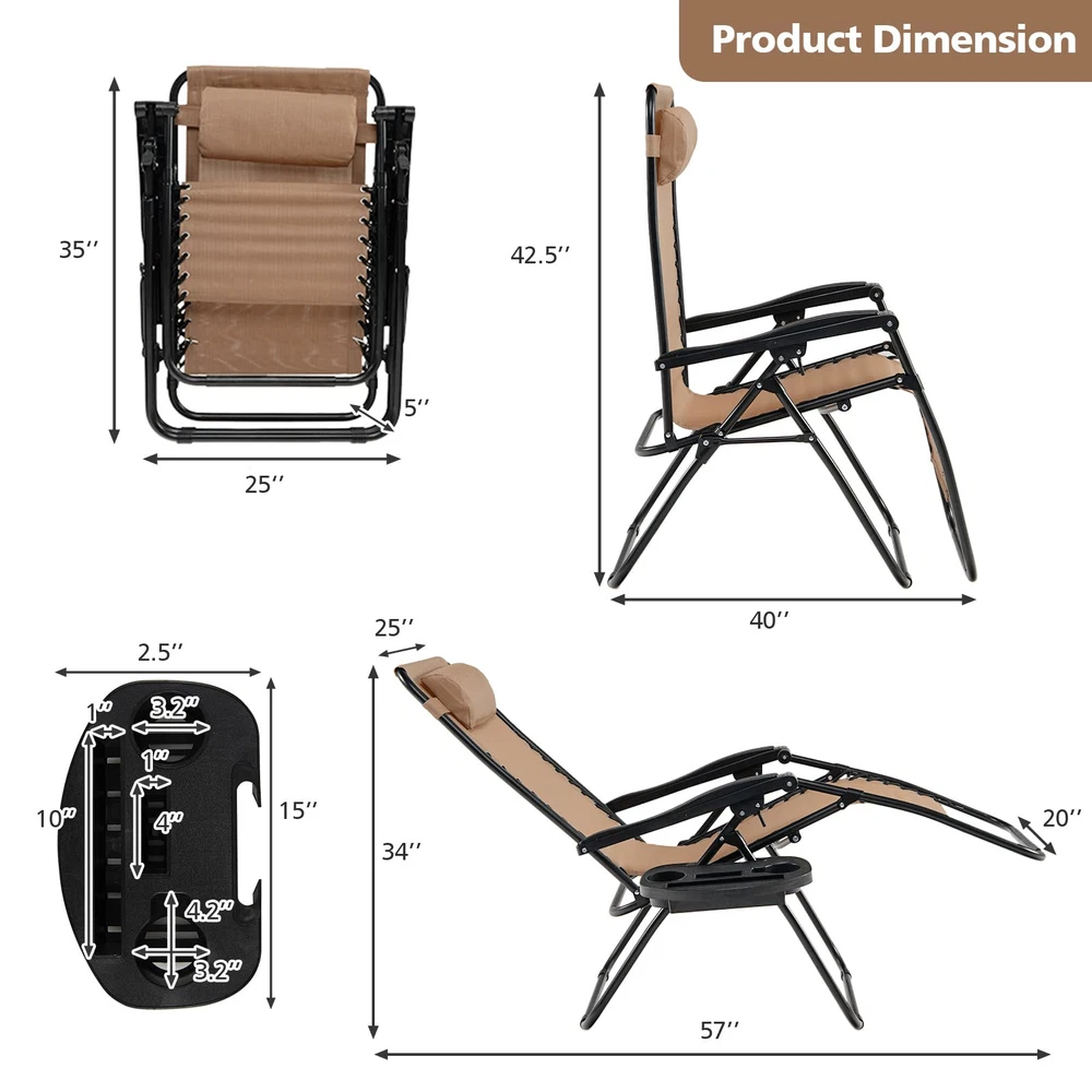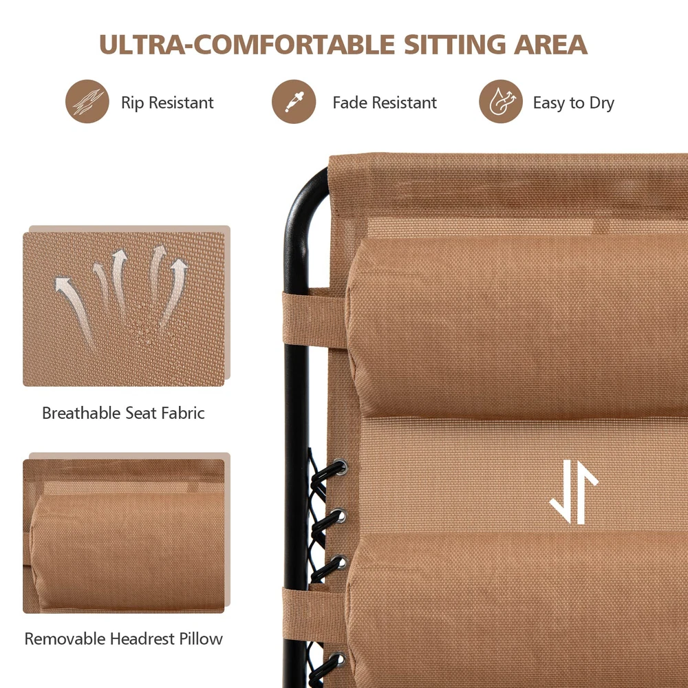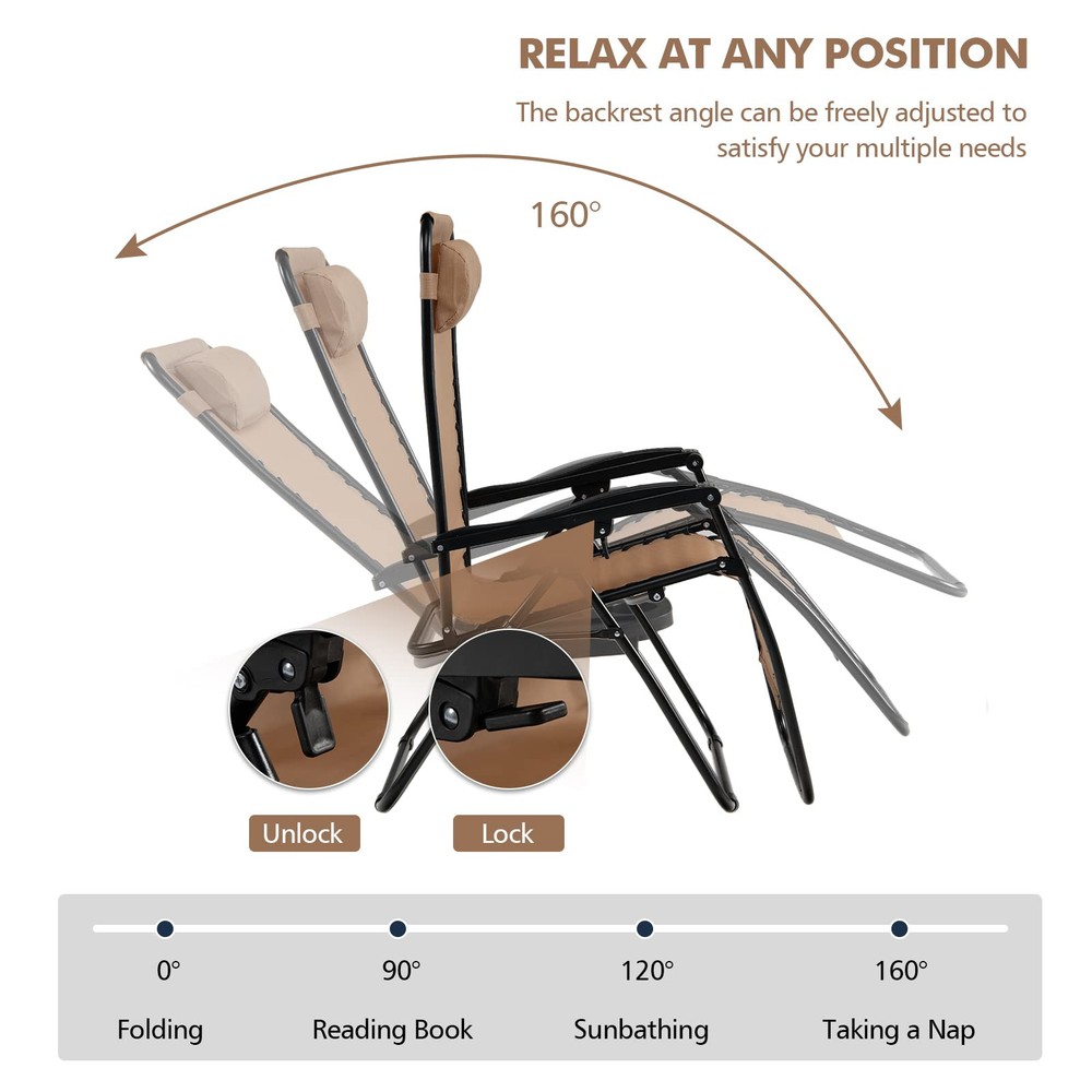 Folding Zero Gravity Outdoor Lounge Chair with Detachable Pillow and Adjustable Design