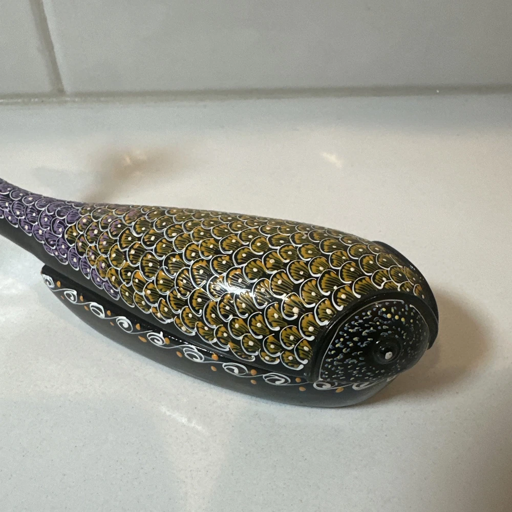 Time Period Manufactured: 1980-1989 Original/Reproduction: Original Character: Black Hand Shape: Whale Collection: Keepsake Boxes Country of Origin: Russian Federation Subject: Whale Item Length: 7.5 in Size: Medium Brand: Wooden Engraved: No Pattern: Bohemian Finish: Lacquered Item Width: 1 1/2 in Material: Wood Occasion: All Occasions Closure Type: N/A Type: Trinket Box Color: Multicolor Number in Pack: 1 Features: Hand Painted Item Height: 3.5 In Theme: Art Handmade: Yes Style: 1980s
