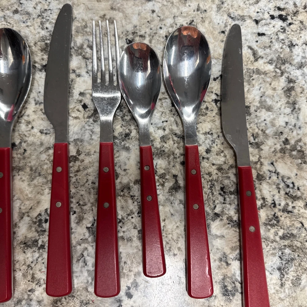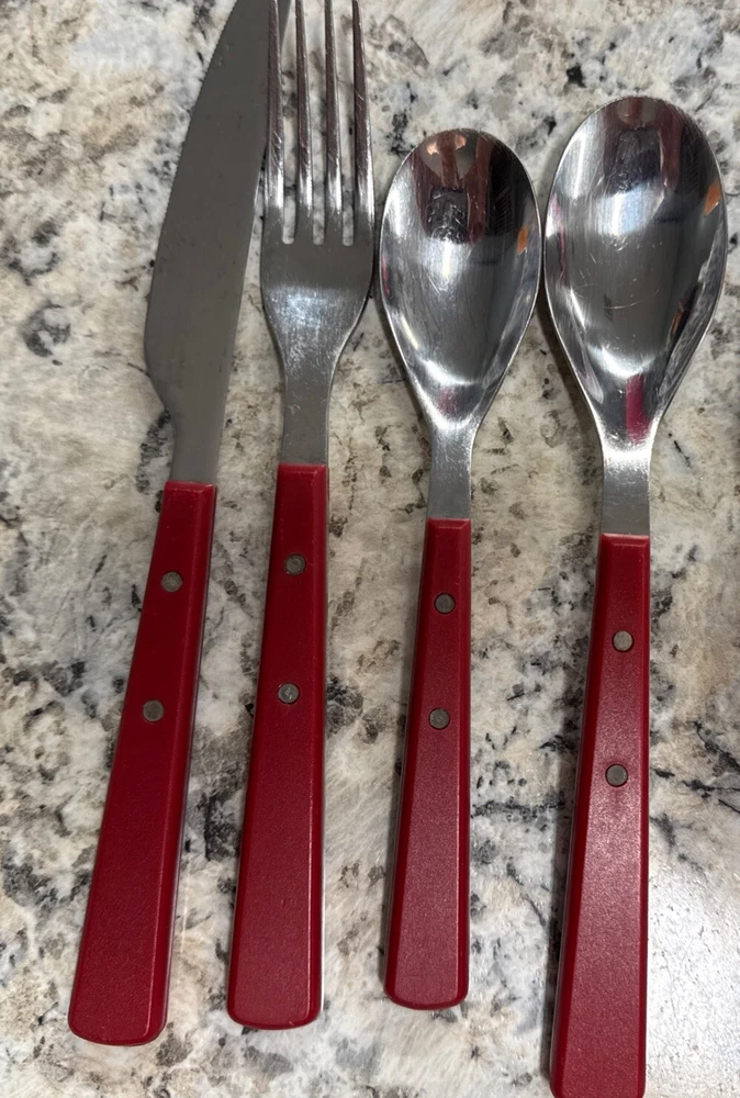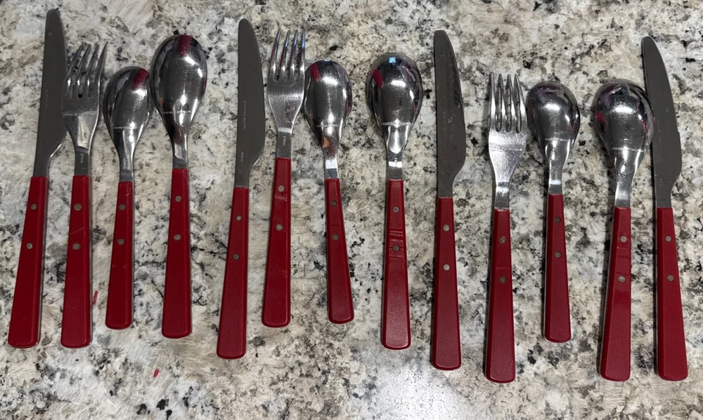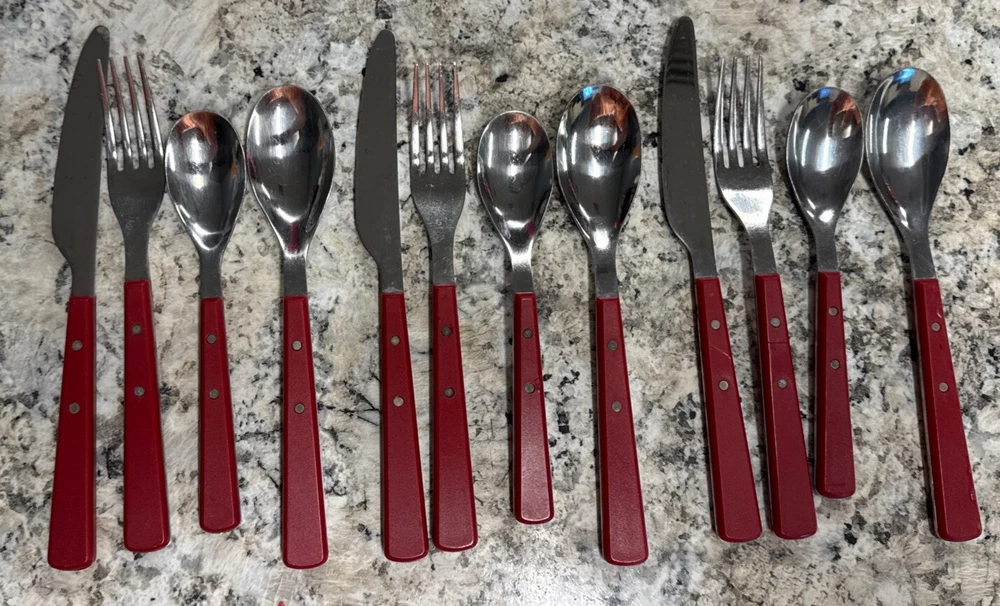 Elevate your dining experience with the Food Network Red Hibiscus Stainless Silverware Set. Crafted for versatility, this 12-piece collection is suitable for all occasions, whether a casual breakfast or a festive gathering. Each piece features a vibrant red hue paired with a classic mid-century modern design, adding a splash of color and sophistication to your table setting. The set includes forks, knives, and spoons, each meticulously designed with a solid handle pattern for comfortable handling. Made from durable stainless steel with plastic handles, this set promises longevity and easy maintenance with hand wash only care. Ideal for teens, adults, and kids, it's a stylish and practical choice for any household.
