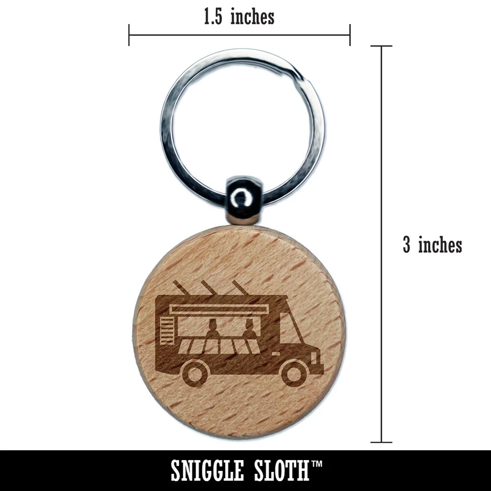 Food Truck Vehicle Engraved Wood Round Keychain Tag Charm