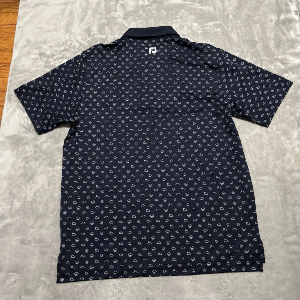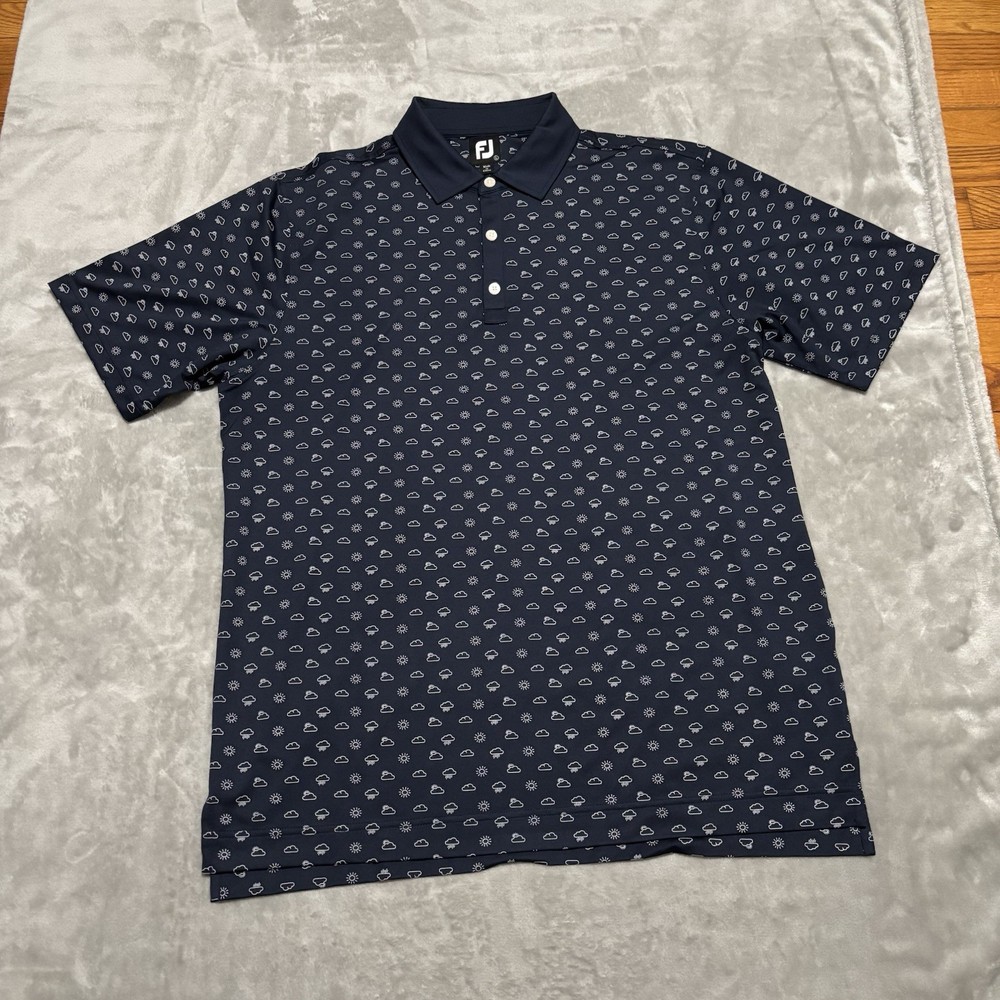 Neckline: Collared Department: Men Collar Style: Spread Personalize: No Fit: Regular Sleeve Length: Short Sleeve Brand: FootJoy Season: Fall, Spring, Summer Occasion: Activewear, Casual Sleeve Type: Casual Sleeve Signed: No Features: Breathable, Moisture Wicking, Stretch Closure: Pullover Fabric Type: Blended Fabric Performance/Activity: Golf Material: Polyester, Polyester Blend, Spandex Vintage: No Type: Polo Country of Origin: China Handmade: No Compression Level: Mild Size: L Chest Size: 48 in Size Type: Regular Color: Multicolor Shirt Length: 31 in Garment Care: Machine Washable Theme: Colorful, Sports Accents: Button, Embroidered, Logo