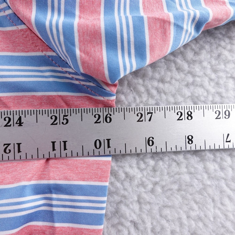 Elevate your golf game with this FootJoy polo shirt. Bold stripes define this shirt, while the Anthem Country Club logo adds a touch of exclusivity. Experience the effortless comfort that boosts your confidence on the green. Imagine yourself striding onto the fairway, the envy of your fellow golfers. Perfect for a casual round, a weekend tournament, or even a country club social event. Measurements: • Sleeve Length: 26 in • Length: 32 in Type: Polo Department: Men Product Line: FootJoy Golf Closure: Button Sleeve Length: Short Sleeve Performance/Activity: Golf Features: Quick Dry, Moisture Wicking Neckline: Collared Fit: Regular Pattern: Striped Style: Basic Keywords: FootJoy, golf polo, men's polo, Anthem Country Club, striped polo, athletic shirt, golf shirt, casual polo, sports shirt, performance polo, pink blue striped, short sleeve polo, men's golf apparel, country club style