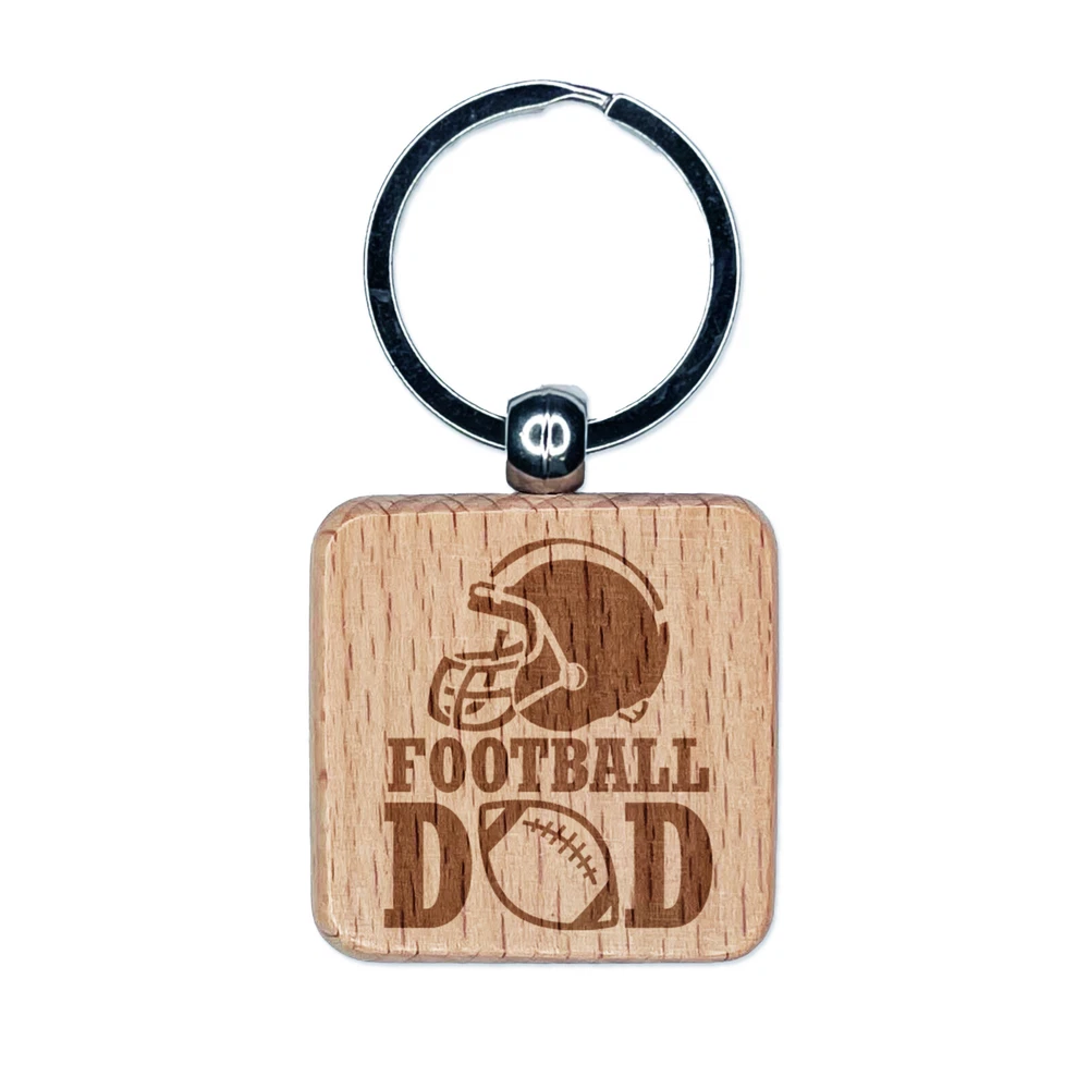 Football Dad Helmet Engraved Wood Square Keychain Tag Charm