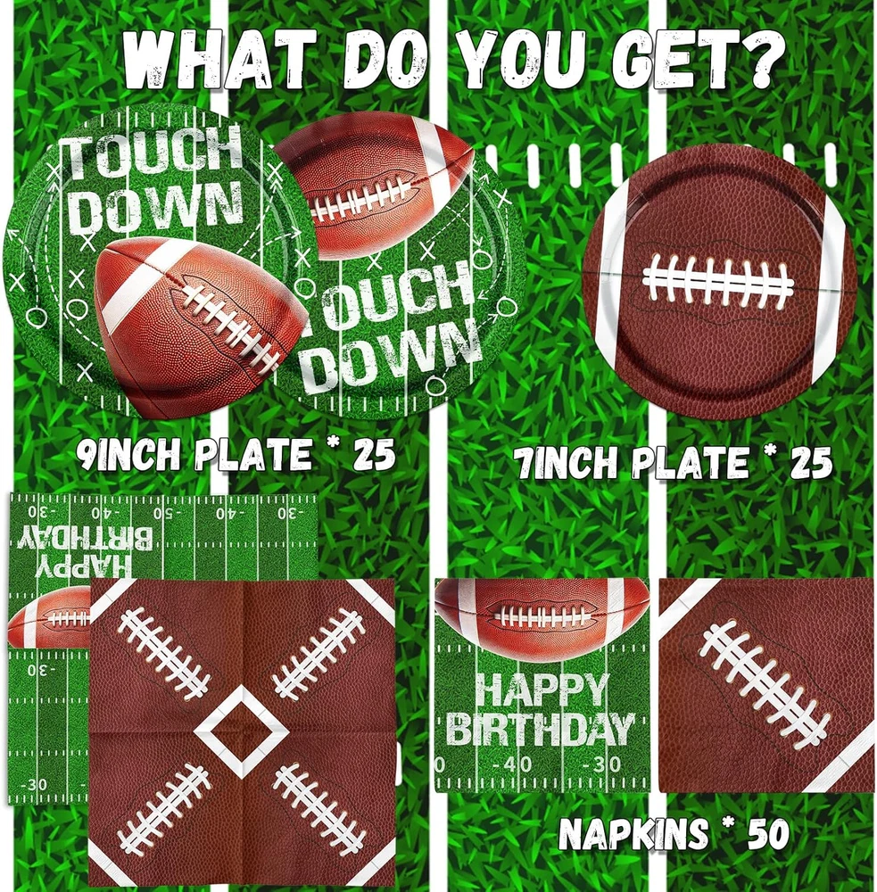 Store New Arrivals Add to Favorite View Feedback Contact Fast deliveries to the customer's home Quality customer service John Make the customers happy! Football Party Supplies Paper Plates and Napkins for Football Birthday Party Football Gameday Tailgate Party, Football Theme Party Decoration, Serve 25 Description Football Party Decoration: These football party supplies pack contains, 25 x 9 inch disposable paper dinner plate, 25 x 7 inch paper dessert plates, 50 x paper napkins(6.5”x6.5”when folded). Suitable for football themed parties, football themed birthday party decorations Football Plates and Napkins: Our football birthday party plates and napkins are all made of paper materials, and the paper plates come in two sizes for different food portions. Beautifully printed in patterns and colors, not easy to fade, you can use these supplies to serve food and drinks with confidence. (Note: Please do not microwave plates) Football Design: These football themed party decorations are inspired by the real football field, which are designed with football elements such as the football, field, and a bright and healthy green design. It will be a great choice to decorate your party with American football party decorations Disposable and Easy Cleanup: The football paper plates and napkins sets are disposable can help you clean up easily after an event or party. After the party, you only need to simply clean up, no need to bother washing. Enjoy more time with your guests Wide Use: These football party decoration can be used not only for football birthday party decorations fantasy football draft board 2024-2025 but also for first year down football birthday party, football decorations, football gameday tailgate party decorations Product Description Item model number tableware Color Green Pattern Football Product Dimensions 9 x 7 x 0.2 inches Material Paper Country of Origin China Shape Round Item Weight 1.39 pounds Theme Sport Occasion Birthday Included Components Napkins, Plates ABOUT US We offer the best prices around on high quality products. Our E-store includes media such as books, movies, music and games while offering electronics, toys, sporting apparel, clothing, tools, general home, garden items and more. SHIPPING We are always working hard to ensure your package arrives as soon as possible. Please understand that some factors like weather, high postal traffic, and the performance of shipping companies are outside of our control. We offer free shipping to the lower 48 states and ship within 2 business days of payment, usually sooner. We do not accept P.O. Boxes. Please provide a physical address. For shipping outside of the continental USA, we only use eBay's Global Shipping Program. The item is shipped to KY and then sent to the rest of the world. International customers are responsible for all duties and taxes. Continue to 'check out' to calculate costs for shipping the item to your country. Messages regarding eBay's Global Shipping Program MUST be directed at eBay EXCLUSIVELY. RETURNS We offer a 30-Day Return Policy on items in which you are not completely satisfied with. You have the option of a full-refund or an exchange of the item. No returns are available on items shipped outside of the USA PAYMENT We accept PayPal. CONTACT US This page content is yet to come Please ad us to your favorite seller and visit again later Thank You CUSTOMER SATISFACTION We try our very best to make sure every customer is completely satisfied. If there's a problem, message us! We're happy to help. WE ACCEPT