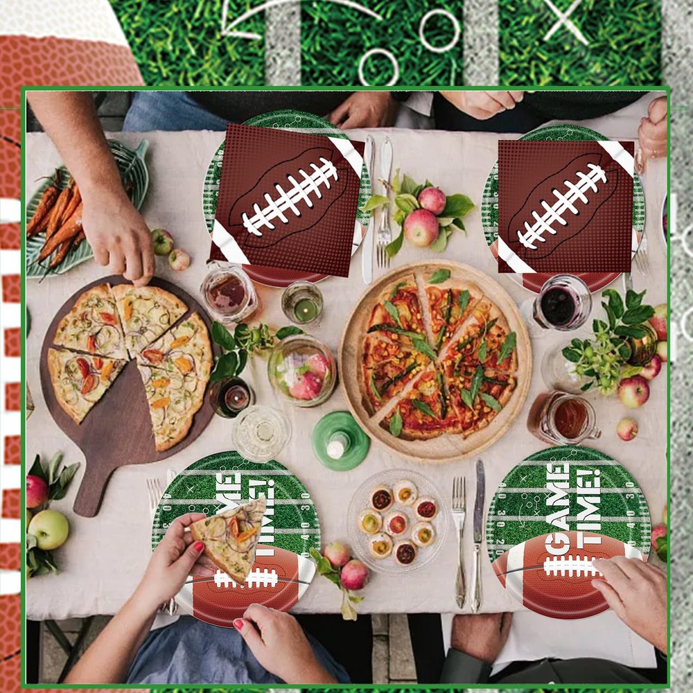 Complete Set: Includes 50 dinner plates, 50 dessert plates, and 50 napkins for a football-themed party. Party Theme: Perfect for football birthdays, gameday celebrations, and tailgating events. Disposable Dinnerware: Plates and napkins are made of high-quality paper for easy cleanup. Serves 50 Guests: Ample supplies for a large gathering or party. Decorative Design: Plates and napkins feature a football-inspired pattern for a festive atmosphere.