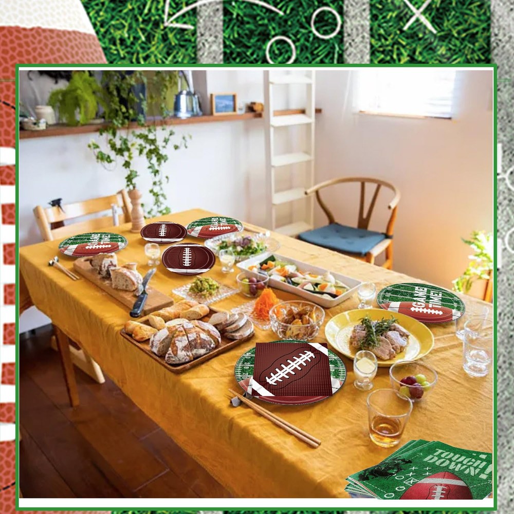This football party set is a total game-changer! It has everything you need for a fun, themed celebration—plates, dessert plates, and napkins for 50 guests. The designs are vibrant and festive, perfect for game days or birthday parties. Cleanup is a breeze since everything is disposable but still sturdy. Highly recommend for hassle-free entertaining!