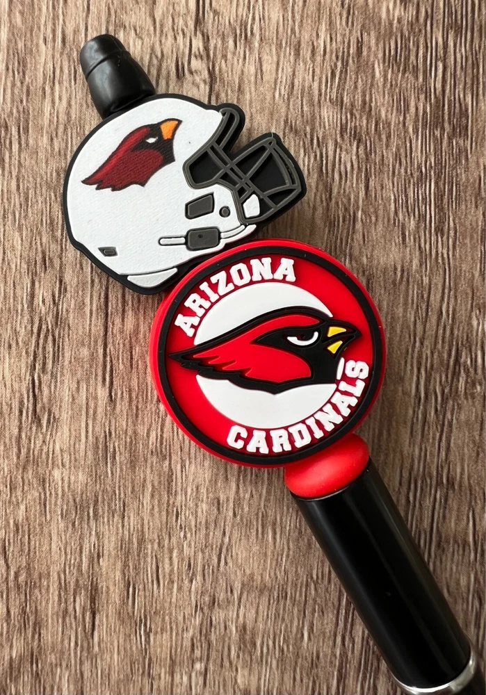 Show your love for football with your team pen. Featuring the colors of your favorite team logo, this pen is the perfect accessory for any game day. This pen is a must-have for any football fan. Whether you're taking notes in the office or signing autographs at a meet-and-greet, this pen is both practical and stylish. Each pen has a plastic pen barrel with retracting black ink, made with silicone focal beads. Add it to your collection of fan apparel and souvenirs, and show your support for your team all season long. Get your hands on this one-of-a-kind football pen today! Price includes one pen. All Pens come with a free black ink refill. *Not suitable for small children.