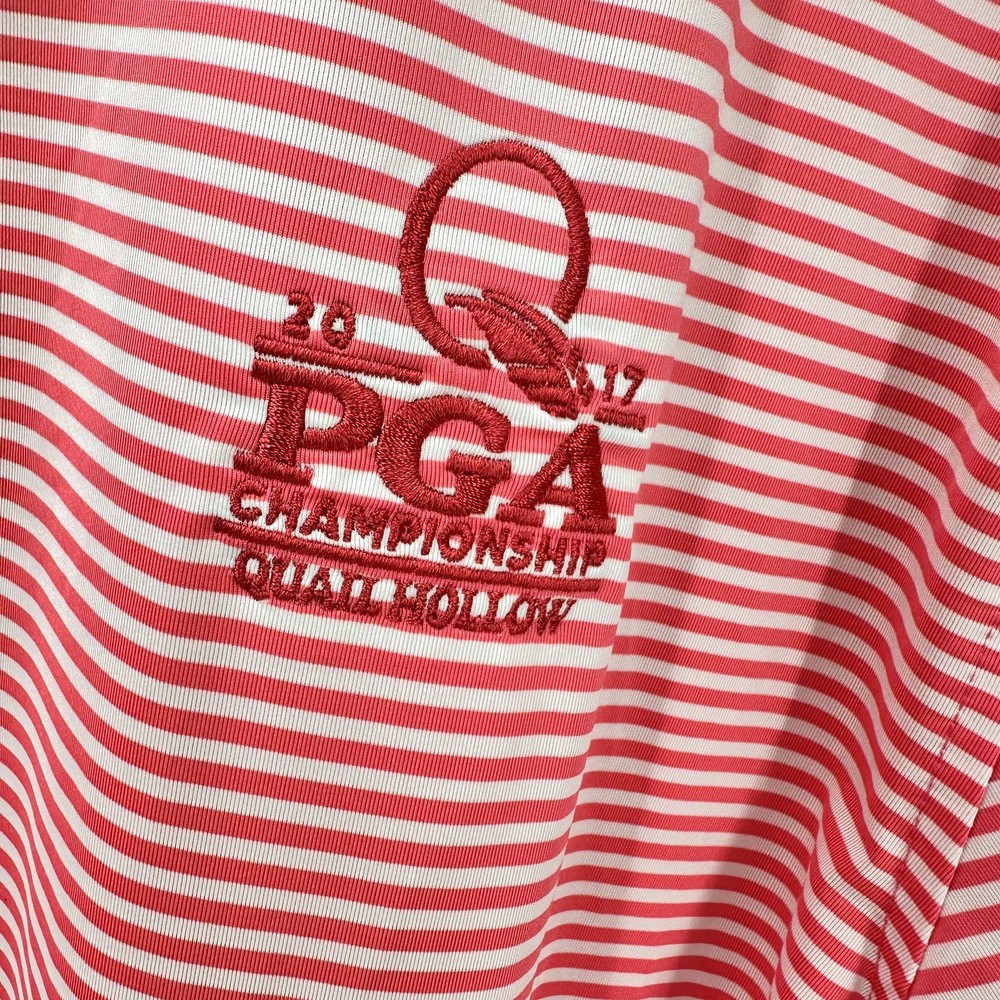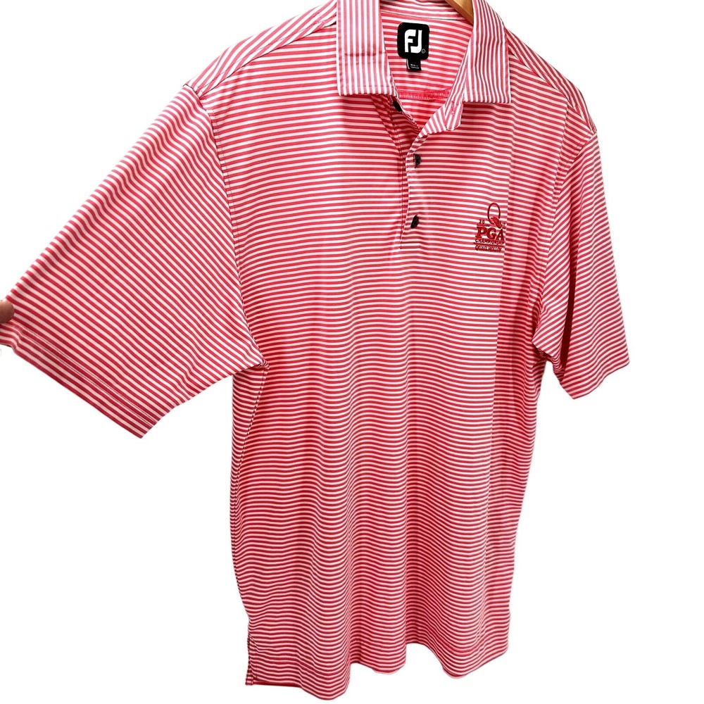 Footjoy Polo Shirt Mens Large 2017 PGA Championship Quail Hollow Pink White Stripes Very good condition, see all pictures for views. Pit to pit: 22" Shoulder to hem: 32" Ships out same day or next open postal day. Thank you for your purchase, we appreciate you!