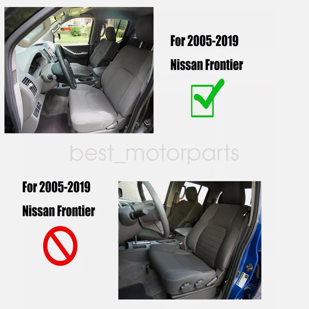 For 05-19 Nissan Frontier SV Driver Passenger Bottom Top Cloth Seat Cover Gray Driver & Passenger Side Bottom Top Back Cloth Seat Cover Steel Gray For 05-19 Nissan Frontier SV XE Description: Driver & Passenger Side Bottom Top Seat Cover Cloth For 2005-2019 Nissan Frontier Steel Gray This is a replacement of your original seat cushions cover Fits heated & power seats as well. This seat cover is available in two colors: Dark Gray and Steel Gray . If you are unsure about the color of the original seat cover, please contact us before placing an order, Features: Soft,Easy To Clean Comfortable, Practical,Durable And Breathable Provide A Comfortable Ride, Ease Driving Fatigue Reduce Seat Wear, Increase The Beauty Of Automotive Interiors Fitment: 2005-2019 Nissan Frontier 2005-2019 Nissan Frontier - S, SV, XE, LE, SE, Single Cab 2005-2019 Nissan Frontier - S, SV, XE, LE, SE, Extended Cab 2005-2019 Nissan Frontier - S, SV, XE, LE, SE, Crew Cab Fits Heated and Non-heated Seats. (Heated and Powered seats will not be affected with the change to a new cover because the wiring for the heating elements are connected to the cushion not the actual seat.) Tools Required: Snips, Flat Head Screw Driver, Phillips Screw Driver, Socket, Wrench & Drill. More Information: Actual Replacement Cover, Not A Slip On or Pullover, You will Remove The Old Cover & Then Install the New Cover. About Installation: Installation Takes About 20-30 Minutes Installation Instructions: Average Installation Time: Takes About 20-30 Minutes Self-Install Tip: Self Install Requires Appropriate Tools (See Below). Self-Install Tools: Flat Head Screw , Phillips Screw , Socket, Wrench & Drill Note: Make sure this item fits your car before purchasing. Toensure compatibility please match the part number or send us your VIN. Communication is the best way to solve the problem. If you have any problems after purchasing, please contact us in time. Due to the light and screen setting difference, the item's color may be slightly different from the pictures. Package included: 2x Bottom & Top Seat Cover ,Foam pad and frame are not included Notice: Please don't open cases or return requests without contacting me. If you have any questions about quality, shipping or other problems, please contact me first via eBay message. I will give you a satisfy solution. General Policies: Payment: Shipping policy: Returns: About us: General Policies: Dear customer,if you have any questions,you can contact us,we will provide the best service for you. Payment: Please purchase and pay for the item through the eBay,only accpected the paypal payment. Shipping policy: The item will be shipped within 24 hours on payment received except the holidays.(except weekends & official holidays). You can log on to eBay to check your logistics tracking number. Please confirm address before purchase, and cannot change address once purchased. If you need to receive the item quickly, please contact us, you can pay the postage to choose other logistics. Returns: Please contact us first when return, exchange and refund is required. Any direct return of purchased items will not be processed. Item must be returned in new condition, as received with all accompanied accessories and literature, including the factory carton. Shipping, handling is not refundable unless item is returned because of defect. About us: Our goal is complete customer satisfaction. We will be very honored to provide you with quality service. If there is an issue with shipping or the item you purchased please contact us via ebay message or call us before opening a case or leaving feedback.We will try our best to resolve any kind of issue. On Jan 25, 2025 at 07:07:04 PST, seller added the following information: