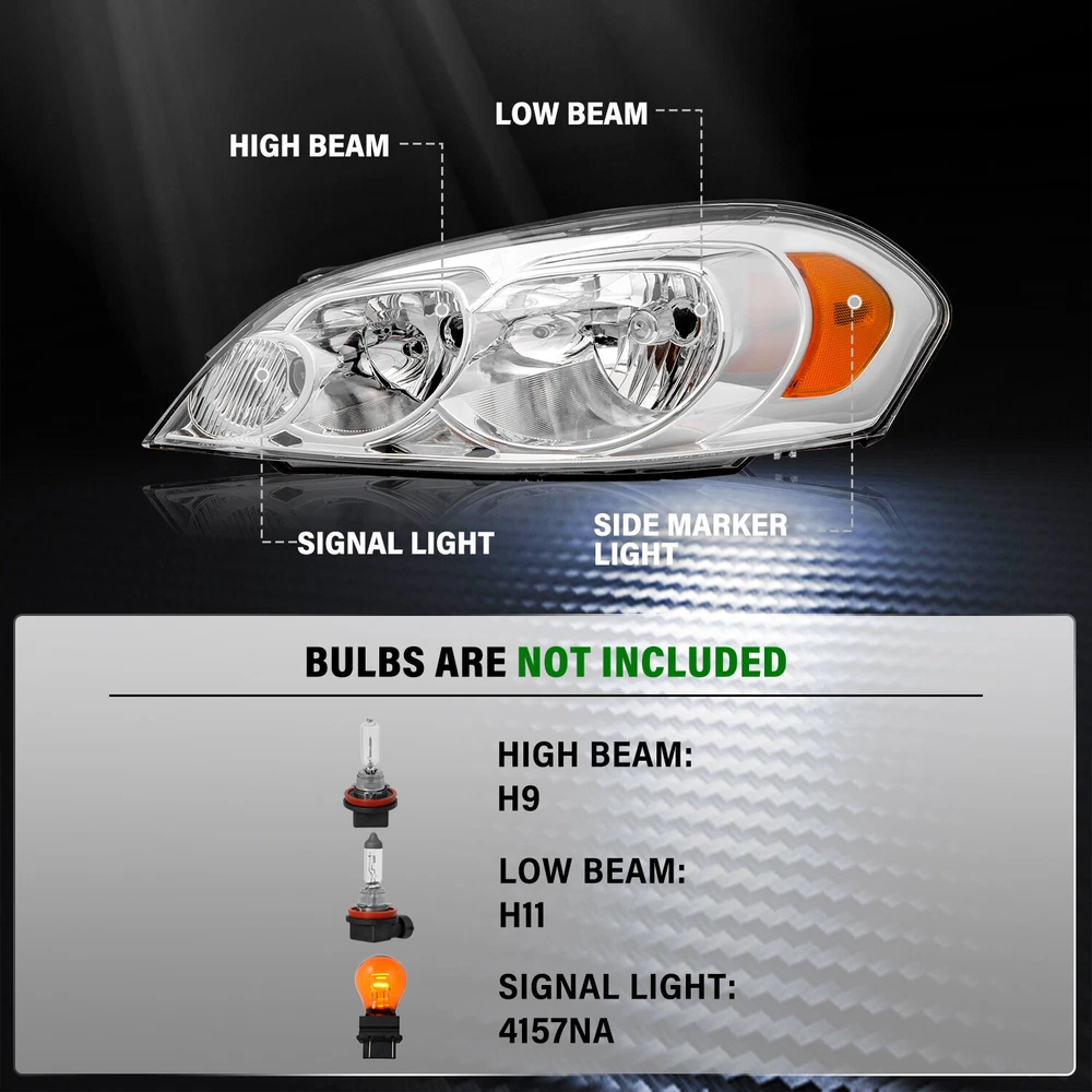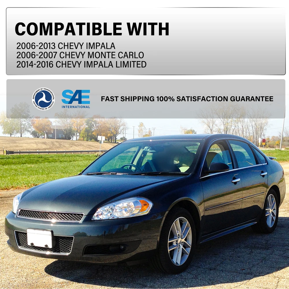 Store Categories Store Categories Other Product Description Product Features 1. The item is 100% brand new in original box. 2. DOT (Department of Transportation) & SAE (Society of Automotive Engineers) Approved 4. Increase your visibility during heavy rain, snow, dense fog and night time driving. 5. A new headlights upgrade the face of your vehicle with clear style and broad range. 6. Direct Bolt On Replacement For Your Original Headlights. No Wiring or Any Other Modification Needed. Compatible with: for 2006-2013 Chevrolet Impala for 2014-2016 Chevrolet Impala Limited for 2006-2007 Montee Carlo 2 Door Coupe/4 Door Sedan Payment Policy Shipping Policy Returns Policy About us Payment Policy We accept PayPal and all forms of credit card. Please submit your payment within 7days after your purchase. Otherwise, eBay will automatically open an Unpaid Item Dispute on our behalf if the item(s) are not paid within 7days. We DO NOT SHIP TO PO BOXES, And Customer Needs To Provide a Physical Address. Shipping Policy All Orders Will Ship Within Two Business Days.Except PR,HI,AK,GU and PO Box addresses. No local pick up All Packages Will Be Inspect Before Shipping, We Will Provide All Packing Material Needed For Your Package For Shipping Such As Boxes, Cushioning And Tape To Improve Shipping Quality. Very Important: Double check shipping address. We are not responsible for incorrect or undeliverable addresses. Returns Policy 30 Days returns satisfaction guarantee.90 Days warranty. All of Our Items Are 100% Brand New, We Do Not Sell Anything Other Than That. If The Item Shows Up Defective or Broken, Please Contact Us Within 3 Business Days By Using "Ask A Question" Link Located At The Bottom of Our Listing. Your Questions/Concerns Will Be Responded Within 24 Hours Monday To Friday. Buyers May Contact us On The Weekends or Pubic Holidays And We Will Respond On The Next Working Day. We Will Offer Replacements, Exchange or Full Refund. 100% Satisfaction Guaranteed. We Will File Damage Or Lost Claim For Our Buyers And Guaranteed Buyers Will Receive Products In A Timely Manner. About us Welcome to AU's eBay Store. We specialize in aftermarket automotive car parts and is the #1 industry distributor for affordable and quality products. We have our warehouse in CA.Item will be shipped out within 48 hours after payment cleared via UPS or Fedex. All emails will be answered within 1 business day during our business hours, except on weekends and major holidays. Before leaving us negative review, please contact our C ustomer Support Team first. We will do our best to offer satisfactory service to the customers. Copyright © 2023 Dianxiaomi