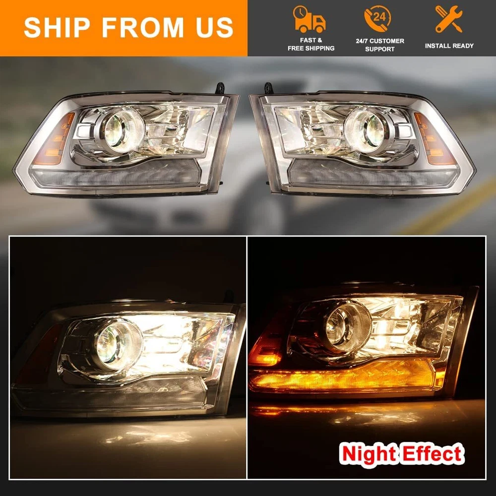 For 09-18 Dodge Ram 1500 2500 3500 Pair Headlights Chrome LED DRL Projector Lamp Features Compatible with 2009-2018 Dodge Ram 1500 / 2500 / 3500. Direct bolt-on OE fitment or replacement for the stock Unit. Comes in a Pair with the Left Driver and Right Passenger sides. Enhance visibility - Multifunction lighting modes design : LED daytime running light / LED turn signal light / high beam / low beam / LED position light with amber reflector. Increase safety during nighttime, heavy rain, snow, or dense fog. Durable OEM grade quality housing and triple layer protection lens; weather-proof, shock-proof. Plug & Play easy installation, no need for rewiring or modification on the original circuit, compliant with SAE and DOT FMVSS108 regulations. 100% Satisfaction Guaranteed, 30 days return if damage when an opened box or defective itself, 1 year warranty. Specification High Beam Light: 9005 12V 60W Low Beam Light: H7 12V 55W Turn Signal Light: LED Daytime Running Light: LED Side Marker Light: LED Wiring Harness: Not included Color Finish: Chrome housing / Clear lens / Amber turn signal Replace Original (OE) Part #: 68093217AD, 68093216AD, 68093221AD, 68093220AD Partslink: CH2502245, CH2503245, CH2502244, CH2503244 Fitment For2009-2018 Dodge Ram 1500 2500 3500 Fits for stock Projector headligths, models with Quad or Dual headlights Package Included 1 pair of Headlights(left and right side) 2x 9005 bulbs 2x H7 bulbs Payment Delivery details Terms of sales About us Contact us Payment 🤟 We accept PayPal (Recommended), credit card, VISA, Google Pay & Discover etc. 🤟 Please submit your payment within 7 days after your purchase. 🤟 If not, eBay will automatically open an Unpaid Item Dispute on our behalf if the item(s) are not paid within 7 days. Delivery details 🤟 Please double check your delivery address and contact information. 🤟 All items will be shipped within 1 business days after payment received. 🤟 Tracking numbers will be easily accessible ASAP they are created and processed. Terms of sales 🤟 Free 60 days Return, we will cover the return post fee. 🤟 If a defective product was received, please do not hesitate to message us via eBay message. 🤟 We will response in 24 hours in business to resolve the problem 🤟 We stand behind our products. Items can be returned for exchange or full refund within 60 days from the date you receive. About us 🤟 Winjet has a huge warehouse and office located in the United States. 🤟 All US domestic 48 states customers are able to benefit from the FREE SHIPPING services. 🤟 Our experienced, professional customer service representatives offers prompt and courteous service. 🤟 Best quality products, outstanding services and professional experience keep our customers. Contact us 🤟 Please feel free to contact us if you have any problems. 🤟 Emails will be replied within 24 hours in working days. 🤟 After hours emails will be replied on the next business day. Brand WINJET Type Headlight Assembly Features DOT-Certified, SAE-Certified, Sealed Assembly OE/OEM Part Number L:68324941AD,68324933AB,68093217AB,, R:68324940AD,68324940AD,68324932AD Housing Color Chrome (Crystal) Manufacturer Part Number WJ1020-0676B-GA-L-01 Light Color Warm White Lens Color Clear Lighting Technology LED Bulb Shape Code H7, 9005 Placement on Vehicle Front, Left, Right Manufacturer Warranty 1 Year Assembly Type Sealed Ballast Included No Certifications DOT, SAE Sold as a pair Driver and passenger side Shipping Fee Free shipping within 48 states Fitment Type Direct Replacement Mounting Hardware Included No Items Included Bulbs Finish Smooth Country/Region of Manufacture United States Model WJ1020-0676B-GA-L-01 Voltage 12V High Beam 9005 12V 60W Halogen Bulbs Included Low Beam H7 12V 55W Halogen Bulbs Included DRL/Turn Signal LED Included