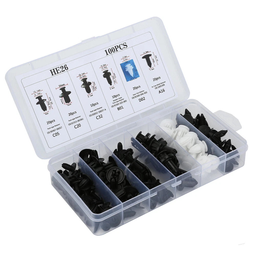 100Pcs Clip Trim Car Push Pin Rivet Bumper Door Panel Retainer Fastener Kit Description: Features: Various fasteners to meet the needs of different parts of the car. Used widely for car fender, bumper, door or other car surface. High quality plastic material, durable and long service life. Note: All vehicles have a range of different clips used on them. Different models have different sizes and there are no universal clips. Please check as much as possible before buying. Package including 100pcs Clips + 1 Plastic Box Clip of C05 Screw Type Clip Retainer Rivet Condition: Brand New Material: Black Nylon Size Approx: Head Diameter: 15mm Stem Length: 12mm Fits Into 6mm Hole For GM Replace 20426301 For Mazda Replace 9926-50-625 For Toyota Replace 90467-06017 For Toyota Replace 90467-06017-20 For Toyota Replace 90467-06017-41 For Auveco A14260 Clip of C20 Fender Liner Clip Splash Shield Blind Rivet Fits For Mazda Replace FB01-56-964 Fits For Honda Replace 90675-SB3-003 Fits For Nissan Replace 63876-95596 Fits For B16 B18 B18C B20 H22A EK9 EG6 Fits For Accord Civic Prelude CR-V Del Sol CRX Fits For INTEGRA GSR S2000 AP1 MUGEN Fits For TYPE R Si Condition: Brand New Material: Black Nylon Size Approx: Head Diameter: 20.6mm (0.81") Stem Length: 9.5mm (0.37") Fits Into 8mm (0.32") Hole For Auveco A16000 Clip of C32 Push-Type Retainer Black Nylon Head Diameter: 20mm Stem Length: 13mm Fits Into 8mm Hole Fits For Mazda 6 2002-2006 Fits For Mazda 323 1998-2003 Fits For Ford Aspire Fits For Mazda Replace B092-51-833 Fits For Ford Replace MB-455-56143 Fits For Kia Replace MB455-56-143 Fits For Nissan Replace 09409-09302 Fits For Hyundai Replace 86590-28000 For Auveco A17632 Clip of B01 Front & Rear Bumper Retainer Push Type Clip Condition: Brand New Material: Black Nylon Head Diameter: 20mm Stem Length: 18mm Fits Hole Size: 10mm For Honda Replace 91503-SZ5-003 (1996-On) For Acura Replace 91503-SZ5-003 For Auveco A20564 For PAS9282, PAS938 Clip of D02 Interior Trim Board Retainer Clip White Nylon Top Head Diameter: 13mm Middle Head Diameter: 16mm Bottom Head Diameter: 18mm Stem Length: 15mm Stem Diameter: 8.5mm x 8.5mm Overall Length: 20mm Fits For GM Replaces 94858299 Fits For Geo Prizm 1998-On Fits For Toyota Replaces 90467-10161 Fits For Sienna, Solara & Tercel 1990-On Fits For Previa 2007-On, Corolla 2003-On Fits For Lexus LS460, LS460L 1990-On For Auveco A18876 Clip of A16 Radiator Yoke, Fender & Bumper Shield Retainer Christmas Tree Type Clip Black Nylon Head Diameter: 17.8mm Stem Length: 20mm Stem Diameter: 7.6mm For GM Replaces 1595864, 1605396 For Ford Replaces 388577S For Ford Replaces W705589-S300 For Auveco A11146, A15414 Shipping: All items will be checked before packing. All items are new and of high quality. 1. Can you tell me when my order will be shipped? Actually we will ship the item within 1 business day after receiving orders, excluding weekends and public holidays. But USPS need to take longer time to update tracking info and arrange delivery during the challenging time for now. If your order was not shipped more than 3 business days, please contact us with your order number to get quick support. 2. My item has not arrived, what's taking so long? Sometimes items take longer than expected, especially if it's going far or to rural area. Check with your post office to see if your item has been held up. Sometimes USPS will not update a tracking number until it has arrived at its destination. If your item still has not arrived after a few days, let us know so we can double check for you and help solve it asap. Payment: 1. Instant PayPal payment is the preferred method of payment. We also accept payment via PayPal, DebitCard, Visa, MasterCard, Discover. 2. Items will be shipped to your eBay address. Please make sure it is correct. 3. If you want to ship to other address, please change your PayPal shipping address before you make payment. 4. Payment must be received 4 days after auction ended. Returns: 1. Customer satisfaction is our top goal. We believe our items are so outstanding. All products are quality checked. They are new and in good condition when shipped to our customers. We are convinced you will be happy with your Purchase. 2. We offer free return & money back guarantee. If you are not satisfied with your purchase for any reasons, you can return the item for refund or replacement/exchange. All returns must include the original packaging. 3. Please contact us first if you have any problems/questions/concerns. We will be happy to resolve any issues you may have in a cordial and friendly manner. Any items damaged because of incorrect installation will not be refunded. Please contact us for return or troubleshooting help prior to returning any products. 4. We appreciate your Postive Feedback, and will do the same in return. DO NOT leave negative feedback without first communication with us. Please allow max 2 business days for us to response. About Feedback: 1. When you satisfied with our product and services please leave us positive feedback. 2. If you have ANY questions with shipping, product or service, please Contact Us first before leaving feedback/write a review or filing a return case. We will solve the problem! If you have ANY questions with shipping, product or service, please Contact Us first before leaving feedback/write a review or filing a return case. We will solve the problem! We always put our customers first and your satisfaction is guaranteed. We offer free returns with any orders within 30 days from the date of delivery. No restocking fees, no administrative fees, no return shipping fee, and no hassle! We will email you when a prepaid return label is ready to download from your ebay account. You just have to print it out and drop the package off at a USPS facility. When we get it back, you will be notified and credited for the full price of the items/products that are returned. Since the shipping fees go directly to the delivery service, we are not able to refund 
