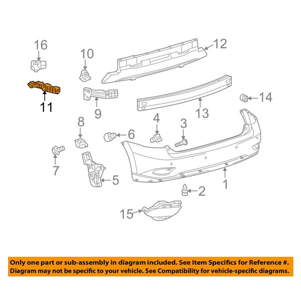 BRAND NEW BUMPER COVER RETAINER MOUNTING BRACE SUPPORT BRACKET! High Quality - Certified - Replacement Aftermarket - Made Of Durable Components This item is a Non-Original part Compatible with the following years and models: 2010 2011 2012 2013 2014 2015 Lexus RX350 2010 2011 2012 2013 2014 2015 Lexus RX450h Note: Base, F Sport, Sportdesign - 3.5 Liter V6 Engine - Sport Utility 4-Door - Made of Plastic Finish/Material: Placement: Rear Right Passenger Side