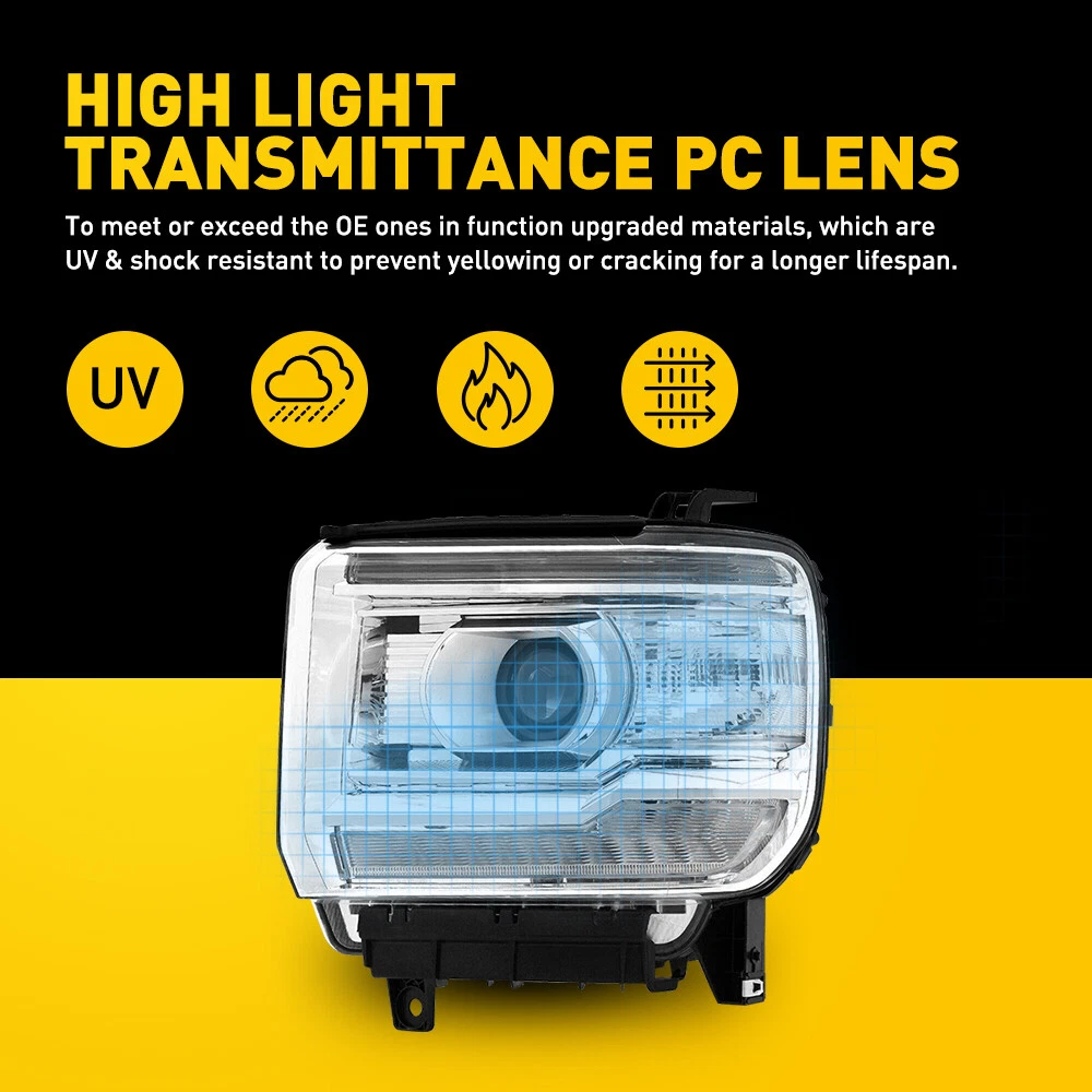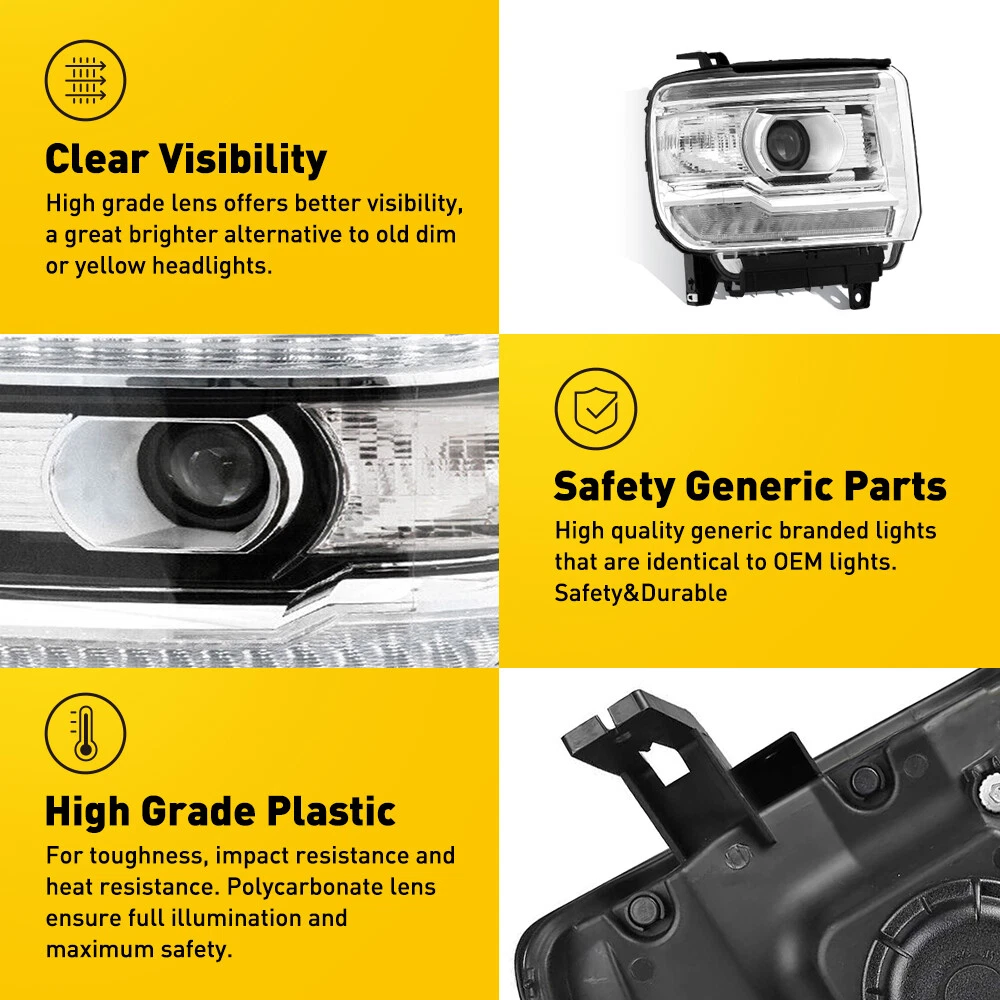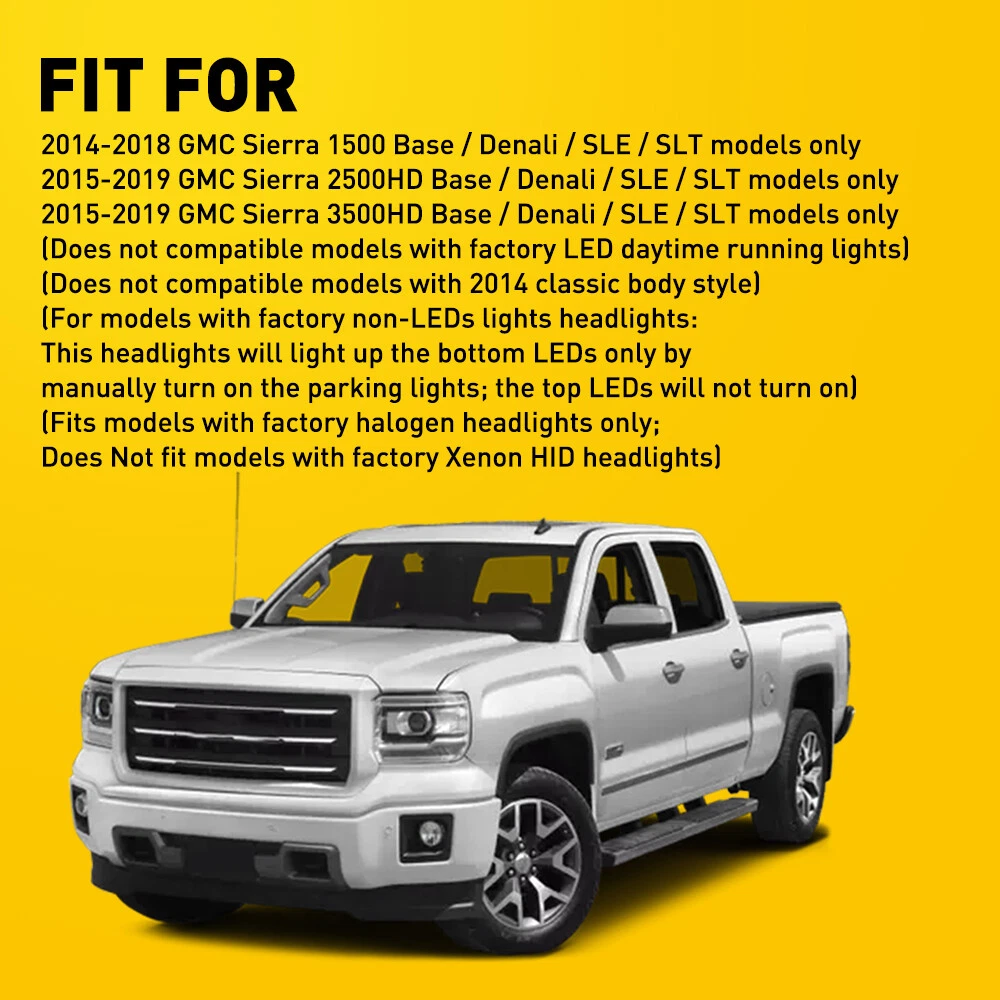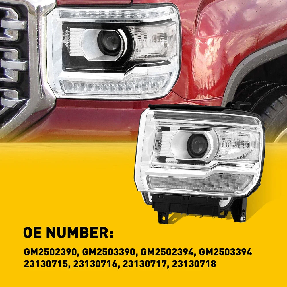 Fit for: 2014-2018 GMC Sierra 1500 Base / Denali / SLE / SLT models only 2015-2019 GMC Sierra 2500HD Base / Denali / SLE / SLT models only 2015-2019 GMC Sierra 3500HD Base / Denali / SLE / SLT models only (Does not compatible models without factory LED daytime running lights) (Does not compatible models with 2014 classic body style) (For models with factory non-LEDs lights headlights: This headlights will light up the bottom LEDs only by manually turn on the parking lights; the top LEDs will not turn on) (Fits models with factory halogen headlights only; Does Not fit models with factory Xenon HID headlights) Specifications: OE number: For 14-18 GMC Chrome Sierra Housing Clear Corner Projector Headlight Head Lamps Fit for: 2014-2018 GMC Sierra 1500 Base / Denali / SLE / SLT models only 2015-2019 GMC Sierra 2500HD Base / Denali / SLE / SLT models only 2015-2019 GMC Sierra 3500HD Base / Denali / SLE / SLT models only (Does not compatible models without factory LED daytime running lights) (Does not compatible models with 2014 classic body style) (For models with factory non-LEDs lights headlights: This headlights will light up the bottom LEDs only by manually turn on the parking lights; the top LEDs will not turn on) (Fits models with factory halogen headlights only; Does Not fit models with factory Xenon HID headlights) Specifications: OE number: GM2502390, GM2503390, GM2502394, GM2503394 23130715, 23130716, 23130717, 23130718 Material: ABS+PC (ABS Plastic Housing/Polycarbonate lens) Appearance color: 1.Housing Color: Black 2.Lens Color:Clear 3.Reflector Color:Clear Note: Projector √(Include) DRL √ (Include) Bulbs × (Not include) Features: *Easy to install: Direct replacement, drilling and cutting are not required. *Superior quality: Made of ABS and PC materials with toughness and heat resistance functions to ensure its long service life and durability. *Angle adjustment: Equipped with a headlamp Angle adjustment knob, you can adjust the best Angle of view through the knob. *Suggestion: 1.Please confirm the OE number before purchasing!!! 2.Professional installation is required!!! Packaging include: Headlights*2(Left+Right) Item Specifics Installation Guide Not Included; Professional installation is highly recommended Other Part Number 23130715, 23130716, 23130717, 23130718 Manufacturer Warranty Yes Brand Type Aftermarket Branded Bulbs Included No Fitment Type Direct Replacement Quantity 1 x Pair of Head Lights (Driver Side LH + Passenger Side RH) Beam Type Low Beam, High Beam Placement on Vehicle Front, Left, Right Assembly Type Composite Brand AUXITO Specifics For Models With Factory Halogen Headlights Only Type Bulb, Headlight Assembly, Lens, Reflector Interchange Part Number 23130715 23130716 23130717 23130718 84144049 14 15 16 17 18 19 Headlight Style Factory, Projector Compatible/Replacement For 2014-2018 GMC Sierra 1500 / 2015-2019 GMC Sierra 2500HD 3500HD Housing Color Chrome (Crystal) Reflector Color Clear Features Factory Headlights, OE-Certified, SAE-Certified, Sealed Assembly Lens Color Clear Notes Does Not Include Bulbs & Wiring - Reuse Your Own Factory Bulbs Lighting Technology Halogen, LED, DRL Number of Bulbs 0 Bulb Shape Code C5W Light Color / Items Included / OE/OEM Part Number GM2502390 GM2503390 GM2502394 GM2503394 23130715 23130716 23130717 23130718 Mounting Style Screws Payment 1. We can only accept payment from PayPal. 2. Please keep the consistency of Paypal address and ebay address. Shipping 1. All items will be shipped in 12 hours after receiving your payment . 2. We ship this item to US only via USPS first class mail. It usually takes 3-5 working days to deliver. Returns 1. We offer 30 days return policy. 2. Please contact us within 30 days from the date you receive your package if you have any questions with the products . 3. Refund will be sent after we got your returned package. 4. All returned items should be in the original packaging with tracking number. Contact Us We work from Monday - Saturday 9:00AM - 6:00PM, but we will reply once we get your message. There will be delay on response if you send message or E-Mail on Sunday. DESCRIPTION PAYMENT SHIPPING RETURN POLICY CONTACT US Shop Category Store Home Other Hot Item Door Latch Cables LH+RH Front For 2007-2013 Chevy Silverado 1500 2500 HD 3500 HD USD 17.09 For 2002-2008 Dodge Chrysler Stereo Car Radio Wiring Harness Adapter USD 11.59 Set of Delco 4 AC Oxygen O2 for Sensor 2003-2005 Cadillac Chevrolet GMC V8 5.3L USD 50.99 Universal Car Windshield Wiper Squirter Washer Nozzle Spray Jet Kit Fluid Hose T USD 9.99 Rear Left or Right Outside Door Handle for 2010-2016 Toyota 4Runner Lexus GX460 USD 14.24 New List Item 120W Cordless Handheld Cleaner Vacuum Portable Mini Small Car Auto Wireless Home USD 56.99 Antenna Base Cover Fit Trim Jeep Wrangler JK JL JLU JT Rubicon Sahara 2007-2022 USD 12.99 8Pcs Glossy Black Pillar Post Door Window Trim For 2014-2020 Nissan Rogue EPU USD 14.99 For 2015-2023 Ford F150 running board REAR cap end RIGHT Passenger side step K USD 15.99 For Nissan Rogue Sport Bumper 2017-2019 Bracket Front Pair Retainer Support USD 11.99 Excellent Delivery For 14-18 GMC Chrome Sierra Housing Clear Corner Projector Headlight Head Lamps Fit for: 2014-2018 GMC Sierra 1500 Base / Denali / SLE / SLT models only 2015-2019 GMC Sierra 2500HD Base / Denali / SLE / SLT models only 2015-2019 GMC Sierra 3500HD Base / Denali / SLE / SLT models only (Does not compatible models without factory LED daytime running lights) (Does not compatible models with 2014 classic body style) (For models with factory non-LEDs lights headlights: This headlights will light up the bottom LEDs only by manually turn on the parking lights; the top LEDs will not turn on) (Fits models with factory halogen headlights only; Does Not fit models with factory Xenon HID headlights) Specifications: OE number: GM2502390, GM2503390, GM2502394, GM2503394 23130715, 23130716, 23130717, 23130718 Material: ABS+PC (ABS Plastic Housing/Polycarbo