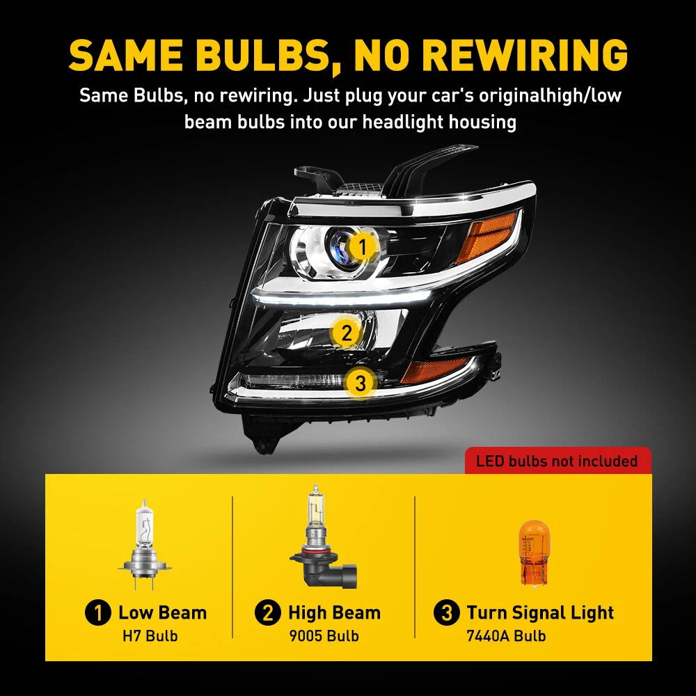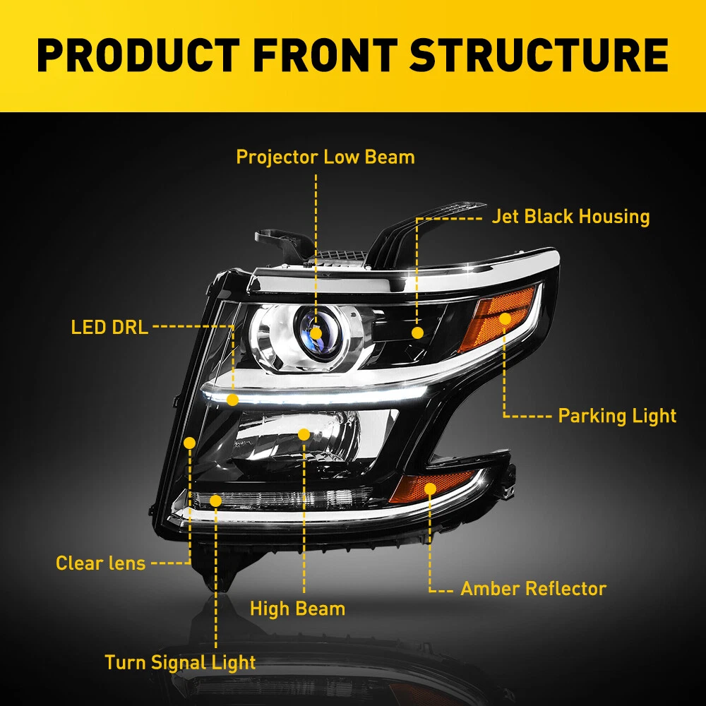 Fit for: 2015-2020 Chevy Tahoe 2015-2020 Chevy Suburban 2016-2019 Chevy Suburban 3500HD (Fit Models With Halogen Headlights Only) Specifications: OE number: 23490005,GM2502405 Material: ABS+PC (ABS Plastic Housing/Polycarbonate lens) Appearance color: 1.Housing Color: Black 2.Lens Color:Clear 3.Reflector Color:Amber Note: Projector √(Include) DRL √ (Include) Bulb × (Not include) Features: *Easy to install: Direct replacement, drilling and cutting are not required. *Superior quality: For 15-20 Chevy Tahoe Suburban Halogen Headlight Black Housing Amber Reflector Fit for: 2015-2020 Chevy Tahoe 2015-2020 Chevy Suburban 2016-2019 Chevy Suburban 3500HD (Fit Models With Halogen Headlights Only) Specifications: OE number: 23490005,GM2502405 Material: ABS+PC (ABS Plastic Housing/Polycarbonate lens) Appearance color: 1.Housing Color: Black 2.Lens Color:Clear 3.Reflector Color:Amber Note: Projector √(Include) DRL √ (Include) Bulb × (Not include) Features: *Easy to install: Direct replacement, drilling and cutting are not required. *Superior quality: Made of ABS and PC materials with toughness and heat resistance functions to ensure its long service life and durability. *Angle adjustment: Equipped with a headlamp Angle adjustment knob, you can adjust the best Angle of view through the knob. *Suggestion: 1.Please confirm the OE number before purchasing!!! 2.Professional installation is required!!! Packaging include: Headlights*1(Left) Item Specifics Brand AUXITO Lighting Technology Halogen Type Headlight Assembly Features Reflector Housing, SAE-Certified, Sealed Assembly Housing Color Black Placement on Vehicle Front, Left Light Color Warm White Lens Color Clear Reflector Color Amber Manufacturer Part Number CVSB15.06.L Color Temperature 6000K Voltage 12 V Mounting Style Screws Vintage Part Yes Performance Part Yes Manufacturer Warranty 5 Years Universal Fitment No Finish Smooth Model For 2015-2020 Chevy Suburban Tahoe OE/OEM Part Number 23490005,GM2502405 Quantity 1 Headlight assembly (Left Side) Packaging include Driver Side Headlights Assembly Bulbs Included Not Included Bulb Shape Code Please Use Stock Bulbs Include Projector Projector are include! Include DRL DRL are include! Fitment Type Direct Replacement Assembly Type Composite Mounting Hardware Included No Certifications DOT, SAE Dust and Moisture Protection Yes Waterproof Yes Ballast Included No Applicable Regions US FAQ ♥ If you have a decoding problem or any other problems, please contact us first, we will help you with it. We will reply you within 24 hours in working days. I'm a new seller, thanks a lot for your trust and convince! I will serve you with all my heart. ♥ Q1: Will this bulb fit my vehicle? A: We can match almost any vehicle to one of our bulb sizes. eBay only lets us include some vehicle fitments per listing, but if your vehicle does not show up on the compatibility table at the top of our listings, welcome you to contact us for free consulation before purchasing a product. Q2: My item has not arrived, what's taking so long? A: Sometimes items take longer than expected, especially if it’s going far or to rural area. Check with your post office to see if your item has been held up. Sometimes Royal Mail will not update a tracking number until it has arrived at its destination. If your item still don't arrive after a few days, let us know so we can double check for you and help solve it asap. Q3: My bulbs won't fit, help! A: Special bulb holder may be required. See if you can take the holder from the stock bulb. If not, let us know. The bulb size may be wrong, double check the item you received with the item you ordered. Do you have an aftermarket lighting housing? These may not be perfectly fitted for aftermarket bulbs and will require some manual modifications. Q4: Neither side lighting up? Both sides flicker, hyper flash, or work inconsistantly. A:Check the light fuses, and then check the ballast plugs to insure correct installation. If this doesn't work, there may be a voltage problem with the vehicle. You probably just need a relay or capacitor. Even though some bulbs are builtin resistors, they may still need a decoder. Payment (1). We gladly accepts payment via PayPal, We will ship your item(s) within 24 hours. (2). Before payment, please keep the consistency of Paypal address and ebay address. (3). Quantity orders are welcome! Returns (1). We offer 60 days free return policy. Please contact us within 60 days from the date you receive your order if you have any issues with the product or want return. Refund will be send after we got your resend package. (2). All returned items should be in the original packaging , return tracking information should be provided . Contact us (1).Negative feedback will not help resolve any problems you have, please contact us via eBay messages before leaving negative feedback , our customer service will make best effort to help you with the issues. (2).We maintain high standards of excellenceand strive for 100% customer satisfaction! Feedback is very important to us. We request that you contact us immediately before you give us neutral or negative feedback, so that we can satisfactorily address your concerns. About us We're professional in car and motorcycle accessories, especially in LED bulbs. We have our own factory and R&D team. Our belief is to sell top quality items that fit your car and serve you with our heart. Anything please feel free to contact us! Our customer service is very responsibility. Come and follow us! DESCRIPTION PAYMENT SHIPPING RETURN POLICY CONTACT US Shop Category Store Home Other Hot Item 2PCS O2 Oxygen Sensor Up+Downstream For 08-14 Chevrolet Equinox/GMC Terrain 2.4L USD 29.99 AUXITO 7440 7443 7444 LED Backup Reverse Back Up Light Bulbs Super Bright White USD 12.59 AUXITO 9012 HIR2 LED Headlight Kit Bulb High/Low Beam White 80000LM Super Bright USD 44.99 2x H7 Super Bright LED Headlight Bulbs 60000LM Kit High Low Beam 6500K White USD 24.99 BLACK 