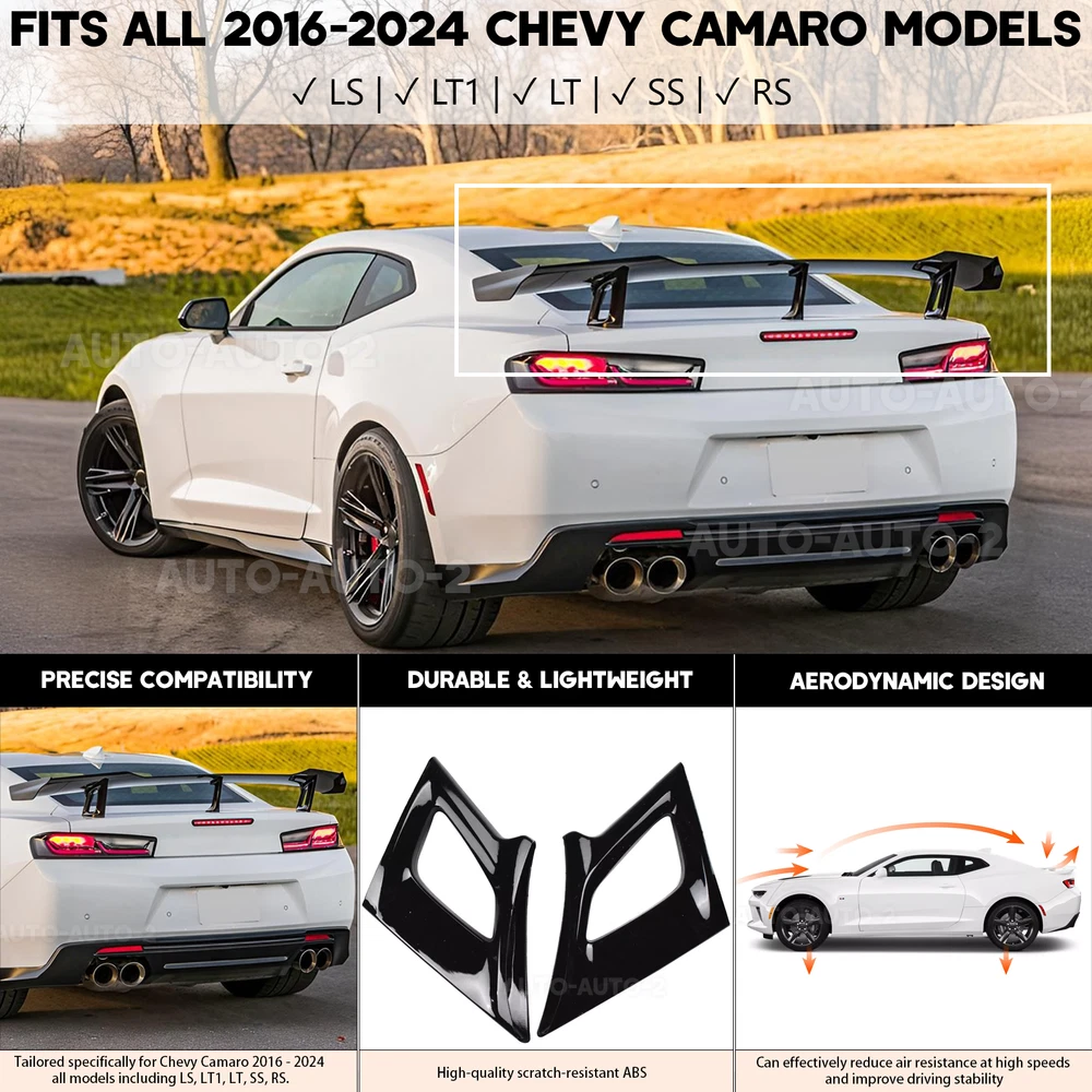 Home Payment Shipping About us Contact us Details Chevy Camaro 2016 - 2024 Rear Spoiler Features 【Compatible Vehicle Models】 Our rear spoiler is specifically tailored for Chevy Camaro 2016 - 2024 all models, including LS, LT1, LT, SS, and RS. Please ensure that your vehicle model is correct before placing an order. 【 Aerodynamic Excellence 】 Reduces 23% air resistance at 60+ mph for enhanced stability and fuel efficiency 【Durable & Lightweight】 Made of high - quality ABS material, this rear spoiler is durable, lightweight, and scratch - resistant. It provides your Camaro with a longer lifespan. 【Sporty Appearance】 The sleek black appearance endows your vehicle with a sporty and aggressive look. Its smooth design enhances the overall style of the vehicle, making it visually appealing and distinctive on the road. 【High Performance】 It can effectively reduce air resistance when driving at high speeds. This, in turn, improves driving stability and enhances the overall presence of the vehicle. Specifications Color: Glossy Black Material: ABS Compatible Models: Chevy Camaro 2016 - 2024 all models (LS, LT1, LT, SS, RS) Package includes 1× rear spoiler 1× accessories bag Note: Professional installation is highly recommended. If you need any help, please contact us. Shipping Policy Payment Method Returns Policy Shipping Policy All orders will be shipped within handling time ( Business Days ) after the payment is cleared. We use Standard / Expedited Shipping Service: all shipments will be with valid tracking number. If you didn't received your shipment within estimated shipping time , please contact us. We will check and offer a good solution to you . Our goal is customer satisfaction! Payment Method We accept multiple payment methods which ebay allowed . For faster service, please update your correct address before sending payment. We do not accept any transaction methods other than ebay. Returns Policy We offer 30 days exchange or return and money back policy If you feel unsatisfied with our product for any reason , please contact our professional customer team within 30 days ,you can choose exchange , return or refund , we will take care of your issue . If the product is defective or damage upon arrival, please contact us immediately don't open dispute , we will spare no effort to offer the best solution . As most of our products are aftermarket car parts, which DO NOT come with instructions.PROFESSIONAL INSTALLATION is highly recommended. Before install your item, please refer to internet or your local Auto parts store for some tips. Buyer assumes all risks for any improper installation and usage. NOTE : Any item that is approved for exchange or return, item will need to be in brand new condition, which means the item is never installed and needs to be kept in original packaging. Fees will be applied for missing parts or damages. We don't accept return if item got used , modification painting or damaged for improper installation. Whatever happens, please contact us. Our goal is 100% customer satisfaction. We will reply you within 24 hours on working days.