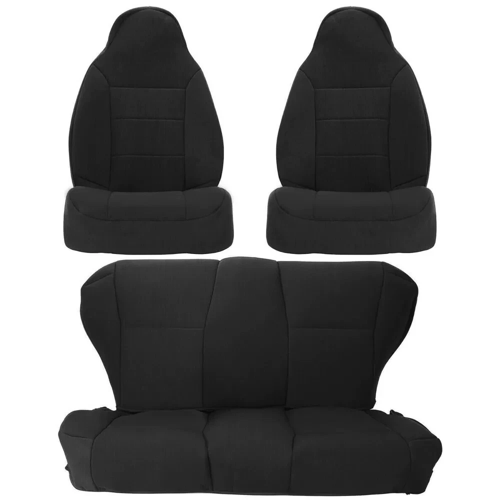 or 1984-2001 Jeep Cherokee XJ Neoprene Seat Covers Full Sets 1st & 2nd Specifiction: Condition:100% New Color: Black Material: Neoprene Warranty: 3 Years Placement on Vehicle: First Row, Second Row Easy at Home Installation Offer great breathability Have better materials and thickness, which provide soft touch and durable quality Neoprene protective layer wards off water and mildew. Protect your interior from the elements while blending in perfectly. Fits: For 1984-2001 Jeep Cherokee XJ Package: 1 set of seat covers