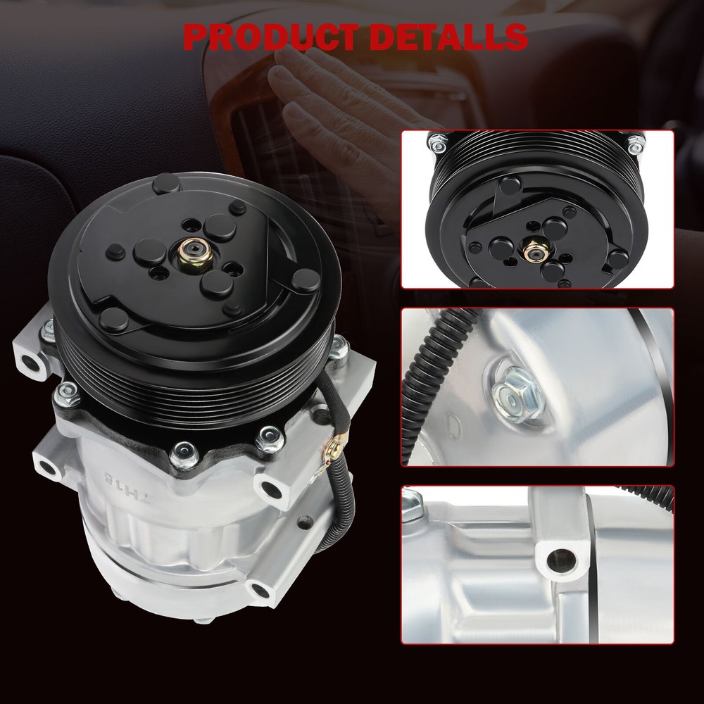 Material: Aluminum Alloy Compressor Drive Type: Belt Driven Pulley Belt Type: V-Belt Voltage: 12V Compressor type: SD7H15 Pulley Diameter(mm): 119 Universal Fitment: No Universal Fitmen: No Type: Compressor & Clutch Assembly Manufacturer Warranty: 1 Year Items Included: 1pcs of Air Conditioner Compressor w/ Clutch Interchange Part Number: CO 4702C Oil Type: PAG 46 Vintage Car Part: No Brand: ChoiceShare Custom Bundle: No Modified Item: No Superseded Part Number: 1006549, 1006579, 1017476, 1017507, 1017537, 1023684 gtin13: Does not apply Finish: Metallic Performance Part: Yes UPC: Does not apply Manufacturer Part Number: 12346412 Placement on Vehicle: Front Mounting Style: Screw-On Fitment Type: Direct Replacement OE/OEM Part Number: 1521003, 1521256, 1521889, 10303431, 10307501, 1006518 Pulley Groove Quantity: 6
