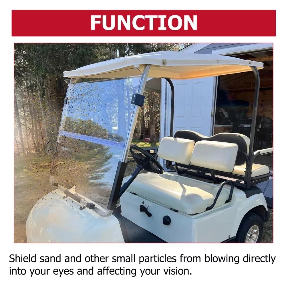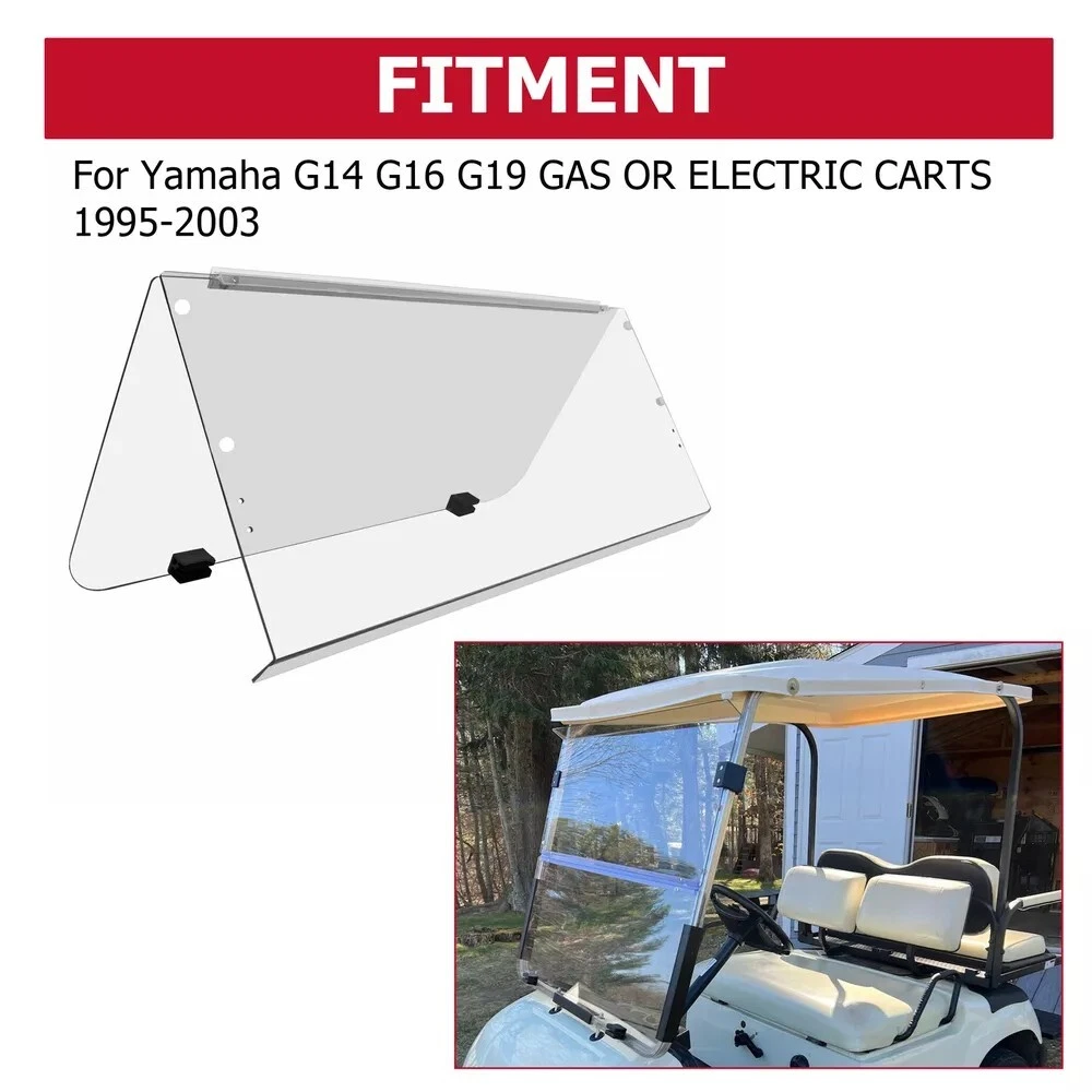 For 1995-2003 Yamaha G14 G16 G19 Golf Cart Clear Folding Windshield Windscreen Description It is super suitable for 1995-2003 G14, G16, G19. It provide better head protecting and you can ride more safety. Feature Folding golf cart windshield High Quality snug fit-No Drilling required! Shatter & crack-resistant, Durable for long time using and so practical. Made from Clear arylic Installation hardware included - easily attaches to your existing frame. Easy to use,to install and to operate at affordable prices Specification Condition: 100% Brand New Model: BNL-59-C Material:Polycarbonate Color: Clear Size: L 40-5/8 (in) * W 36-1/2 (in) Impact Resistant Folding Style Fits For 1995-2003 G14, G16, G19 GAS OR ELECTRIC CARTS Package Include 1 x Windshield Windscreen All Mounting hardware Included