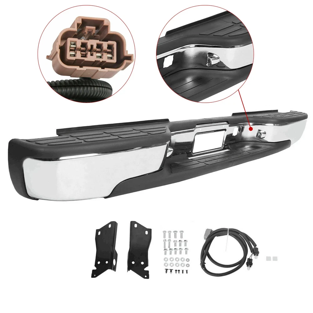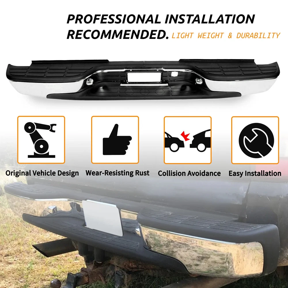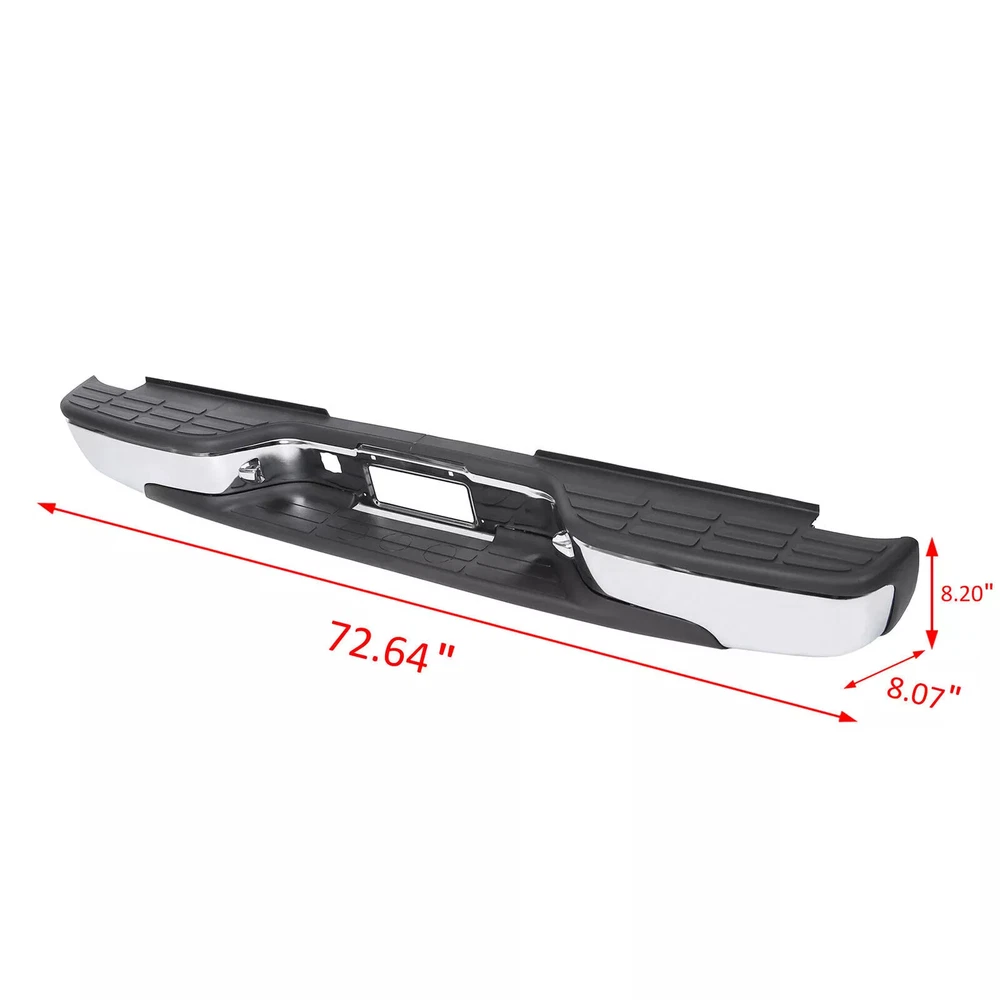 Specifications Part Name: Rear Step Bumper Condition : New, Aftermarket Material: Steel Color/Finish: Chrome Placement on Vehicle: Rear Attachment Type: Bolt-on Partslink Number: GM1103129 OEM Number: 12473000-PFM License plate provision: With license plate provision Parking aid sensor holes: Without parking aid sensor holes Package Included Rear Bumper with Black Pad Mounting Hardwares On Feb 11, 2025 at 13:23:38 PST, seller added the following information: