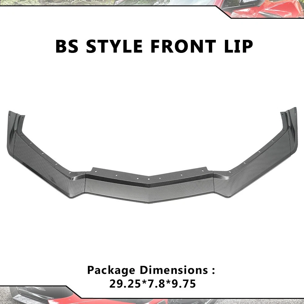 *Fitment: For Chevrolet Corvette C8 Stingray Z51 2020-2024 *Item Information: Material: ABS plastic Condition: 100% Brand new Color: Carbon look black Country of origin: China Features: Easy installation High quality ABS plastic material BS style Perfect fitment Give your car the a ggressive appearance Improve aerodynamic performance, provide better driving experience *Package Include: 1set × Front Bumper Lip Installation Instruction is Not Included. P rofessional Installation or Installation Video Reference is Recommended *Please Don't Hesitate to Contact Us: If you are concerned about purchasing the wrong product, please contact us before making payment to confirm if the item is suitable for your car You can search for relevant product installation videos online. If you need recommendations, please contact us before installation. If you have any questions about the purchased product, please send us a message first, and we will reply to you as soon as we see your message and provide you with the best service Before leaving any negative feedback, please contact us and explain the issue. We will reply to you as soon as possible and provide the best solution to the problem *If you are satisfied with our products and services, please feel free to provide valuable experience feedback and product reviews. Thanks for your support :) On Nov 30, 2024 at 01:08:57 PST, seller added the following information: