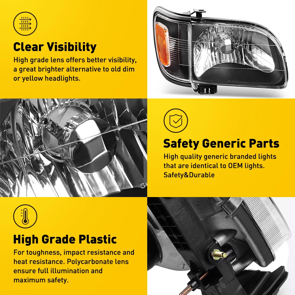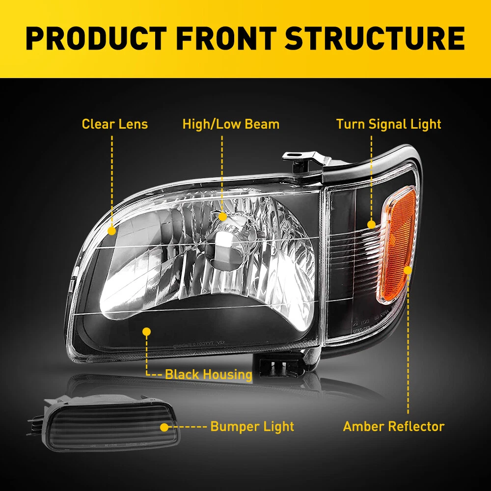 Fit for: 2001-2004 Toyota Tacoma Specifications: OE number: 8115004110, 881150-04110, 81110-04110 TO2502136, TO2503136 Material: ABS+PC (ABS Plastic Housing/Polycarbonate lens) Appearance color: CLEAR LENS、BLACK HOUSING Fitment Type:Direct Fitment Note: Halogen bulbs are not included. Features: *Easy to install: Direct replacement, drilling or cutting are not required. *Superior quality: ABS+PC materials with toughness and heat resistance functions. *Superior visibility: High grade lens offers better visibility, a great brighter alternative to old dim or yellow headlights. For 2001-2004 Toyota Tacoma Headlights Assembly + Bumper Lamps Pair Left Right Fit for: 2001-2004 Toyota Tacoma Specifications: OE number: 8115004110, 881150-04110, 81110-04110 TO2502136, TO2503136 Material: ABS+PC (ABS Plastic Housing/Polycarbonate lens) Appearance color: CLEAR LENS、BLACK HOUSING Fitment Type:Direct Fitment Note: Halogen bulbs are not included. Features: *Easy to install: Direct replacement, drilling or cutting are not required. *Superior quality: ABS+PC materials with toughness and heat resistance functions. *Superior visibility: High grade lens offers better visibility, a great brighter alternative to old dim or yellow headlights. *Light leveling adjuster: Aligned headlights ensure to shine on the road with maximum visibility and road safety. Note: 1.Please confirm the OE number before purchasing!!! 2.Professional installation is required!!! Packaging include: Headlights*2(left+right) Bumper Light (left+right) Item Specifics Brand AUXITO Lighting Technology Halogen Type Headlight Assembly Features Reflector Housing, SAE-Certified, Sealed Assembly Housing Color Black Placement on Vehicle Front Left,Right Light Color No Bulb Lens Color Clear Manufacturer Part Number Does Not Apply Color Temperature \ Voltage 12 V Mounting Style Screws Vintage Part Yes Performance Part Yes Manufacturer Warranty 5 Years Universal Fitment No Number of Bulbs 0 Finish Smooth Model For 2001-2004 Toyota Tacoma Interchange Part Number TO2502136, TO2503136 OE/OEM Part Number 8115004110, 881150-04110, 81110-04110 Quantity 2 Headlight assembly Packaging include Left & Right Side Headlights Assembly,Bumper Light Bulbs Included Not Included Bulb Shape Code Please Use Stock Bulbs Include Projector Not Included Include DRL Not Included Fitment Type Direct Replacement Assembly Type Composite Type Headlight Assembly Mounting Hardware Included No Certifications DOT, SAE Dust and Moisture Protection Yes Waterproof Yes Ballast Included No Applicable Regions US Items Included Headlight Assembly Bulb Shape Code Just like the original Wattage \ Payment Variety of payment methods are accepted, such as credit, debit, gift cards, Apply pay, Google Pay, Paypal and Paypal Credit. Shipping 1. All items will be shipped in 24 hours after receiving your payment . 2. We ship this item to US only via USPS first class mail. It usually takes 3-5 working days to deliver. Returns 1. We offer 60 days return policy. 2. Please contact us if you have any questions with the products . 3. Refund will be sent after we got your returned package. 4. All returned items should be in the original packaging with tracking number. Contact Us We work from Monday - Saturday 9:00AM - 6:00PM, but we will reply once we get your message. There will be delay on response if you send message or E-Mail on Sunday. DESCRIPTION PAYMENT SHIPPING RETURN POLICY CONTACT US Shop Category Store Home LED Headlight ◈ 9005 HB3 ◈ 9006 HB4 ◈ H7 LED Fog Light ◈ H8 H9 H11 LED Plate Light LED Reverse Light LED Brake Light Rear Bumper Light LED Tail Light Tail Light assemblies Car Parts & Accessories ◈ LED Third Brake Light ◈ Other Parts & Accessories Other New List Item Left & Right Side Mirror Glass w/Backing Plate Heated for 2009-2017 VW Tiguan I USD 25.99 Fit For 94-99 Chevy C/K 1500/2500/3500 Black Housing Headlights Amber Reflector USD 73.99 CSP H11 H8 H9 LED Headlight Fog Bulbs Kit Super Light White 6000K High Low Beam USD 22.29 Rear Left Inner Roof Ceiling Pull Handle Grab For 2007-2015 Highlander / Kluger USD 12.99 Car Window Door Pillar Posts Trim Cover Accessories Fit For Honda CRV 2017-2022 USD 16.99 Hot Item AUXITO Combo 4 9005 + H11 LED Headlight Kit Bulbs High Low Beam White 80000LM USD 35.99 FOR 94-04 MUSTANG PASSENGER or DRIVER SIDE MASTER POWER WINDOW CONTROL SWITCH USD 9.99 Auxito 9005 + H11 Combo LED Headlight 120W 80000LM High/Low Beam 6500K Bulbs Kit USD 46.99 Rubber Seal Trim Prevent Water Leakage Windshield Sunroof Roof Top Window 10FT USD 10.99 Rubber Seal Trim Prevent Water Leakage Windshield Sunroof Roof Top Window 10FT USD 12.99 Similar Item Excellent Delivery For 2001-2004 Toyota Tacoma Headlights Assembly + Bumper Lamps Pair Left Right Fit for: 2001-2004 Toyota Tacoma Specifications: OE number: 8115004110, 881150-04110, 81110-04110 TO2502136, TO2503136 Material: ABS+PC (ABS Plastic Housing/Polycarbonate lens) Appearance color: CLEAR LENS、BLACK HOUSING Fitment Type:Direct Fitment Note: Halogen bulbs are not included. Features: *Easy to install: Direct replacement, drilling or cutting are not required. *Superior quality: ABS+PC materials with toughness and heat resistance functions. *Superior visibility: High grade lens offers better visibility, a great brighter alternative to old dim or yellow headlights. *Light leveling adjuster: Aligned headlights ensure to shine on the road with maximum visibility and road safety. Note: 1.Please confirm the OE number before purchasing!!! 2.Professional installation is required!!! Packaging include: Headlights*2(left+right) Bumper Light (left+right) Item Specifics Brand AUXITO Lighting Technology Halogen Type Headlight Assembly Features Reflector Housing, SAE-Certified, Sealed Assembly Housing Color Black Placement on Vehicle Front Left,Right Light Color No Bulb Lens Color Clear Manufacturer Part Number Does Not Apply Color Temperature \ Voltage 12 V Mounting Style Screws Vintage Part Yes Performance Part Yes Manufa