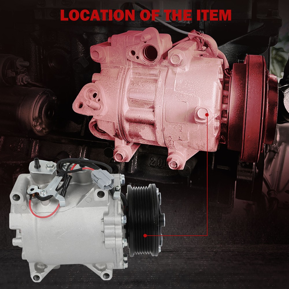 Compatibility should be checked and confirmed before placing order! Steps of confirming the compatibilities: Manage " My Garage ", and chose the right one when placing order; Or chose the " Year / Make / Model / Trim / Engine " of your vehicle on the compatible chart; Or Contact us if you have any question in confirming the compatibility, to make sure you will get the right and compatible item. Application: 02-06 Honda Civic Acura RSX 2.0L Package Content: 1 x AC Compressor W/Clutch Pay Attention: 1>Please refer to the picture and confirm it same as that you want,before paying for it. 2>please make sure the installation site is clean. Or, it will cause operating obstruction, even make the temperature of the compressor very high, and the belt on the clutch may melt. 3>Tested for noise, vibration, durability, vacuum decay, and pressure decay to ensure no leaks and longer life. 4>This item is with oil when sent to you, so there is no need to add oil when you use it the first time. You will get what you see in the picture showed. About US: We are committed to making the best auto-parts products and providing you with better services. So if you have any quesiton or problem, please fell free to contact us about that. Payment: Paypal and other methods which are acceptalbe by eBay. Shipping: All item will be packed with well condition in box or envelope, we make sure the item is in good protection, also please check all the item when you get the package. Product will be shipped within 2 business days after full payment is received and verified. All domestic orders will be shipped via USPS, UPS or FedEx from our US warehouse and usually arrives to your door in about 2-7 business days. Returns & Refund: 30-day free return will be provided. -Please note that the situations below will not be incounted: -Ordered by mistake. -Don't like it. -Duplicated orders. -Damaged product during installation. Contact Us: Any quesiton or problem, do contact us please. We are always online to answer. WARNING: Cancer and Reproductive Harm - www.P65Warnings.ca.gov. End Save for Web Slices