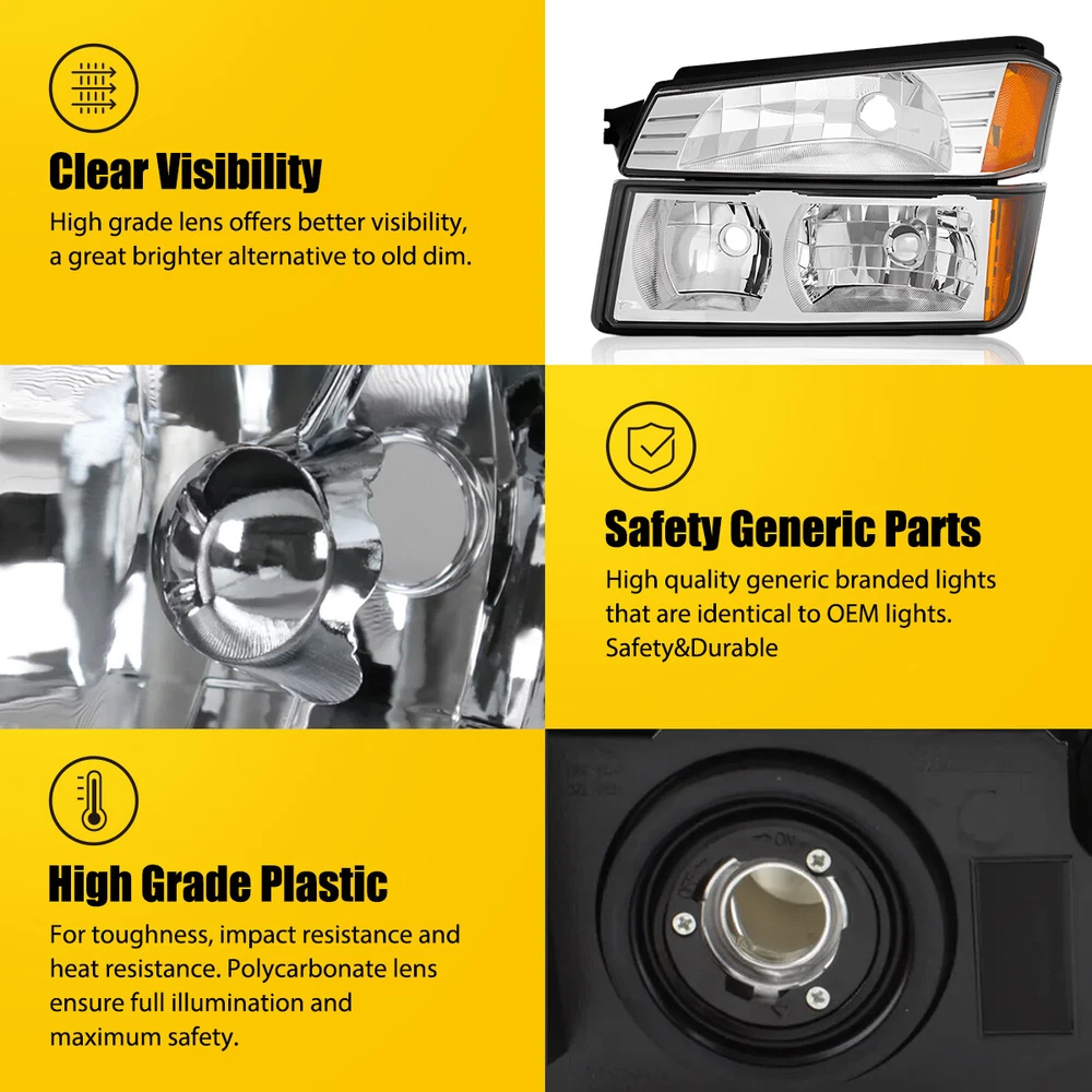 Fit for: 2002-2006 Chevrolet Avalanche 1500 with Body Cladding 2002-2006 Chevrolet Avalanche 2500 with Body Cladding Specifications: OE number: 15136536, 15136537 GM2520184, GM2521184 GM2502219,GM2503219 Material: ABS+PC (ABS Plastic Housing/Polycarbonate lens) Appearance color: 1.Housing Color: Chrome 2.Lens Color:Clear 3.Reflector Color:Amber Note: Projector ×(Not Include) DRL × (Not include) Bulb × (Not include) Features: *Easy to install: For 2002-2006 Chevy Avalanche Replacement Headlights Assembly Pair Clear Lens Fit for: 2002-2006 Chevrolet Avalanche 1500 with Body Cladding 2002-2006 Chevrolet Avalanche 2500 with Body Cladding Specifications: OE number: 15136536, 15136537 GM2520184, GM2521184 GM2502219,GM2503219 Material: ABS+PC (ABS Plastic Housing/Polycarbonate lens) Appearance color: 1.Housing Color: Chrome 2.Lens Color:Clear 3.Reflector Color:Amber Note: Projector ×(Not Include) DRL × (Not include) Bulb × (Not include) Features: *Easy to install: Direct replacement, drilling and cutting are not required. *Superior quality: Made of ABS and PC materials with toughness and heat resistance functions to ensure its long service life and durability. *Angle adjustment: Equipped with a headlamp Angle adjustment knob, you can adjust the best Angle of view through the knob. *Suggestion: 1.Please confirm the OE number before purchasing!!! 2.Professional installation is required!!! Packaging include: Headlights*2(Left+Right) Item Specifics Brand AUXITO Lighting Technology Halogen Type Headlight Assembly Features Reflector Housing, SAE-Certified, Sealed Assembly Housing Color Chrome Placement on Vehicle Front Left,Right Light Color No Bulb Lens Color Clear Reflector Color Amber Manufacturer Part Number CVAL02.00 10 Color Temperature \ Voltage 12 V Mounting Style Screws Vintage Part Yes Performance Part Yes Manufacturer Warranty 5 Years Universal Fitment No Number of Bulbs 0 Finish Smooth Model For 2002-2006 Chevrolet Avalanche 1500 2500 with Body Cladding OE/OEM Part Number 15136536, 15136537, GM2520184, GM2521184, GM2502219, GM2503219 Quantity 2 Headlight assembly Packaging include Left & Right Side Headlights Assembly Bulbs Included Not Included Bulb Shape Code Please Use Stock Bulbs Include Projector Not Included Include DRL Not Included Fitment Type Direct Replacement Assembly Type Composite Type Headlight Assembly Mounting Hardware Included No Certifications DOT, SAE Dust and Moisture Protection Yes Waterproof Yes Ballast Included No Applicable Regions US Items Included Headlight Assembly Bulb Shape Code Just like the original Wattage \ Payment Variety of payment methods are accepted, such as credit, debit, gift cards, Apply pay, Google Pay, Paypal and Paypal Credit. Shipping 1. All items will be shipped in 24 hours after receiving your payment . 2. We ship this item to US only via USPS first class mail. It usually takes 3-5 working days to deliver. Returns 1. We offer 60 days return policy. 2. Please contact us if you have any questions with the products . 3. Refund will be sent after we got your returned package. 4. All returned items should be in the original packaging with tracking number. Contact Us We work from Monday - Saturday 9:00AM - 6:00PM, but we will reply once we get your message. There will be delay on response if you send message or E-Mail on Sunday. DESCRIPTION PAYMENT SHIPPING RETURN POLICY CONTACT US Shop Category Store Home LED Headlight ◈ 9005 HB3 ◈ 9006 HB4 ◈ H7 LED Fog Light ◈ H8 H9 H11 LED Plate Light LED Reverse Light LED Brake Light Rear Bumper Light LED Tail Light Tail Light assemblies Car Parts & Accessories ◈ LED Third Brake Light ◈ Other Parts & Accessories Other New List Item Interior Door Handle For 02-06 Toyota Camry Set 2 of Front and Rear 69206YC03005 USD 24.19 4pcs 3LED Side Marker Clearance Lights Bulb for Jeep Truck Trailer RV Amber 4" USD 13.99 Set of 2 ABS Speed Wheel Sensor Rear & Left Right For CR-V Honda 2002-2006 NEW USD 18.99 For 2010-2014 Ford Mustang Smoked Lens Rear LED Side Marker Lights 2PCS White USD 22.99 For Mercedes-Benz X166 GL450 GL500 GLS450 2013-2016 New Rear Reflector Bumper LH USD 16.09 Hot Item FOR 94-04 MUSTANG PASSENGER or DRIVER SIDE MASTER POWER WINDOW CONTROL SWITCH USD 9.99 Rubber Seal Trim Prevent Water Leakage Windshield Sunroof Roof Top Window 10FT USD 10.99 AUXITO Combo 4 9005 + H11 LED Headlight Kit Bulbs High Low Beam White 80000LM USD 35.99 Auxito 9005 + H11 Combo LED Headlight 120W 80000LM High/Low Beam 6500K Bulbs Kit USD 46.99 Rubber Seal Trim Prevent Water Leakage Windshield Sunroof Roof Top Window 10FT USD 12.99 Similar Item Excellent Delivery For 2002-2006 Chevy Avalanche Replacement Headlights Assembly Pair Clear Lens Fit for: 2002-2006 Chevrolet Avalanche 1500 with Body Cladding 2002-2006 Chevrolet Avalanche 2500 with Body Cladding Specifications: OE number: 15136536, 15136537 GM2520184, GM2521184 GM2502219,GM2503219 Material: ABS+PC (ABS Plastic Housing/Polycarbonate lens) Appearance color: 1.Housing Color: Chrome 2.Lens Color:Clear 3.Reflector Color:Amber Note: Projector ×(Not Include) DRL × (Not include) Bulb × (Not include) Features: *Easy to install: Direct replacement, drilling and cutting are not required. *Superior quality: Made of ABS and PC materials with toughness and heat resistance functions to ensure its long service life and durability. *Angle adjustment: Equipped with a headlamp Angle adjustment knob, you can adjust the best Angle of view through the knob. *Suggestion: 1.Please confirm the OE number before purchasing!!! 2.Professional installation is required!!! Packaging include: Headlights*2(Left+Right) Item Specifics Brand AUXITO Lighting Technology Halogen Type Headlight Assembly Features Reflector Housing, SAE-Certified, Sealed Assembly Housing Color Chrome Placement on Vehicle Front Left,Right Light Color No Bulb Lens Color Clear Reflector Color Amber Manufacturer Part Number CVAL02.00 10 Color Temperature \ Voltage 12 V Mounting Style Screws Vintage Part Yes Per