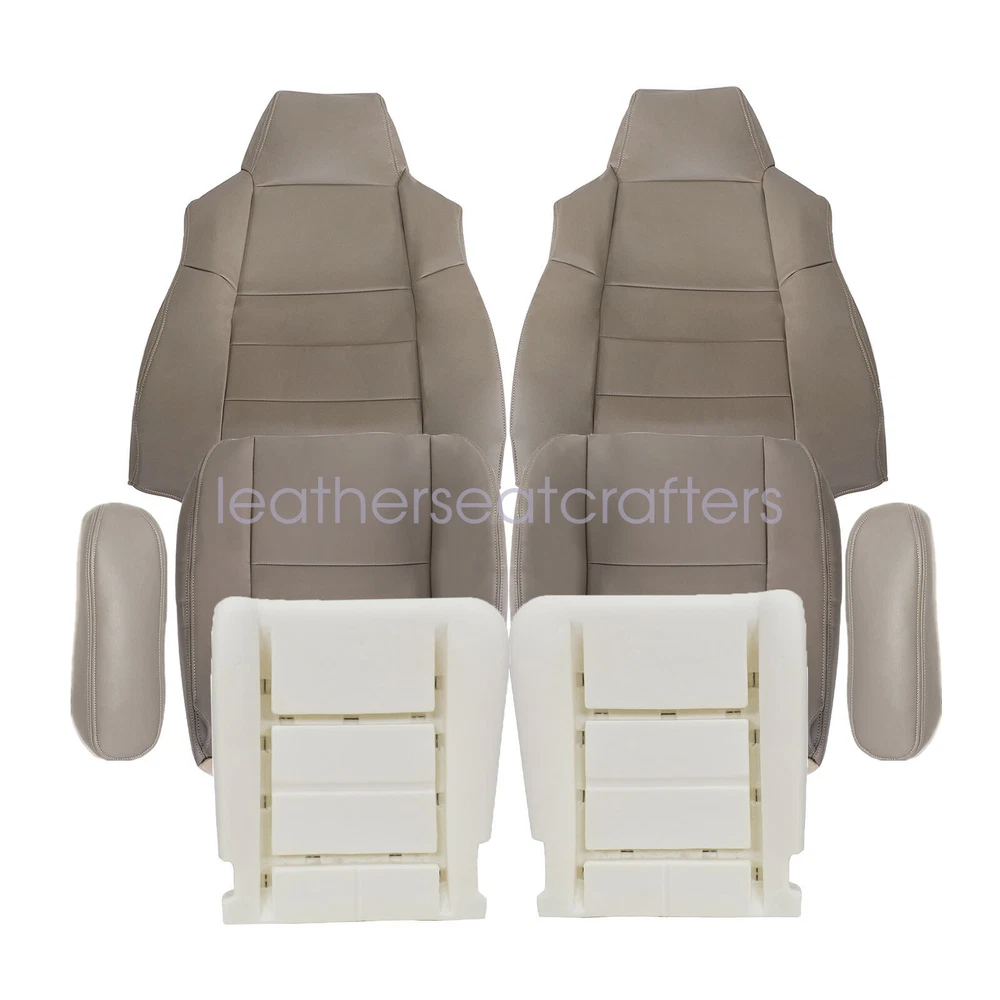 For 2002-2007 Ford F250 Lariat Front Leather Seat Cover Tan & Foam Cushion - Tan Details Specifications: Name: Driver & Passenger Leather Seat Cover & Driver Bottom Foam Cushion Material: Synthetic Leather & High Density Foam Color: Medium Parchment Tan - Factory Color Make: Ford Model: F250 F350 F450 F550 Lariat, XL, FX4 & XLT, Regular, Super & Crew Cab Heated Seats: Fits Heated Seats and Non Heated Seats Power Seats: Fits Power Seats and Non Power Seats Vehicles Seat Cover's Attached Padding: ½ Inch attached foam padding Note: Does Not Fit Extended Cab Fitment: 2002-2007 Ford F-250 Lariat, XLT with Leather, Crew-Cab, Single-Cab, 2WD, 4X4, 5.4L 6.8L Gas, 7.3L 6.0L Power Stroke Turbo Diesel 2002-2007 Ford F-350 Lariat, XLT with Leather, Crew-Cab, Single-Cab, 2WD, 4X4, 5.4L 6.8L Gas, 7.3L 6.0L Power Stroke Turbo Diesel 2002-2007 Ford F-450 Lariat, XLT with Leather, Crew-Cab, Single-Cab, 2WD, 4X4, 5.4L 6.8L Gas, 7.3L 6.0L Power Stroke Turbo Diesel 2002-2007 Ford F-550 Lariat, XLT with Leather, Crew-Cab, Single-Cab, 2WD, 4X4, 5.4L 6.8L Gas, 7.3L 6.0L Power Stroke Turbo Diesel Package Content: 2x Bottom Seat Cover & 2x Lean Back Seat Cover (Front Driver & Passenger Side) 1x Driver Bottom Foam Cushion 1x Passenger Bottom Foam Cushion 2x Armrest Cover (Driver & Passenger Side) If you do not know how to install, please contact us, We can provide video installation instructions Tips: This Front seat cover, built to factory specs with Quality Leather to match the Interior of your vehicle! Our product is exactly the same as your existing cover and guaranteed to fit perfectly on your seat foam Pad. Any wrinkles seen in the pictures is from being in a box and guaranteed to disappear once installed Correctly. Please Note: Actual Replacement Cover. NOT A SLIP ON or PULLOVER. You will remove the old cover & then install the New Cover. Communication is the best way to solve the problem. If you have any problems after purchasing, please contact us in time, before opening return or case. Shipping policy: Payment: Returns: About us: Shipping policy: 1.Orders are usually shipped within 24 hours after your payment(except weekends & official holidays). You can log on to eBay to check your logistics tracking number. 2.Please make sure to provide us with correct,precise and detailed shipping address before purchase, and cannot change it once purchased. Payment: PayPal payment accepted only.Please purchase and pay for the item through the eBay. Returns: 1.If any item is defective upon receipt or do not work, please contact us for the condition,we will provide a solution for such cases. 2.Return is accepted within 30 days after the buyer receiving the item. About us: 1.Thanks for purchasing in our store,if you have any questions, please contact us immediately. We will provide you with the high quality service. 2.If you are satisfied with our products, please give us a positive feedback. On Dec 20, 2024 at 00:16:54 PST, seller added the following information: