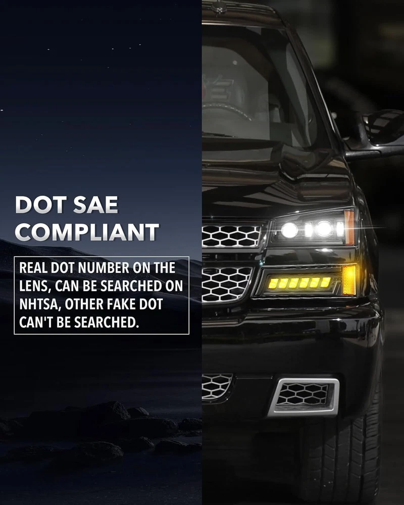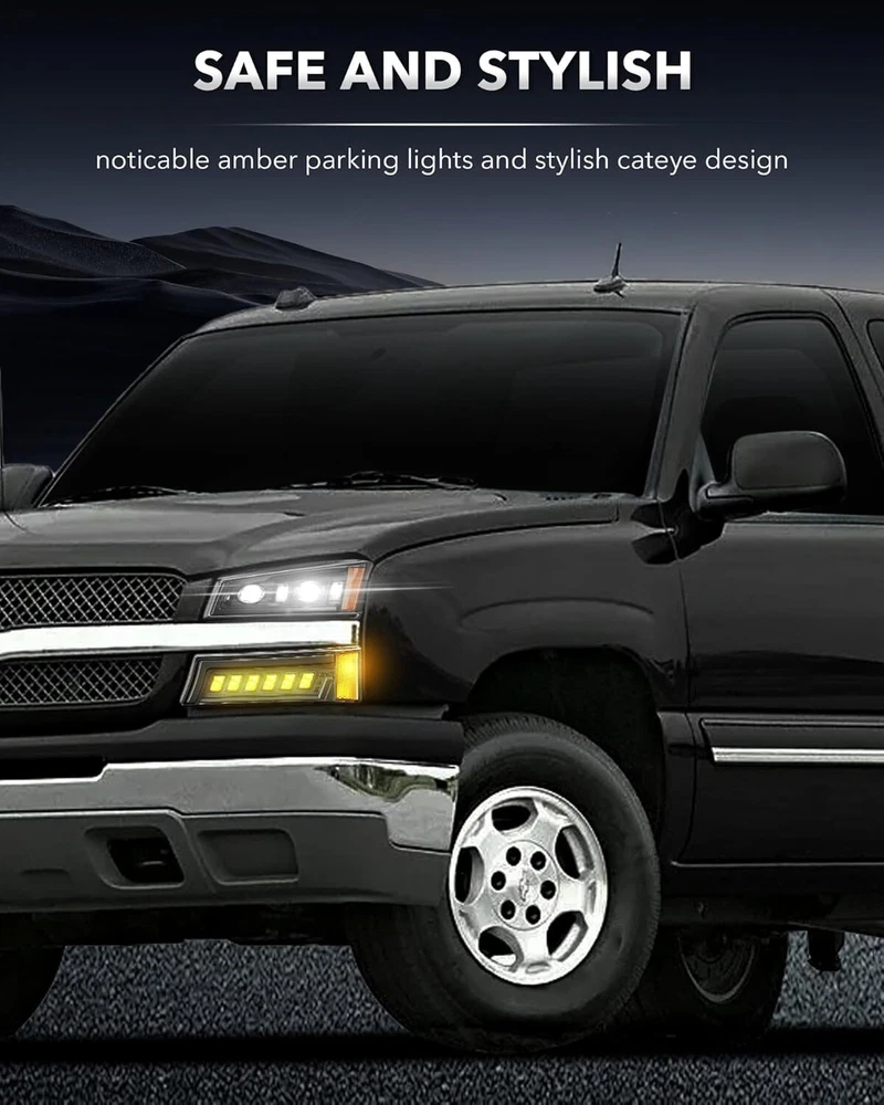 SPECIFICATIONS Replace Part Number: GM2502224, GM2503224, GM2502257, GM2503257, GM2520185, GM2521185, 15199557, 2520185, 2521185, 15199556, 10366037,10396913,15207137, 10366038,10396912 Height(Headlight):189mm/ 7.44 inch Width(Headlight):348mm/ 13.7 inch Height(Signal lights):131mm/5.16 inch Width(Signal lights):397mm/ 15.6 inch Power(Headlight): 84W@High Beam, 54W@Low Beam Lumen(Headlight):4700lm@High Beam, 2500lm@Low Beam Input Voltage:12V DC Outer Lens Material: PC Housing Material: PC+ABS Certification: DOT Waterproof Rate: IP67 FEATURES The First Integrated LED Headlights: The all-In-One creative optic design combined with 4 Practical Lighting Functions - High Beam, Low Beam, Turn Signals, and Side Markers. [High Beam: 168W@9400LM/Set, Low Beam: 108W@5000LM/Set] Provide you with 600% brighter than stock halogens and 4 times brightness of other ordinary LED bulbs. Exclusive "Z" Shaped Beam Pattern: Our led headlights are designed with a scientific and clear "Z" cut-off line , providing you with a proper lighting area and distance, which will not blind oncoming traffic to keep you safe. Truly Hassle-Free Installation Plug N Play: Our headlight kit comes with all the necessary parts you need to install, no need to buy extra bulbs and wiring harnesses. 100% alignment with no gaps , no wiring cutting, and modification needed. More Excellent IP67 Waterproof Performance: Compared with the housings with holes in the market, our headlights utilize a compact integrated design , built with strong adhesive and 8 one-way breathing valves to prevent moisture in all extreme weather conditions with no corrosion or fogging. 50,000hrs Longer Service Life: Fully sealed heavy-duty housing, high-intensity led chips, and shatterproof & anti-yellowing PC lens to ensure long-term stable usage, avoiding frequent replacement. Installation Small Tips: 1. Please flip the connector plugs/polarity 180 ° around when the lights did not come on. (The connector plug could be plug-in both ways) 2. For the safety guard, please check all the mounting tabs/points are tightly mounted and aligned before driving. FITMENTS For 2003-2006 Chevy Silverado 1500/1500 HD For 2003-2004 Chevy Silverado 2500 For 2003-2006 Chevy Silverado 2500 HD/3500 For 2007 Chevy Silverado 1500 Classic /1500 HD Classic /2500 HD Classic /3500 Classic For 2003-2006 Chevy Avalanche 1500/2500 Pickup (Without Body Cladding) PACKAGE INCLUDES 2 pcs of LED Headlights (DRL, High Beam, Low Beam) 2 pcs of LED Bumper Lights (DRL, Turn Signal, Side Marker) 1 copy of Installation instruction PRODUCT DISPLAY Payment Shipping Returns Contact us Feedback Payment Payment methods : Payment is expected within 7 days of auction close. Unpaid Items will be forfeited per eBay . Immediate payment needs to be processed for items with Add to Cart option so that any promotional discounts can be applied to your order immediately. International Buyers – Please Note: a) Import duties, taxes and charges are not included in the item price or shipping charges. These charges are the buyer's responsibility. b) Please check with your country’s customs office to determine what these additional costs will be prior to bidding /bu ying. Shipping 1.All items will be shipped to your eBay Address .Please update your latest address when you check out,and please make sure to provide us with correct,precise and detailed shipping address. 2.If your shipping address and the item location both are US, it will be shipped by USPS or UPS. All items will ship within 1-2 business days after the we receiving clear payment. 3.Service transit time is provided by the carrier. Transit times may be a little delayed during holiday season. 4.International order will be sent from China within 3 business day after the we receiving clear payment. ---For International Orders. Both are the same products and same warranty. Duties and taxes may apply. Please check with your country's custom and eBay policy for more information. 5.Where is my tracking number? Please log on your account, click "my eBay"-->"my summary", or open your email box and find the shipping notification email. Returns Our 30 days Satisfaction Guarantee assures our customers that they will receive all orders promptly and exactly as described. In addition, we offer FREE RETURNS for US buyers. It allows customers to return faulty and unused products for any reason within 30 days from the date of purchase. *Please contact us first before you sent a return request* The seller is responsible for all return shipping, including those due to customer errors or defective items. 1) If you receive an item that is incorrect, damaged, defective or not as described, please contact us for a partial/full refund or replacement. 2) If you want to return the item, please contact us within 30 days after receiving the package. 3) If you open a return request ,please select the reason for return: Doesn't fit/Changed my mind/Just didn't like it/Order by mistake. 4) We provide the 1 year of product warranty. If your product have quality problem within the warranty period, please contact us to provide repair or replacement services to you. Note: Return products must also be in its original condition: including box, packaging and all other accessories Contact us Our Working Time:(GMT+8)Monday to Friday,9:00-18:00. Have Question or Problem? Please contact us first! 1. We will reply you within 24 hours once we receive your email during business days. There will be some delay on response if you send message or E-Mail on weekend. 2. Describe your question clearly. We have a very professional and attentive customer support team. We will give you the best solution by our great communications. 3. We have always been trying to provide the best service and reliable product for every customer. However, sometimes may happen accident. Please contact us solve any issue before leaving a negative feedback. Feedback 1.We appreciate your business and strive to improve our customer s