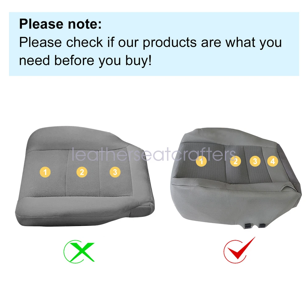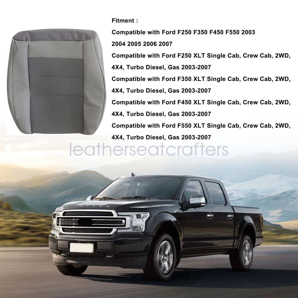 For 2003-2007 Ford F250 Super Duty Front Seat Cover / Driver Foam Cushion - Gray Details For 2003 2004 2005 2006 2007 Ford F250 F350 F450 F550 Lariat Super Duty XLT Replacement Driver / Passenger Seat Cover Medium Flint Gray Description: Type: Replacement Side: Front Driver / Passenger Material: Cloth & Foam Color: Medium Flint Gray (Interior Trim Code: 2E/3E) Make: Ford Model: F250 F350 F450 F550 Lariat, XL, FX4 & XLT, Regular, Super & Crew Cab Year: 2003 2004 2005 2006 2007 Fitment: 2003 - 2007 Ford F250 XLT Single Cab, Crew Cab, 2WD, 4X4, Turbo Diesel, Gas. 2003 - 2007 Ford F350 XLT Single Cab, Crew Cab, 2WD, 4X4, Turbo Diesel, Gas. 2003 - 2007 Ford F450 XLT Single Cab, Crew Cab, 2WD, 4X4, Turbo Diesel, Gas. 2003 - 2007 Ford F550 XLT Single Cab, Crew Cab, 2WD, 4X4, Turbo Diesel, Gas. Heated Seats: Fits Heated Seats and Non Heated Seats Power Seats: Fits Power Seats and Non Power Seats Vehicles Seat Cover's Attached Padding: 1/2 & 1/4 Inch Padding like Warranty: 5 Years Package Including: Choose your pieces Tips: This Front seat cover, built to factory specs with Quality Cloth to match the Interior of your vehicle! Our product is exactly the same as your existing cover and guaranteed to fit perfectly on your seat foam Pad. Any wrinkles seen in the pictures is from being in a box and guaranteed to disappear once installed Correctly. Please note this item is a replacement, not a slip on or pull over. Please Note: Actual Replacement Cover. NOT A SLIP ON or PULLOVER. You will remove the old cover & then install the New Cover. Communication is the best way to solve the problem. If you have any problems after purchasing, please contact us in time, before opening return or case. Shipping policy: Payment: Returns: About us: Shipping policy: 1.Orders are usually shipped within 24 hours after your payment(except weekends & official holidays). You can log on to eBay to check your logistics tracking number. 2.Please make sure to provide us with correct,precise and detailed shipping address before purchase, and cannot change it once purchased. Payment: PayPal payment accepted only.Please purchase and pay for the item through the eBay. Returns: 1.If any item is defective upon receipt or do not work, please contact us for the condition,we will provide a solution for such cases. 2.Return is accepted within 30 days after the buyer receiving the item. About us: 1.Thanks for purchasing in our store,if you have any questions, please contact us immediately. We will provide you with the high quality service. 2.If you are satisfied with our products, please give us a positive feedback. On Dec 20, 2024 at 23:11:42 PST, seller added the following information: