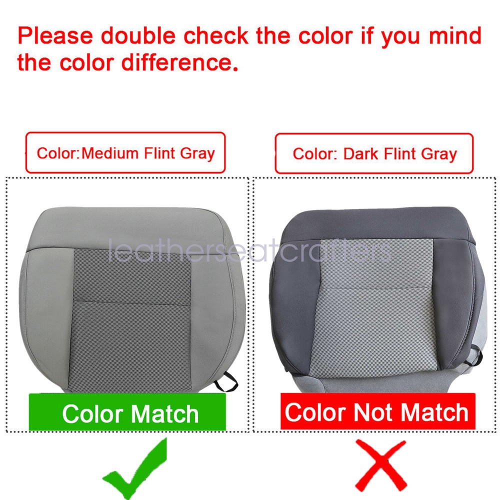 For 2004-2008 Ford F-150 Front Cloth Seat Cover Flint Gray & Driver Foam Cushion Details Fits 2004-2008 Ford F150 XLT FX4 STX Driver & Passenger Cloth Replacement Seat Cover Gray & Driver Bottom Foam Cushion Direct Replacement Fits Front Driver & Passenger Side Actual Replacement Cover. NOT A SLIP ON or PULLOVER. You will remove the old cover & then install the New Cover. Fitment: 2004 2005 2006 2007 2008 Ford F150 2004-2008 Ford F150 XLT Single Cab, Quad Cab & Crew Cab 2004-2008 Ford F150 STX Single Cab, Quad Cab & Crew Cab 2004-2008 Ford F150 FX4 Single Cab, Quad Cab & Crew Cab Specification: Name: Driver & Passenger Side Cloth Replacement Seat Cover & Driver Bottom Foam Cushion Color: Flint Gray - Factory Color Color Code: E - Located In Your VIN Number Sticker Material: Cloth & Foam Heated Seats: Fits Heated Seats and Non Heated Seats Power Seats: Fits Power Seats and Non Power Seats Vehicles Inner Liner: 1/2 & 1/4 Inch Padding like Packing Included: 1Set Front Driver & Passenger Cloth Seat Cover (2x Bottom Seat Cover & 2x Lean Back Seat Cover) 1Pcs Driver Bottom Foam Cushion Tips: This Driver & Passenger seat cover, built to factory specs with Quality Cloth to match the Interior of your vehicle! Our product is exactly the same as your existing cover and guaranteed to fit perfectly on your seat foam Pad. Any wrinkles seen in the pictures is from being in a box and guaranteed to disappear once installed Correctly. Please note this item is a replacement, not a slip on or pull over. The boxing/skirting is vinyl sewn onto foam like . Note: Actual Replacement Cover. NOT A SLIP ON or PULLOVER. You will remove the old cover & then install the New Cover. Communication is the best way to solve the problem. If you have any problems after purchasing, please contact us in time, before opening return or case. Shipping policy: Payment: Returns: About us: Shipping policy: 1.Orders are usually shipped within 24 hours after your payment(except weekends & official holidays). You can log on to eBay to check your logistics tracking number. 2.Please make sure to provide us with correct,precise and detailed shipping address before purchase, and cannot change it once purchased. Payment: PayPal payment accepted only.Please purchase and pay for the item through the eBay. Returns: 1.If any item is defective upon receipt or do not work, please contact us for the condition,we will provide a solution for such cases. 2.Return is accepted within 30 days after the buyer receiving the item. About us: 1.Thanks for purchasing in our store,if you have any questions, please contact us immediately. We will provide you with the high quality service. 2.If you are satisfied with our products, please give us a positive feedback. On Dec 20, 2024 at 23:15:42 PST, seller added the following information:
