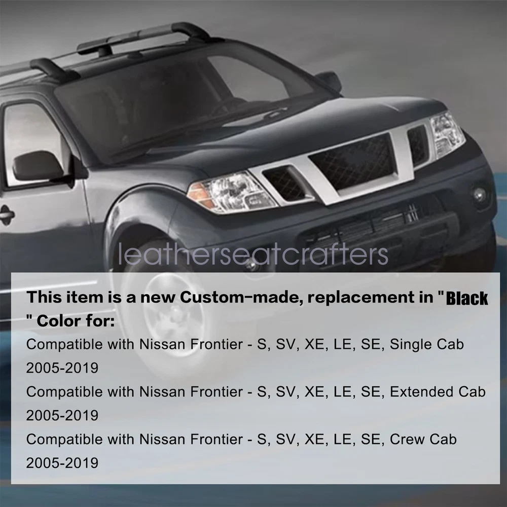 For 2005-2021 Nissan Frontier PRO-4X Driver Side Bottom Leather Seat Cover Black Details For 2005-2021 Nissan Frontier Driver Side Bottom Replacement Microfiber Leather Seat Cover Black Product Compatible: Make: Nissan Model: Frontier Years: 2005 2006 2007 2008 2009 2010 2011 2012 2013 2014 2015 2016 2017 2018 2019 2020 2021 Fit For: 2005 For Nissan Frontier SL LE Pro-4x S SV, Crew-Cab, Extended-Cab, 2WD, AWD, 4X4 2006 For Nissan Frontier SL LE Pro-4x S SV, Crew-Cab, Extended-Cab, 2WD, AWD, 4X4 2007 For Nissan Frontier SL LE Pro-4x S SV, Crew-Cab, Extended-Cab, 2WD, AWD, 4X4 2008 For Nissan Frontier SL LE Pro-4x S SV, Crew-Cab, Extended-Cab, 2WD, AWD, 4X4 2009 For Nissan Frontier SL LE Pro-4x S SV, Crew-Cab, Extended-Cab, 2WD, AWD, 4X4 2010 For Nissan Frontier SL LE Pro-4x S SV, Crew-Cab, Extended-Cab, 2WD, AWD, 4X4 2011 For Nissan Frontier SL LE Pro-4x S SV, Crew-Cab, Extended-Cab, 2WD, AWD, 4X4 2012 For Nissan Frontier SL LE Pro-4x S SV, Crew-Cab, Extended-Cab, 2WD, AWD, 4X4 2013 For Nissan Frontier SL LE Pro-4x S SV, Crew-Cab, Extended-Cab, 2WD, AWD, 4X4 2014 For Nissan Frontier SL LE Pro-4x S SV, Crew-Cab, Extended-Cab, 2WD, AWD, 4X4 2015 For Nissan Frontier SL LE Pro-4x S SV, Crew-Cab, Extended-Cab, 2WD, AWD, 4X4 2016 For Nissan Frontier SL LE Pro-4x S SV, Crew-Cab, Extended-Cab, 2WD, AWD, 4X4 2017 For Nissan Frontier SL LE Pro-4x S SV, Crew-Cab, Extended-Cab, 2WD, AWD, 4X4 2018 For Nissan Frontier SL LE Pro-4x S SV, Crew-Cab, Extended-Cab, 2WD, AWD, 4X4 2019 For Nissan Frontier SL LE Pro-4x S SV, Crew-Cab, Extended-Cab, 2WD, AWD, 4X4 2020 For Nissan Frontier SL LE Pro-4x S SV, Crew-Cab, Extended-Cab, 2WD, AWD, 4X4 2021 For Nissan Frontier SL LE Pro-4x S SV, Crew-Cab, Extended-Cab, 2WD, AWD, 4X4 Features: Type: Driver Bottom Replacement Leather Seat Cover Side : Left, Front,Lower, Bottom Color: Graphite "Black" - Factory Color Material: Microfiber Leather Heated Seats: Fits Heated Seats and Non Heated Seats Power Seats: Fits Power Seats and Non Power Seats Vehicles Seat Cover's Attached Padding: ½ Inch attached foam padding Package Included: 1x Driver Bottom Replacement Microfiber Leather Seat Cover About This Item: Warranty: 5 Year Fast & Free Shipping From KY or CA If you do not know how to install, please contact us, We can provide video installation instructions Tips: This Driver Replacement Bottom seat cover, built to factory specs with Quality Microfiber Leather to match the Interior of your vehicle! Our product is exactly the same as your existing cover and guaranteed to fit perfectly on your seat foam Pad. Any wrinkles seen in the pictures is from being in a box and guaranteed to disappear once installed Correctly. Please note this item is a replacement, not a slip on or pull over. (Foam pad and frame are not included). The boxing/skirting is vinyl sewn onto foam like . Please Note: Our seat cover matches with your cover. Actual Replacement Cover. NOT A SLIP ON or PULLOVER. You will remove the old cover & then install the New Cover. Communication is the best way to solve the problem. If you have any problems after purchasing, please contact us in time, before opening return or case. Shipping policy: Payment: Returns: About us: Shipping policy: 1.Orders are usually shipped within 24 hours after your payment(except weekends & official holidays). You can log on to eBay to check your logistics tracking number. 2.Please make sure to provide us with correct,precise and detailed shipping address before purchase, and cannot change it once purchased. Payment: PayPal payment accepted only.Please purchase and pay for the item through the eBay. Returns: 1.If any item is defective upon receipt or do not work, please contact us for the condition,we will provide a solution for such cases. 2.Return is accepted within 30 days after the buyer receiving the item. About us: 1.Thanks for purchasing in our store,if you have any questions, please contact us immediately. We will provide you with the high quality service. 2.If you are satisfied with our products, please give us a positive feedback. On Feb 10, 2025 at 06:28:59 PST, seller added the following information: