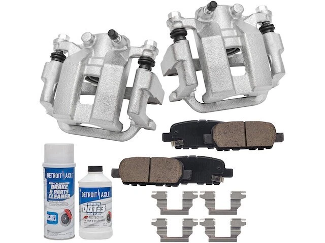 Parts Geek - For 2006-2009 Nissan 350Z Brake Pad and Caliper Kit Rear Detroit Axle 45738VCYD For 2006-2009 Nissan 350Z Brake Pad and Caliper Kit Rear Detroit Axle 45738VCYD Review Fitment Notes to Ensure Proper Fit Position: Rear Condition: New Brand: Detroit Axle Notes: Brake Kit -- Single Piston Caliper Brake Pad Type: Ceramic Caliper Brake Caliper Bracket Included: Yes Caliper Piston Material: Steel Caliper Piston Quantity: 1 Caliper Piston Size: 1.65 in / 42.8 mm Caliper Position: Rear Features: Kit Includes: (2) Rear Disc Brake Caliper + (2) Rear Ceramic Brake Pad + (2) Brake Fluid & Cleaner Built under strict quality control standards; Tested for impact, wear and fatigue to ensure quality and durability; Manufactured in ISO9002 Certified facility Detroit Axle Brake calipers are strictly built to the standards of OEM specifications and quality. Multiple pressure tests were made to guarantee leak-free performance and superior braking power. 12 Month Warranty Fitment Notes: Vehicle Sub Model 2006-2009 Nissan 350Z Enthusiast 2006-2009 Nissan 350Z Grand Touring 2006-2009 Nissan 350Z Touring 2006-2008 Nissan 350Z Base 2006 Nissan 350Z Track Payment Information See our other listings Ensure Proper Fit To confirm that this part fits your vehicle, enter your vehicle's Year, Make, Model, Trim and Engine in the Compatibility Table. Also review the notes section in the compatibility chart for additional specifications about this part. About This Seller We have been offering automotive parts & supplies for sale since Parts Geek, LLC was formed in 2008. We pride ourselves in providing the best customer service on the Internet. Return Policy Return shipping paid by: Buyer Item must be returned within: 30 Days Refund will be given as: MoneyBack PLEASE DO NOT SEND RETURNS BACK WITHOUT A VALID RMA NUMBER. (We do not accept returns on opened or plugged in Electrical parts - No Exceptions) Core Policy Return shipping paid by: Buyer Item must be returned within: 30 Days Refund will be given as: PLEASE DO NOT SEND RETURNS BACK WITHOUT A VALID RMA NUMBER. (We do not accept returns on opened or plugged in Electrical parts - No Exceptions) California Proposition 65 WARNING: This product may contain chemicals known to the State of California to cause cancer and birth defects or other reproductive harm. For more information go to www.p65warnings.ca.gov