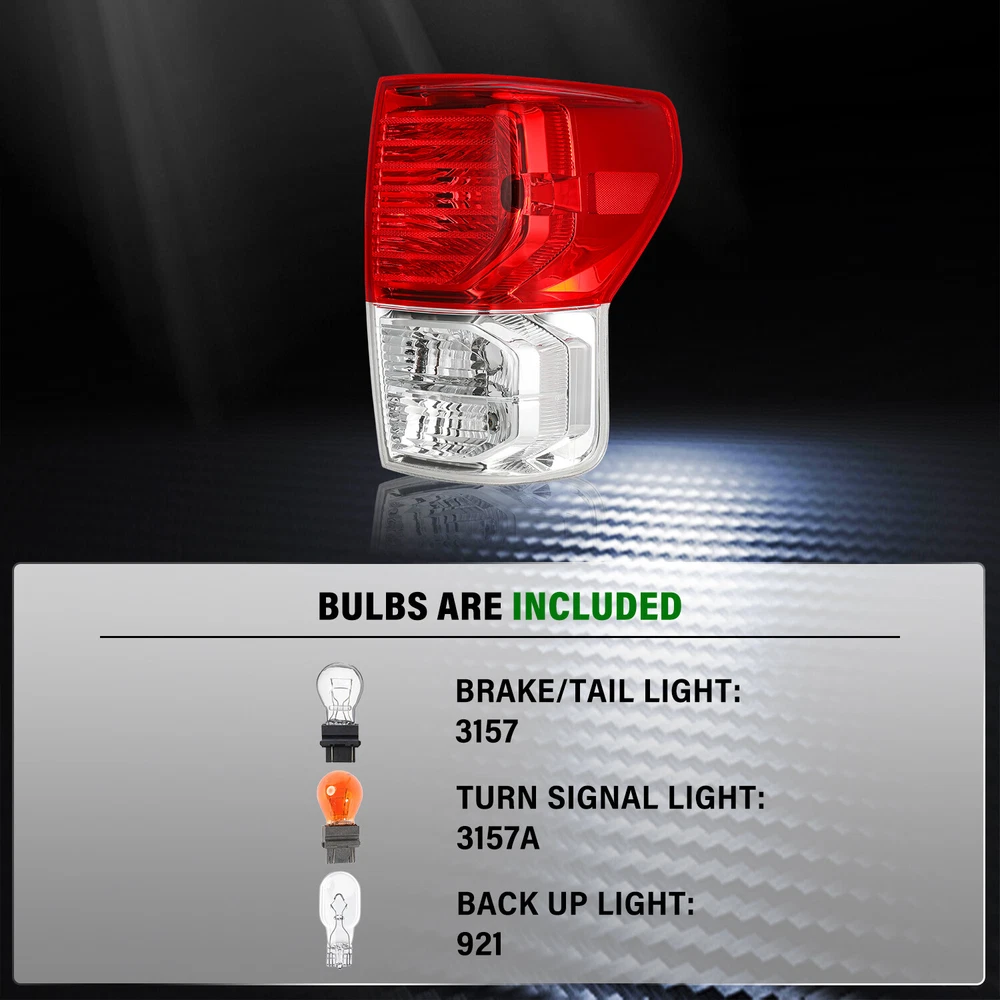 Store Categories Store Categories Other Fits 2007-2013 Tundra Pickup Tail Light Brake Lamp 2007-2013 Product Description Product Features 1. The item is 100% brand new in original box. 2. DOT (Department of Transportation) & SAE (Society of Automotive Engineers) Approved 3. Increase your visibility during heavy rain, snow, dense fog and night time driving. 4. A new headlights upgrade the face of your vehicle with clear style and broad range. 5. Direct Bolt On Replacement For Your Original Tail lights. No Wiring or Any Other Modification Needed. How to Remove Temporary Condensation Way 1. Check if the vents are blocked and switch on the low beam light for about 20 mins Way 2. Take the headlight bulb out and drive out moisture Way 3. Put a silica gel packet in the housing to soak up moisture Compatible with: 2007 2008 2009 20 10 2011 2012 2013 Toyota Tundra Package include s 1 tail light ( Bulbs included ) Payment Policy Shipping Policy Returns Policy About us Payment Policy We accept PayPal and all forms of credit card. Please submit your payment within 7days after your purchase. Otherwise, eBay will automatically open an Unpaid Item Dispute on our behalf if the item(s) are not paid within 7days. We DO NOT SHIP TO PO BOXES, And Customer Needs To Provide a Physical Address. Shipping Policy All Orders Will Ship Within Two Business Days.Except PR,HI,AK,GU and PO Box addresses. No local pick up All Packages Will Be Inspect Before Shipping, We Will Provide All Packing Material Needed For Your Package For Shipping Such As Boxes, Cushioning And Tape To Improve Shipping Quality. Very Important: Double check shipping address. We are not responsible for incorrect or undeliverable addresses. Returns Policy 30 Days returns satisfaction guarantee.90 Days warranty. All of Our Items Are 100% Brand New, We Do Not Sell Anything Other Than That. If The Item Shows Up Defective or Broken, Please Contact Us Within 3 Business Days By Using "Ask A Question" Link Located At The Bottom of Our Listing. Your Questions/Concerns Will Be Responded Within 24 Hours Monday To Friday. Buyers May Contact us On The Weekends or Pubic Holidays And We Will Respond On The Next Working Day. We Will Offer Replacements, Exchange or Full Refund. 100% Satisfaction Guaranteed. We Will File Damage Or Lost Claim For Our Buyers And Guaranteed Buyers Will Receive Products In A Timely Manner. About us Welcome to AU's eBay Store. We specialize in aftermarket automotive car parts and is the #1 industry distributor for affordable and quality products. We have our warehouse in CA.Item will be shipped out within 48 hours after payment cleared via UPS or Fedex. All emails will be answered within 1 business day during our business hours, except on weekends and major holidays. Before leaving us negative review, please contact our C ustomer Support Team first. We will do our best to offer satisfactory service to the customers. Copyright © 2023 Dianxiaomi