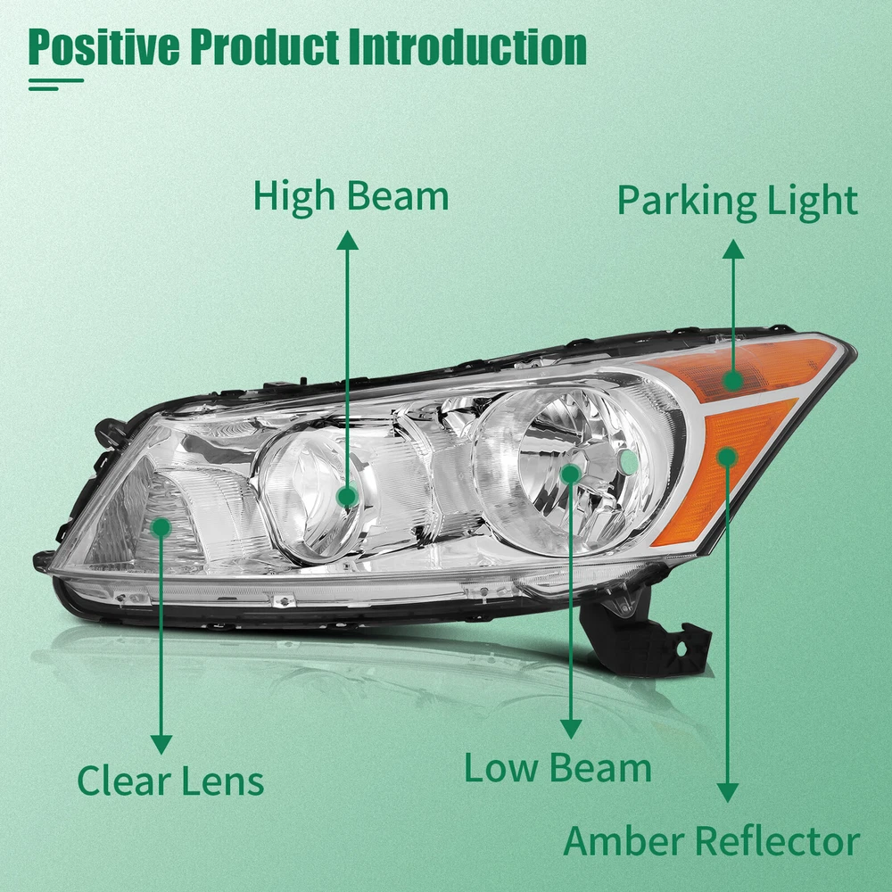 Compatibility should be checked and confirmed before placing order! Steps of confirming the compatibilities: Manage " My Garage ", and chose the right one when placing order; Or chose the " Year / Make / Model / Trim / Engine " of your vehicle on the compatible chart; Or Contact us if you have any question in confirming the compatibility, to make sure you will get the right and compatible item. COMPATIBLE WITH: 2008-2012 Honda Accord 4-Door Sedan Package Including: Headlights Pair Left+Right Side (Passenger & Driver Side) EASY TO INSTALL: 1.Undo the screws, clips, or retainer springs that hold the headlight in place. 2.Disconnect the wiring from the assembly. 3.Detach the headlight from the vehicle to replace it with a new one. 4.Fit in the new headlight assembly. 5.Fix the new headlight into place and make sure that the screws, clips, or retainer springs are sealed. 6.Reconnect the wiring that was unplugged from the assembly. 7.Put back the grille and other components that you removed. Seal them back into place. 8.Test the new assembly. You will get what you see in the picture showed. About US: We are committed to making the best auto-parts products and providing you with better services. So if you have any quesiton or problem, please fell free to contact us about that. Payment: Paypal and other methods which are acceptalbe by eBay. Shipping: All item will be packed with well condition in box or envelope, we make sure the item is in good protection, also please check all the item when you get the package. Product will be shipped within 2 business days after full payment is received and verified. All domestic orders will be shipped via USPS, UPS or FedEx from our US warehouse and usually arrives to your door in about 2-7 business days. Returns & Refund: 30-day free return will be provided. -Please note that the situations below will not be incounted: -Ordered by mistake. -Don't like it. -Duplicated orders. -Damaged product during installation. Contact Us: Any quesiton or problem, do contact us please. We are always online to answer. WARNING: Cancer and Reproductive Harm - www.P65Warnings.ca.gov. End Save for Web Slices