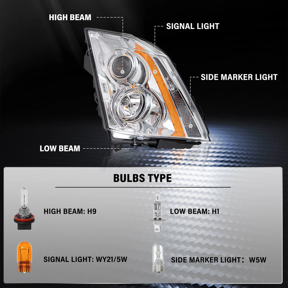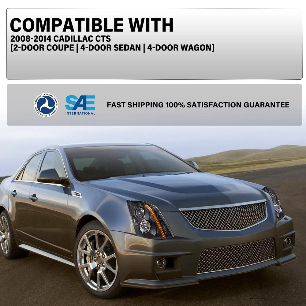 Store Categories Store Categories Other For 2008-2014 Cadillac CTS Halogen Headlight Headlamps w/Bulbs Product Description Features: 100% Brand New Color: Chrome Housing No installation Guide or instruction included. Professional Installation is Highly Recommended. Brings a different appearance to vehicle that great for show use Plug-n-play operation,no modification or drilling required. How to Remove Temporary Condensation Way 1. Check if the vents are blocked and switch on the low beam light for about 20 mins Way 2. Take the headlight bulb out and drive out moisture Way 3. Put a silica gel packet in the housing to soak up moisture Compatible with: For 2008-2014 Cadillac CTS 4-Door Sedan Halogen Headlights. Not Compatible on Models w/Factory HID Headlights Package Includes: 1 headlights( Bulbs Included ) Payment Policy Shipping Policy Returns Policy About us Payment Policy We accept PayPal, Google Pay, Credit Cards, and Debit Cards. Shipping Policy We offer free shipping for the 48 contiguous states. We don't ship to PR, HI, AK ,GU, VI, PO addresses. For USA customer, we will ship via UPS with tracking number. Items will be shipped within 1 or 2 business days after payment received. All Items are located and shipped from CA United States.It will take 2-7 business days to receive your order depending on your location. UPS are unable to deliver any packages to PO box addresses, please make sure you provide a physical shipping address. Returns Policy If you aren't happy with our product, don't worry, return or exchange is easy with our 30 Days money back guarantee. If product is defective or damage upon arrival, or wrong product shipped, please contact us immediately. All returning item will need to obtain a Return Authorization Number(RMA#) from us. We will not process any returns without the authorization. Please contact us before ship back. Please keep the original box and the shipping label because if anything is wrong with the product we will only accept return package with the original packaging.Items to be returned must be in new and resaled conditions. We may request buyers to provide digital pictures due to damage/defective product for return/exchange reason, this can help us to find the best solution to buyers. For more details regarding return policy, please contact our customer service team for assistance. About us When it comes to changing your headlights, Bryght knows what you need EXACTLY. Brightness, Water-proofing, Dust-proofing, Air-tightness, Shock-resistance, Anti-Corrosion, Heat-dissipation, AND Reliability. We've got them all covered for you with our years of solid experience in headlight R&D and manufacturing. Bryght s mission, as the name suggests, is to brighten your way. Copyright © 2023 Dianxiaomi